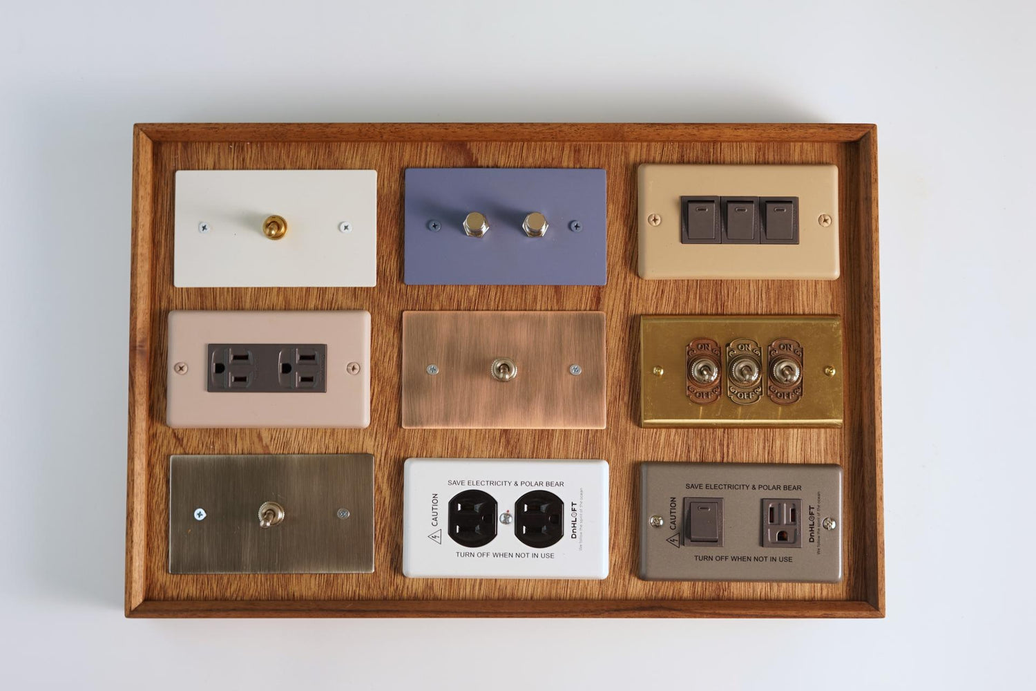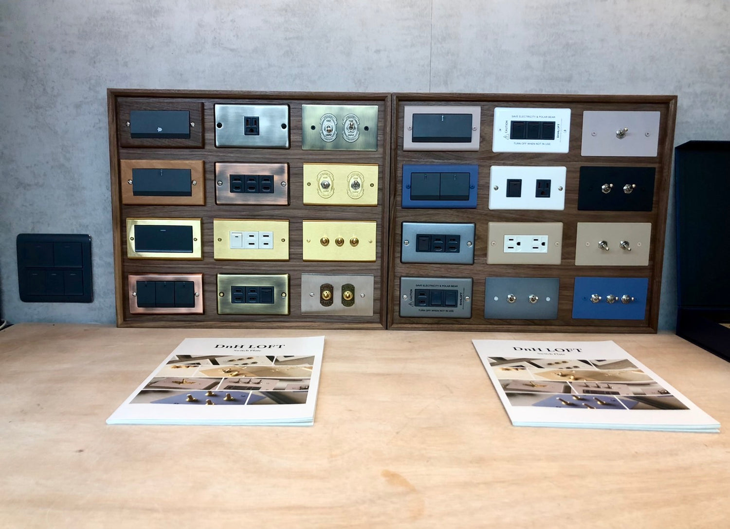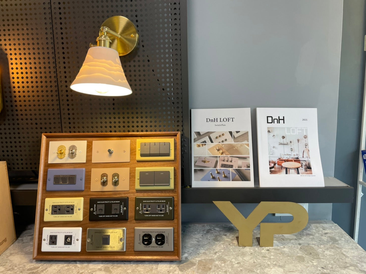展示各式工業風開關、燈具