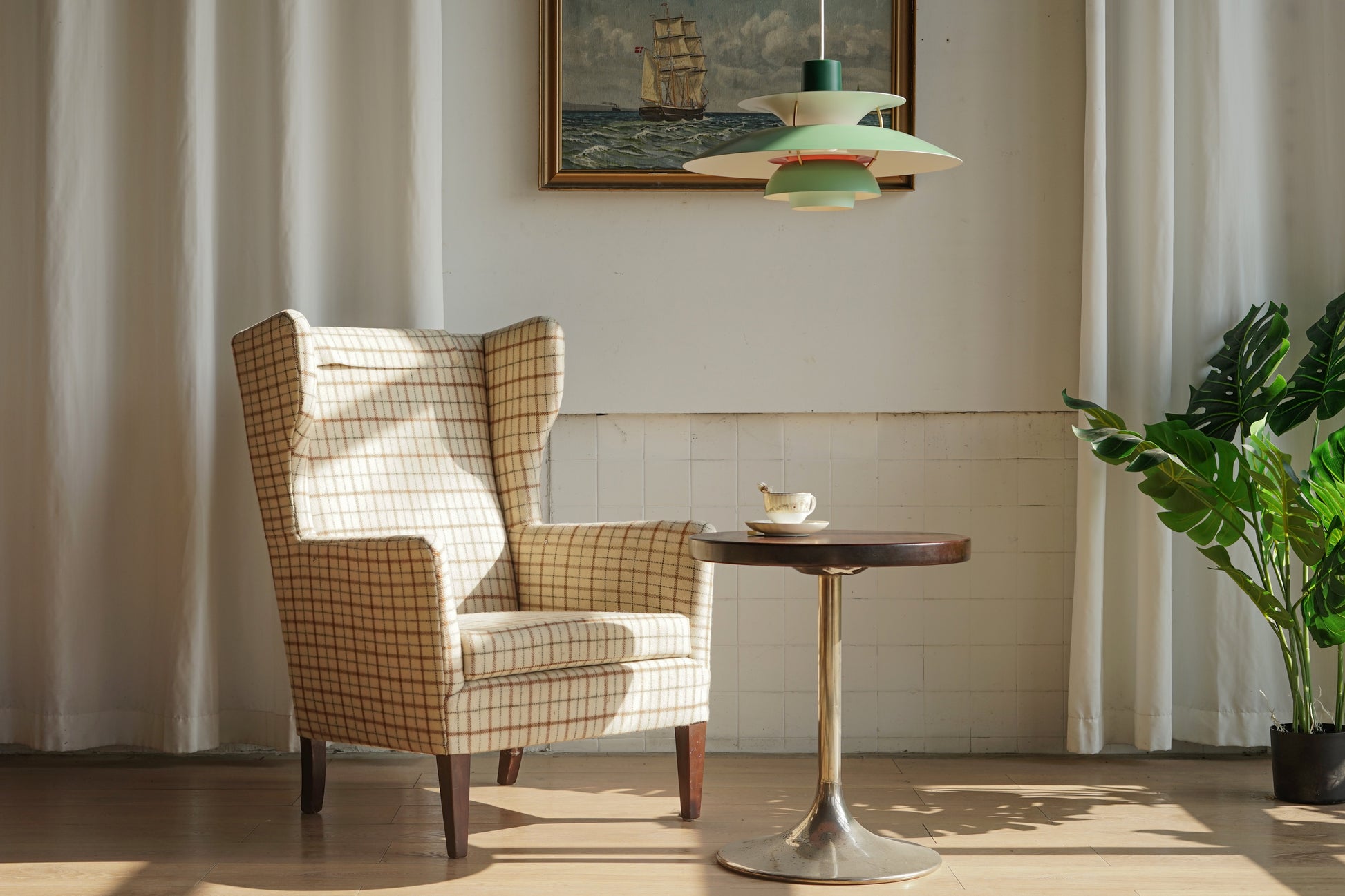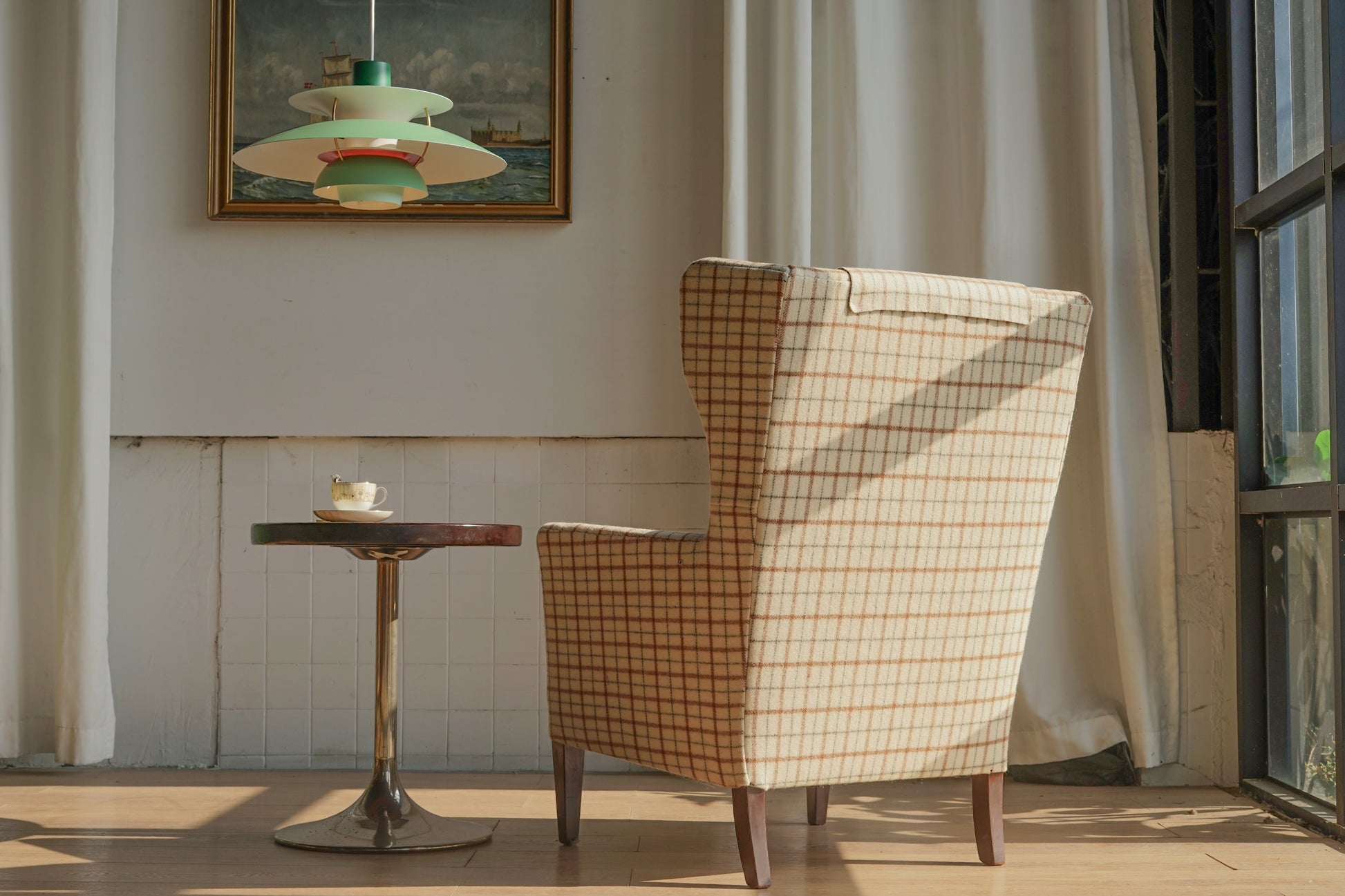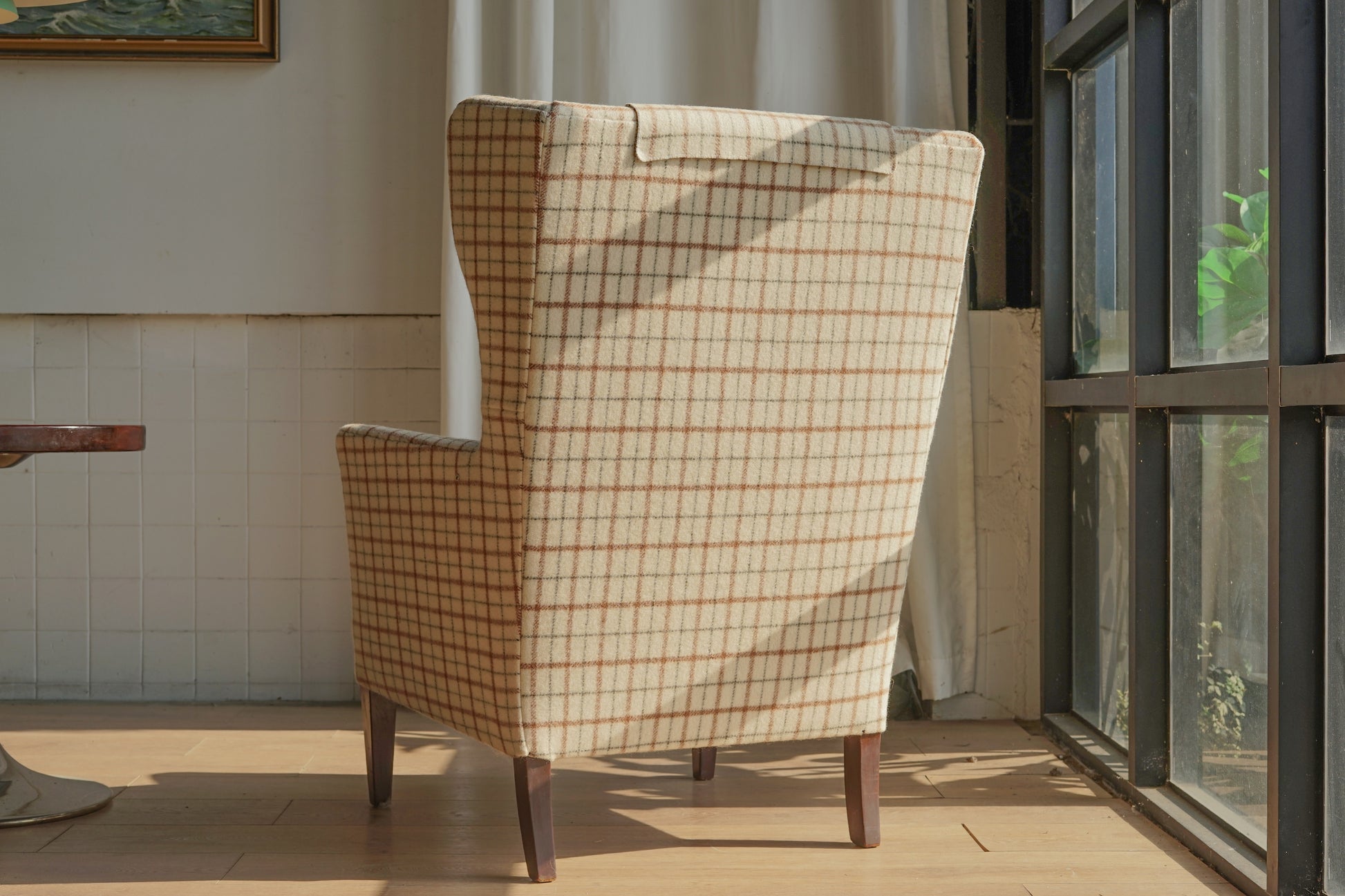 丹麥 格紋羊毛 高背翼背 休閒實木 沙發椅