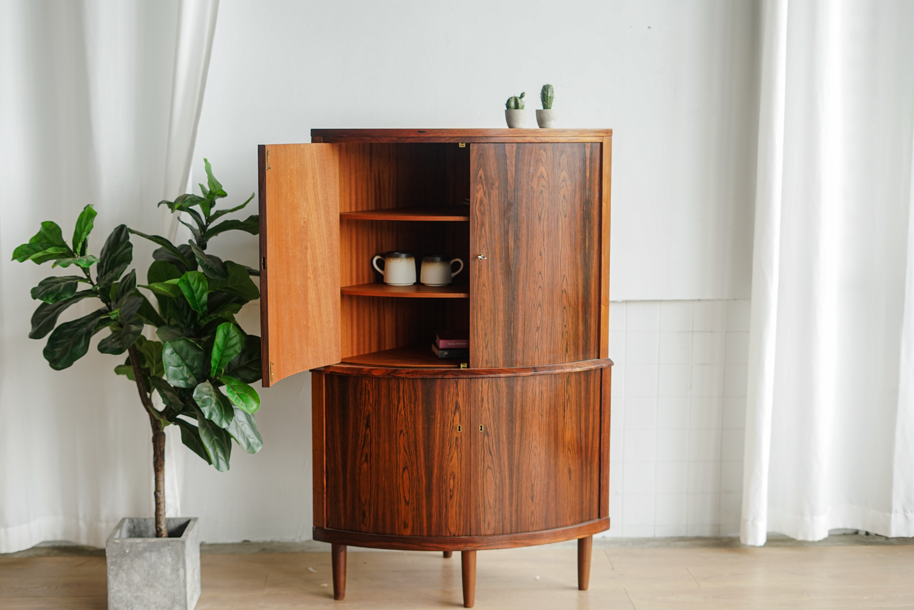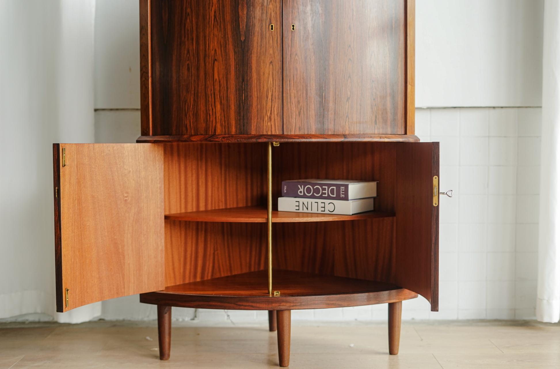 丹麥 玫瑰木 優雅圓弧 轉角櫃