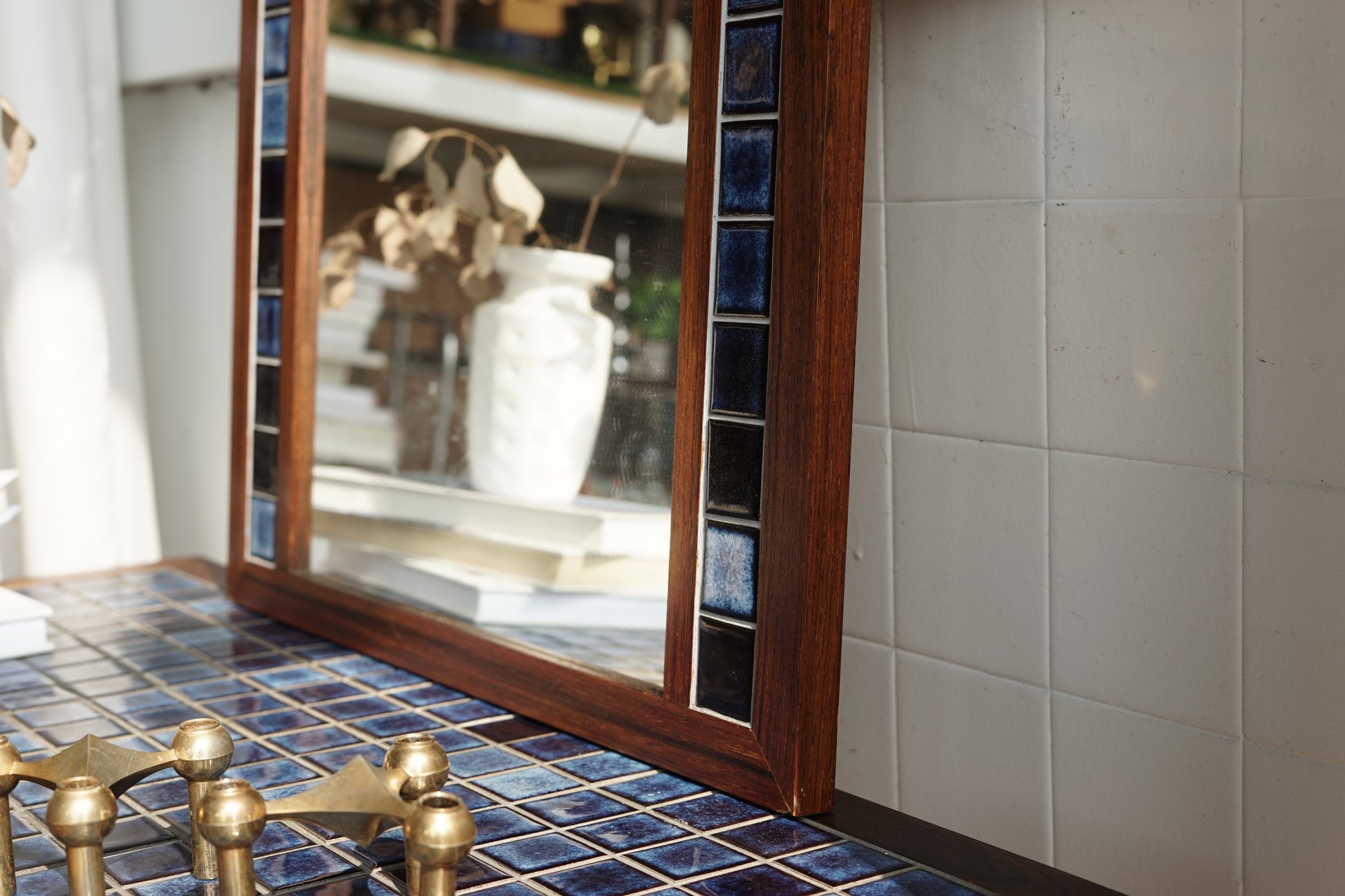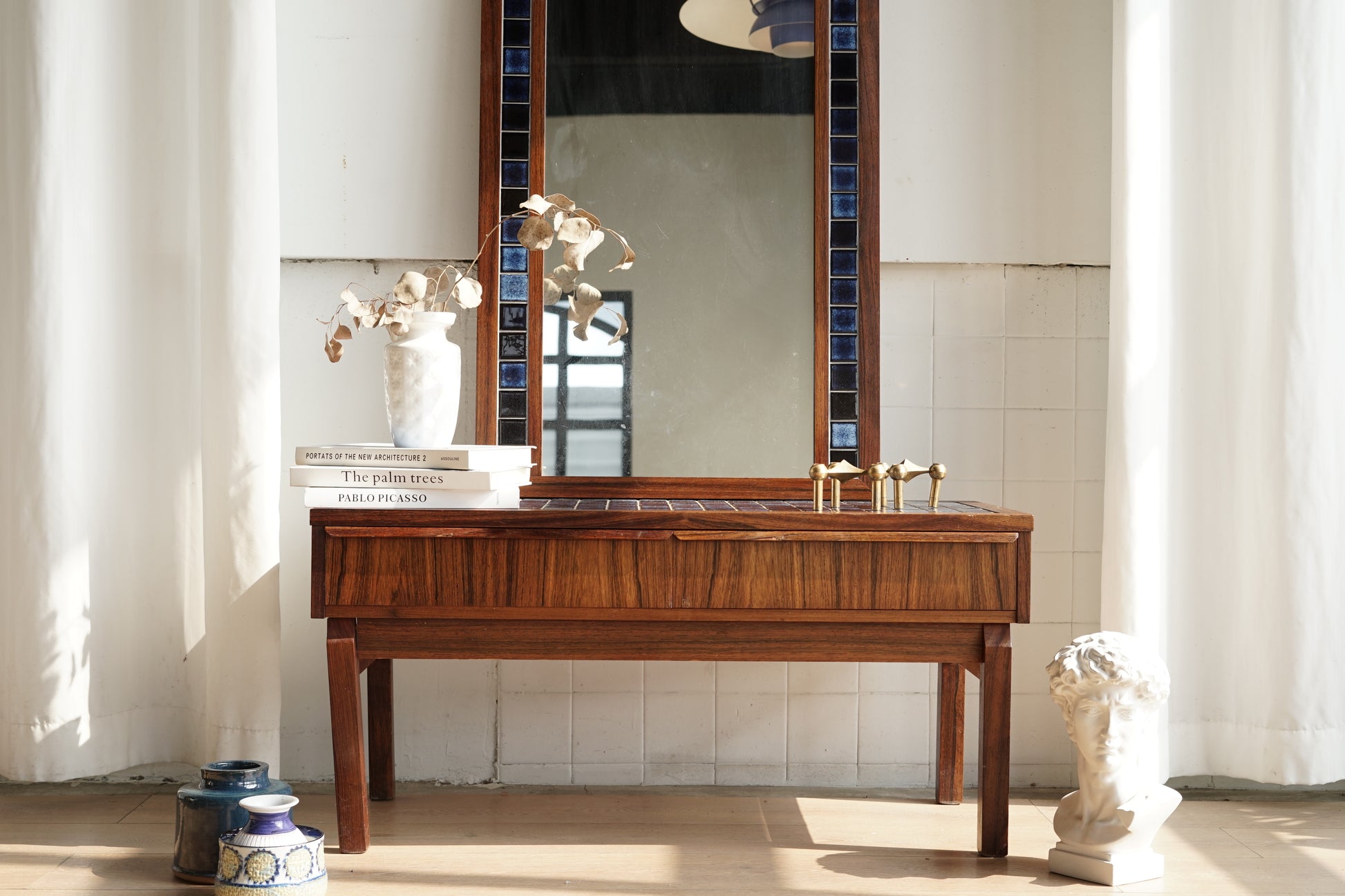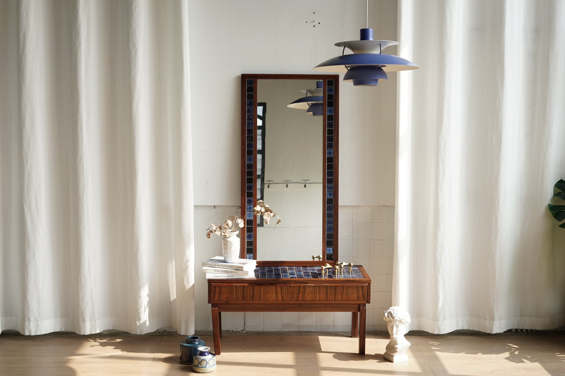 丹麥 玫瑰木 藍色磁磚 櫃鏡組