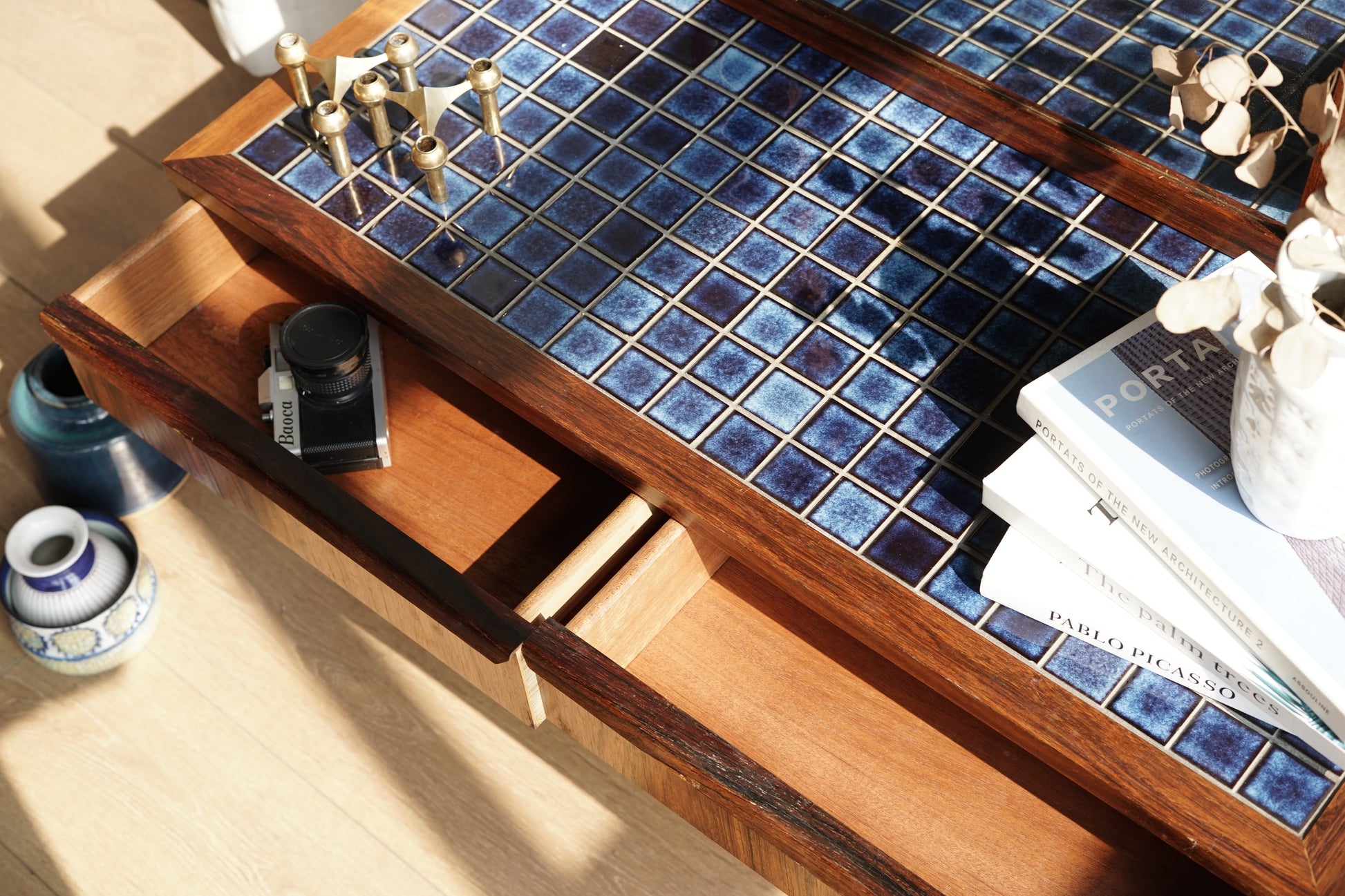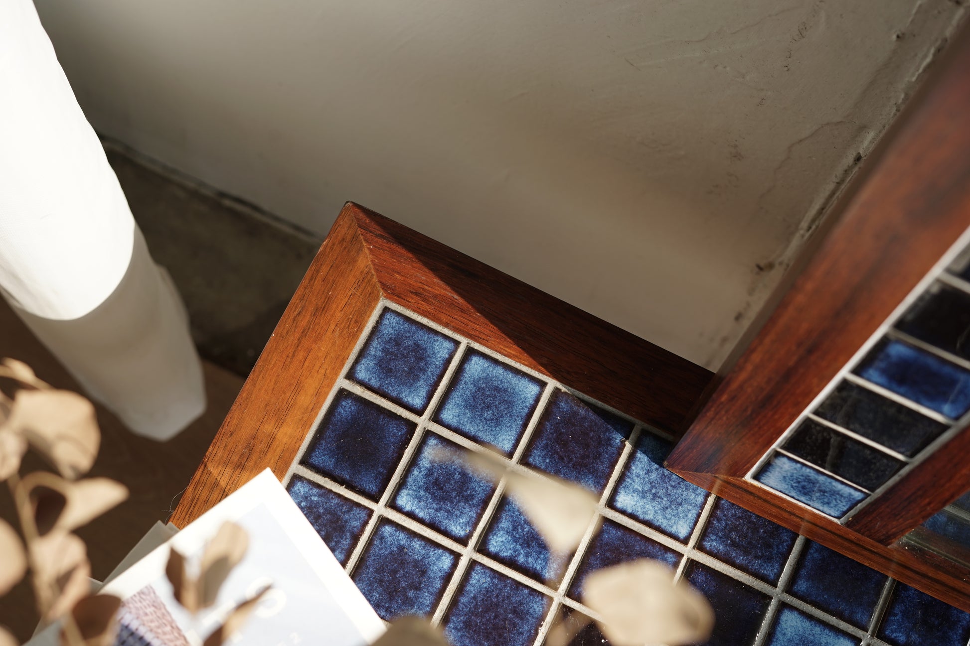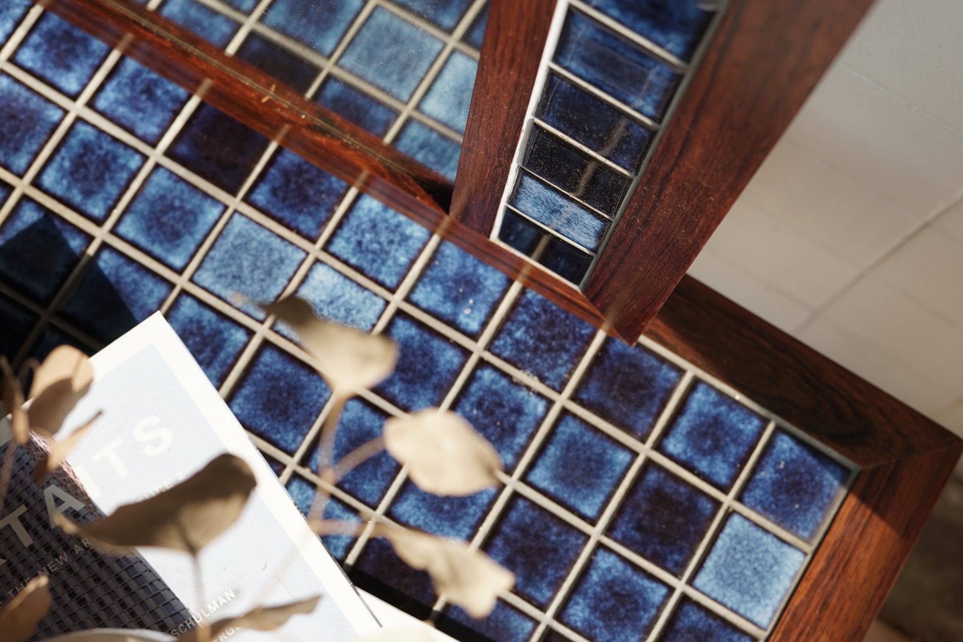 丹麥 玫瑰木 藍色磁磚 櫃鏡組