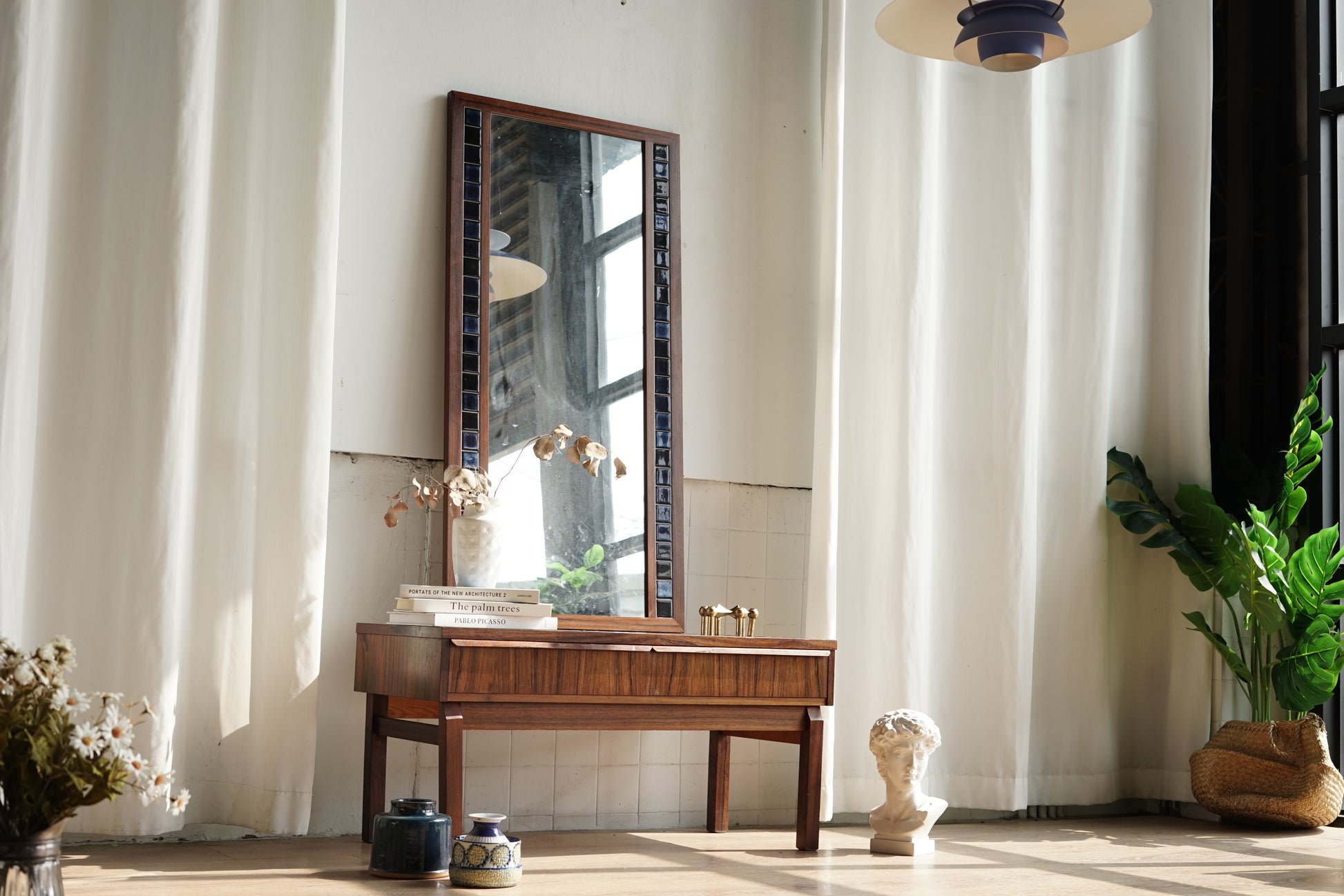 【丹麥 玫瑰木 藍色磁磚 櫃鏡組】