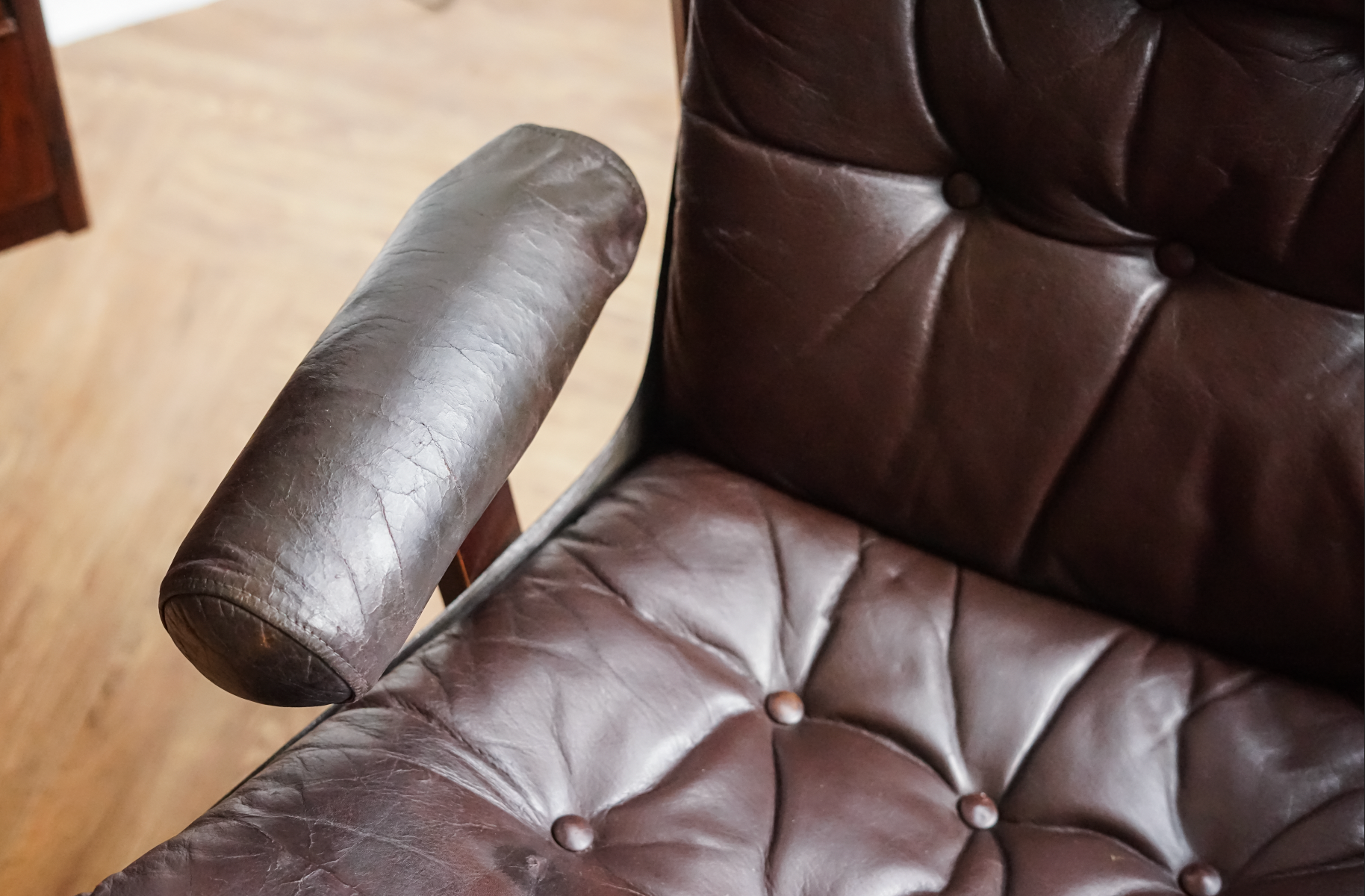 相信對北歐休閒椅設計有涉獵的朋友都會知道Superstar Chair ,外觀狀態極佳,皮革無破損,木質骨架結構穩固無缺角,坐感上也是相當舒適。