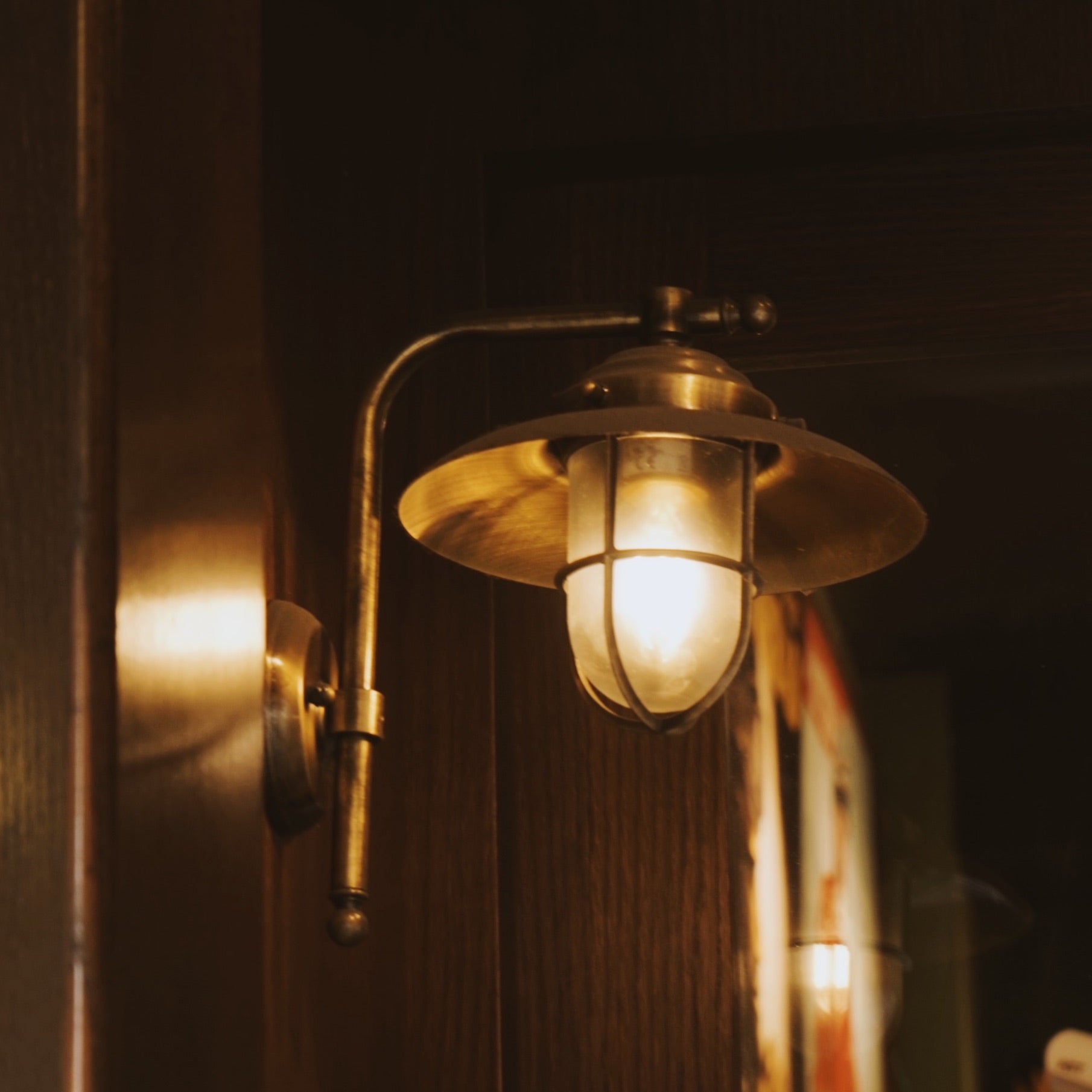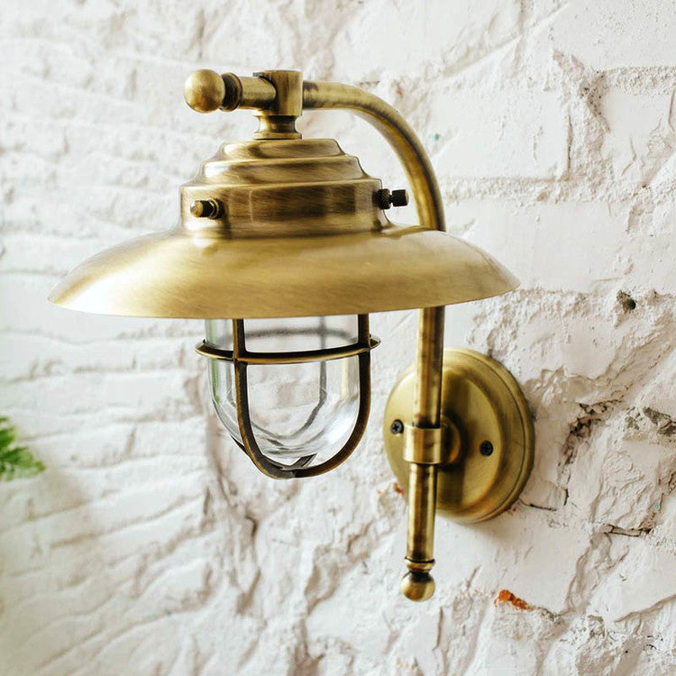 The main body is made of brass die-casting, with a glass lampshade, showing a retro and practical texture. The brass surface is distressed, suitable for industrial, Nordic, and classical style decoration.