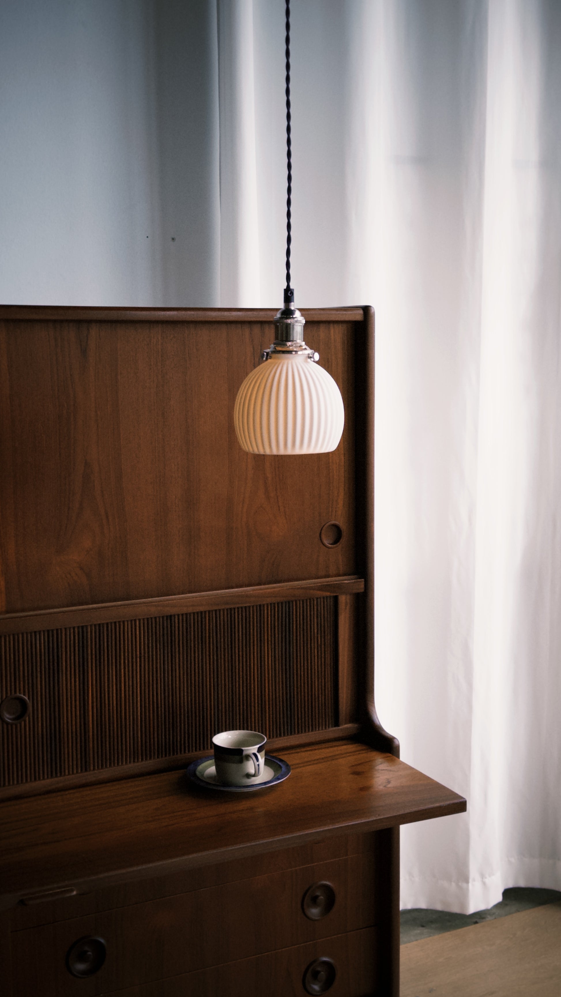 燈罩上的紋理設計,散發出優雅且純白的氣質,營造出獨特的美感與柔和的照明效果。