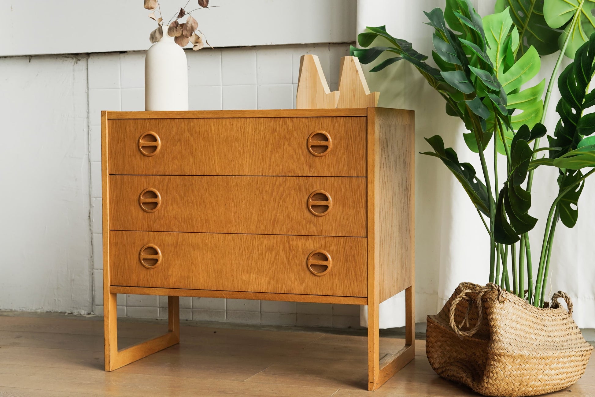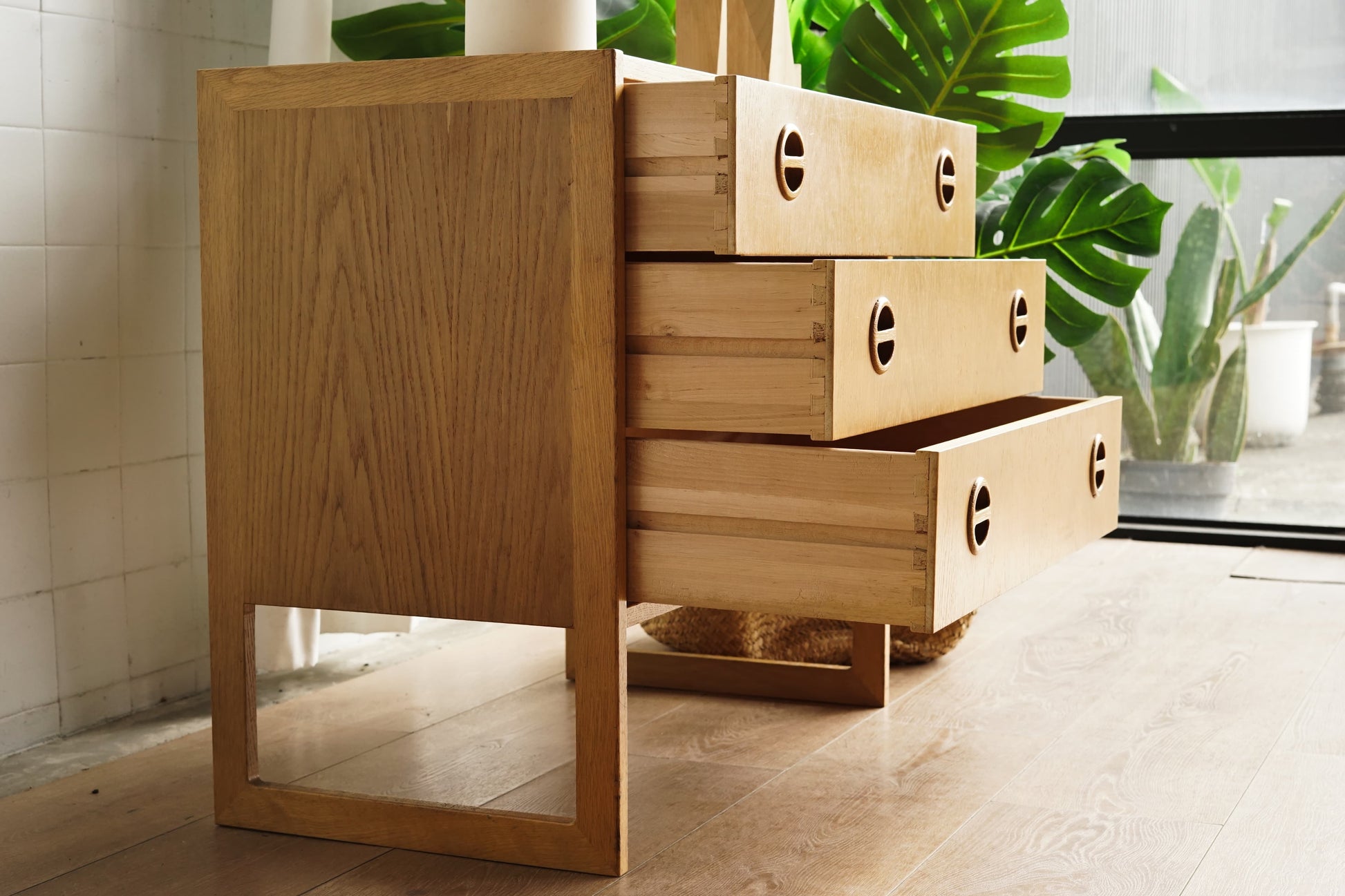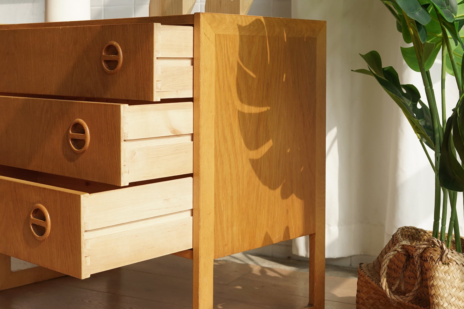這件三抽櫃由丹麥設計師 Arne Wahl Iversen 設計,具有典型北歐中世紀風格。