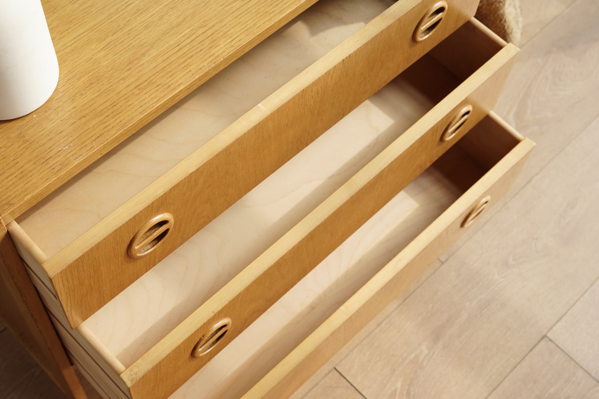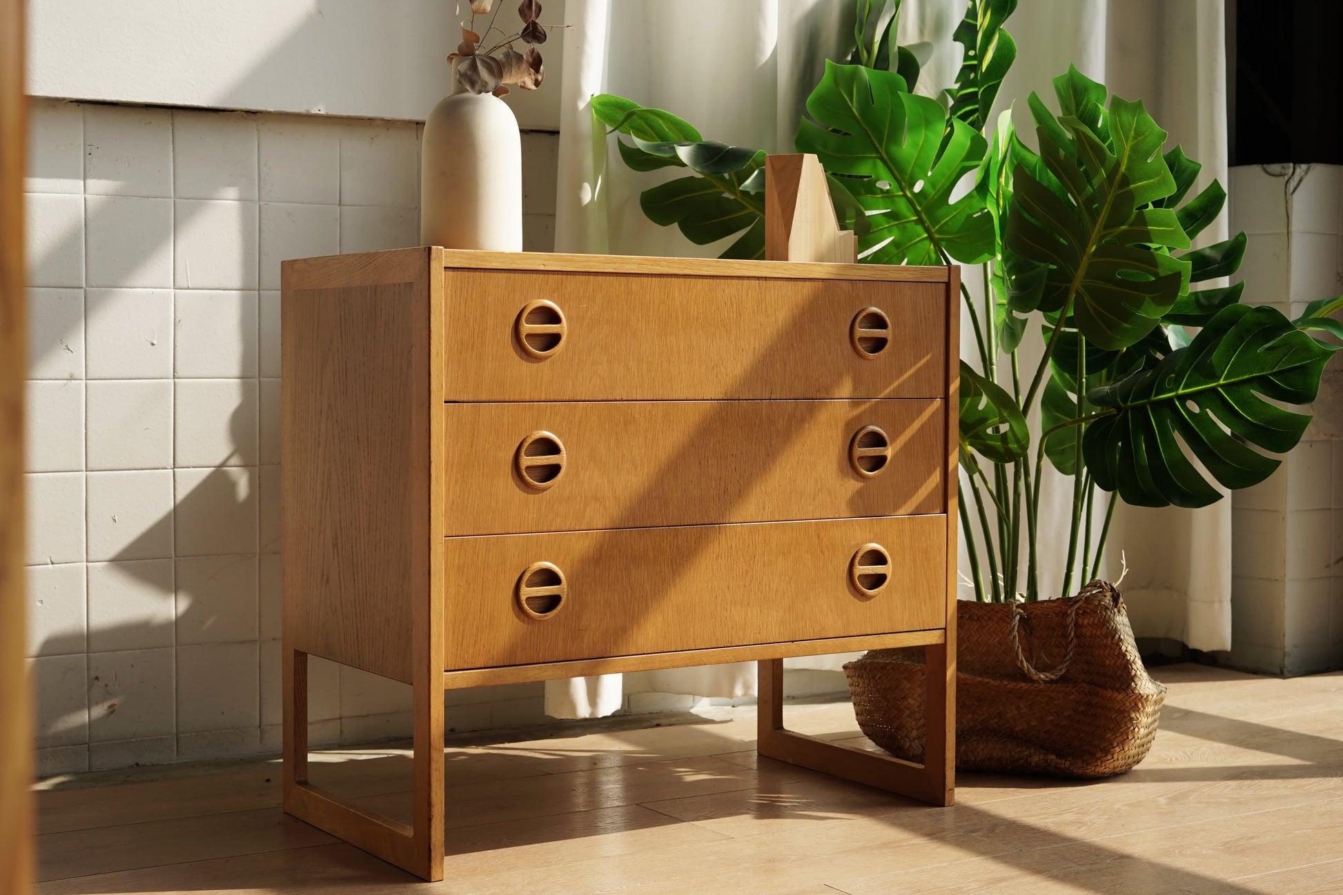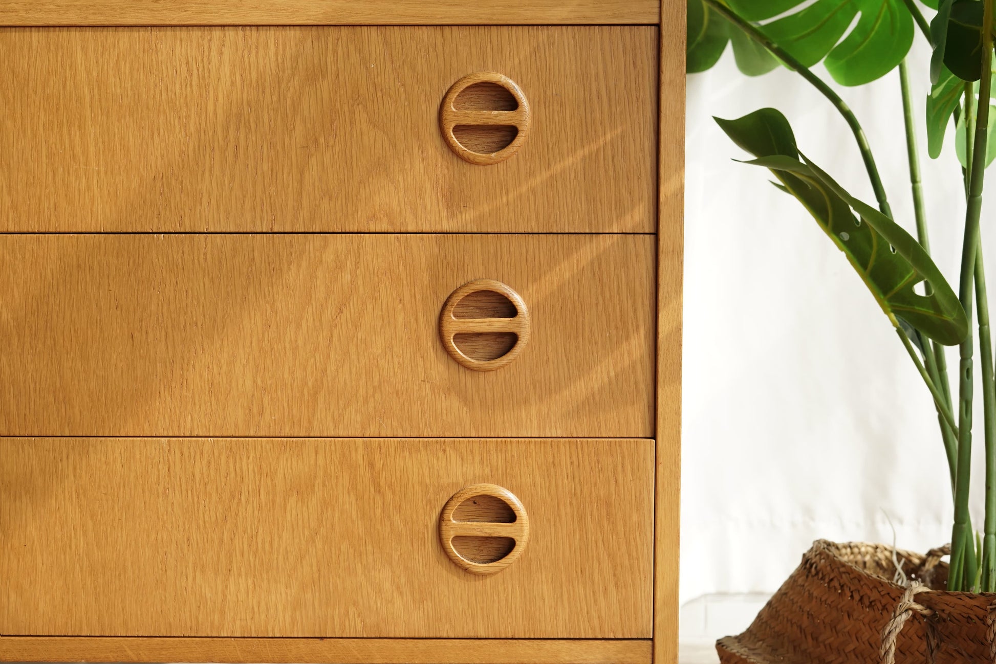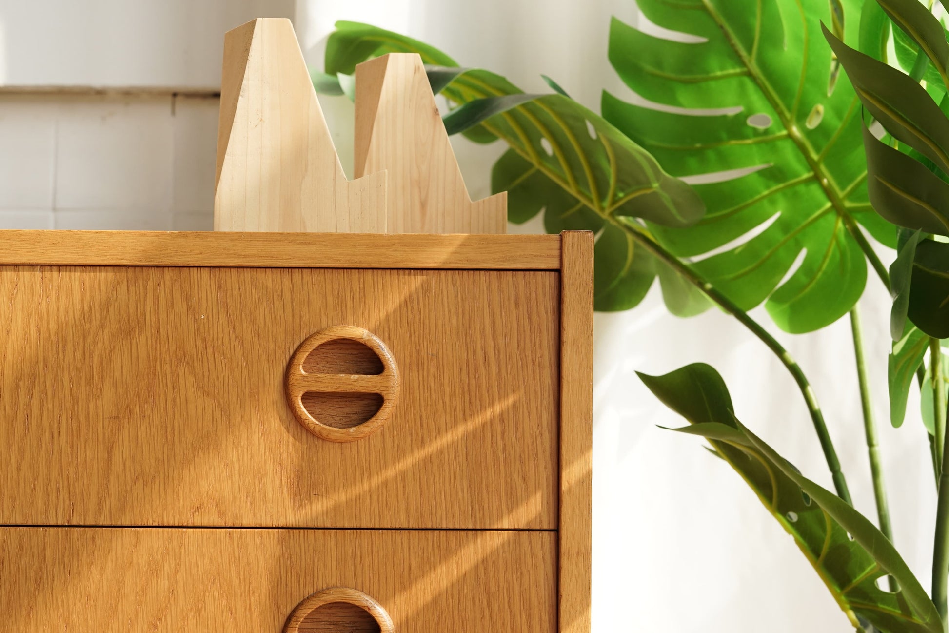 這件三抽櫃由丹麥設計師 Arne Wahl Iversen 設計,具有典型北歐中世紀風格。