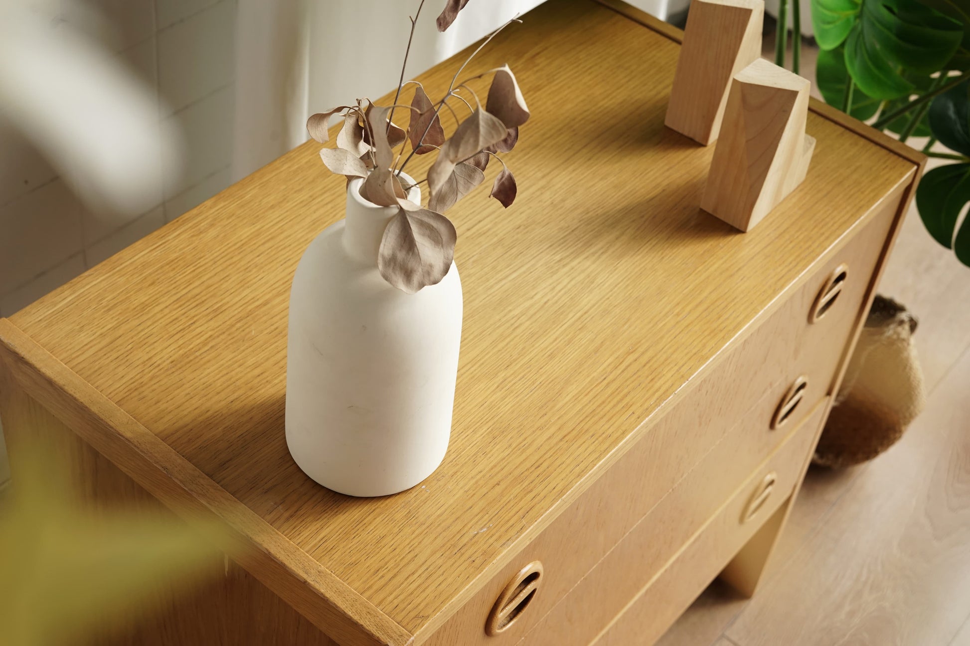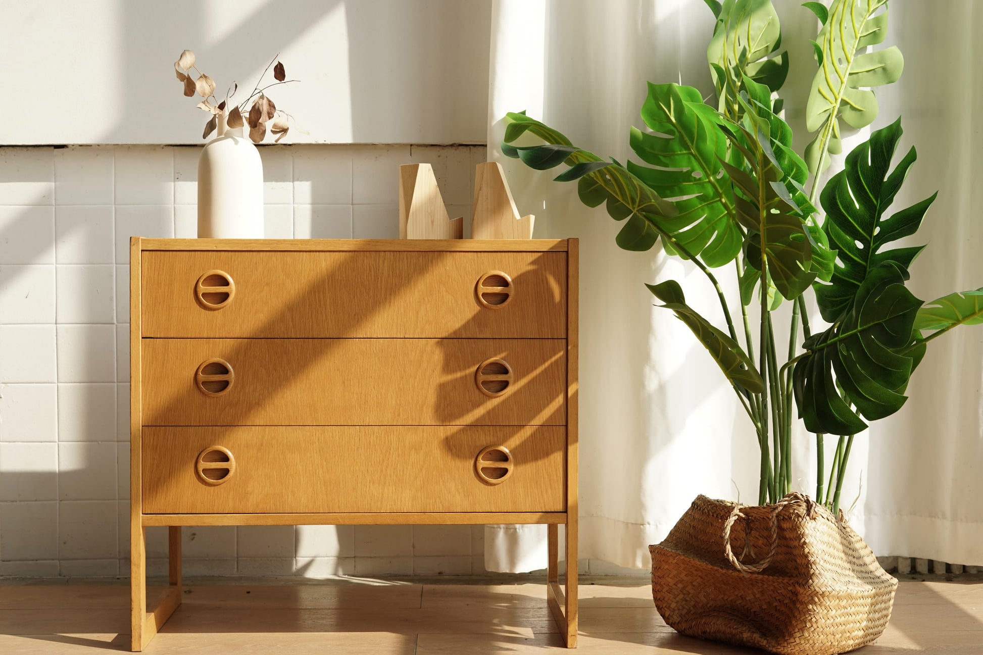 此件櫃體適合作為邊櫃或床邊櫃,能融入北歐、日式或現代居家空間。