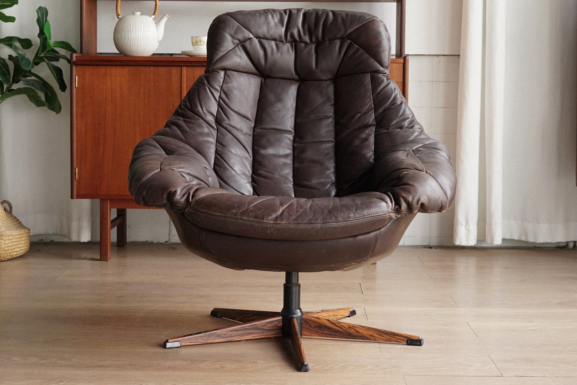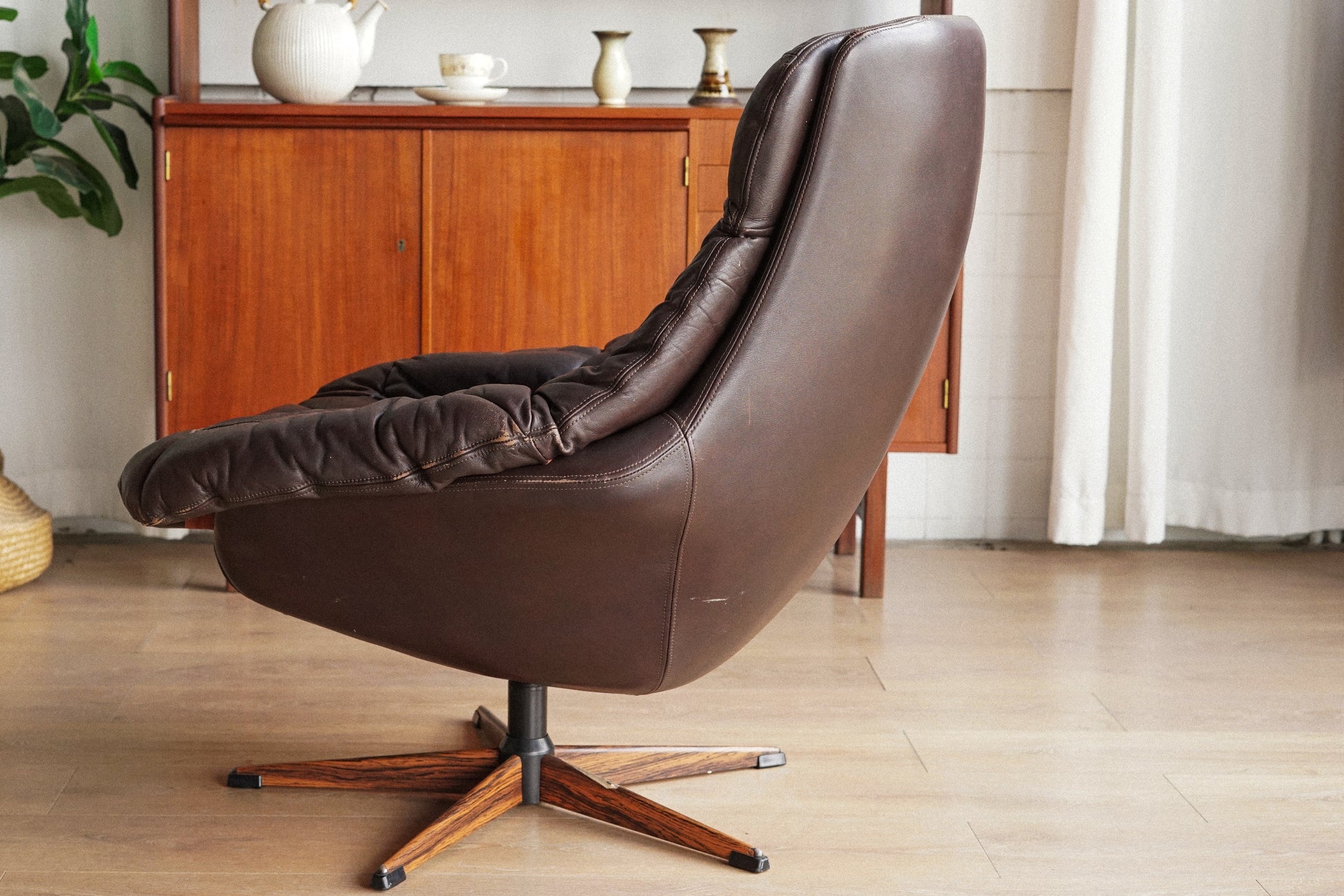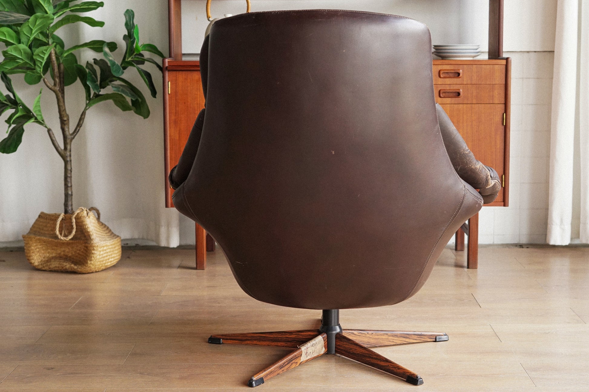 H.W Klein 深棕 真皮 玫瑰木 金屬腳休閒椅