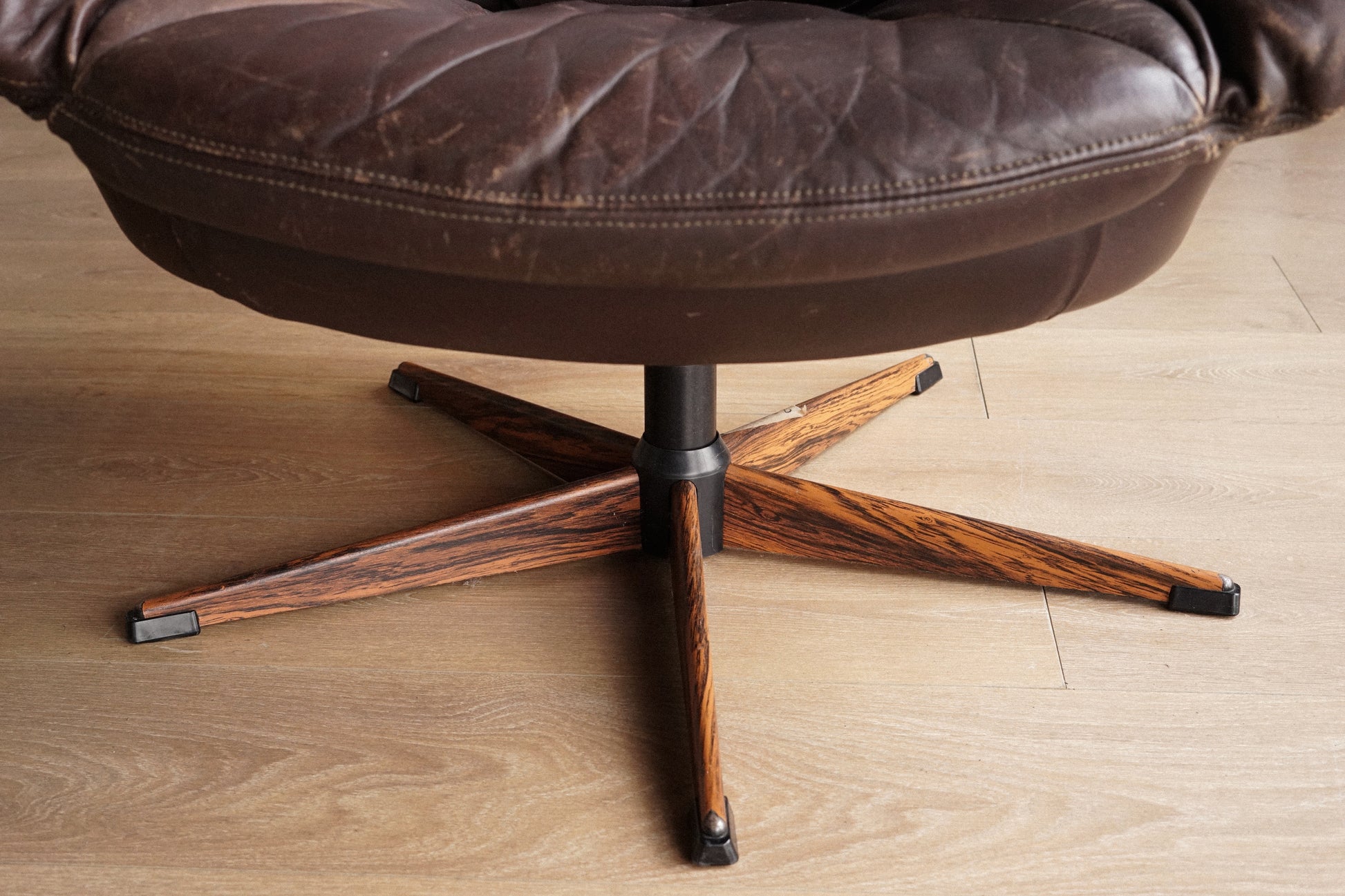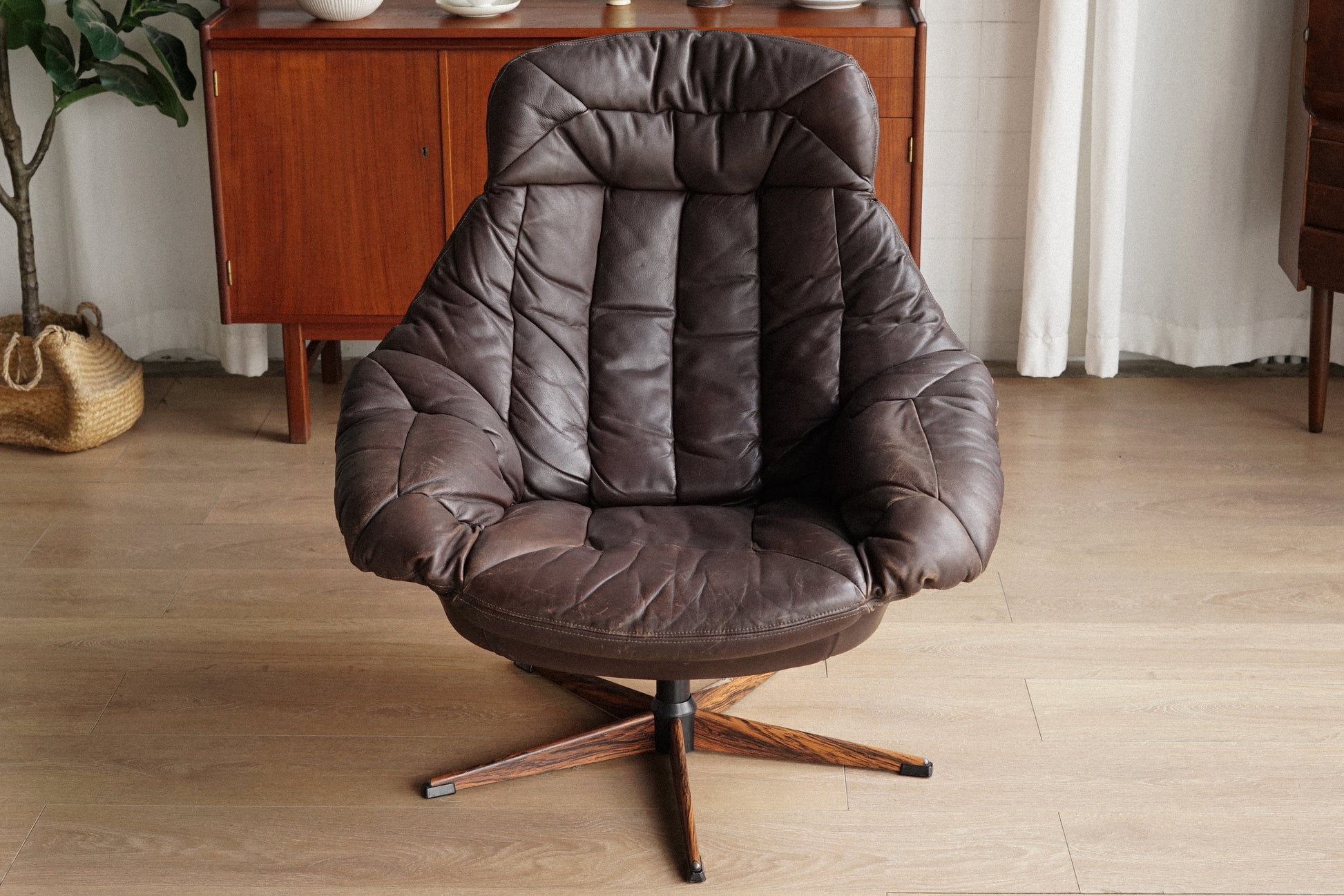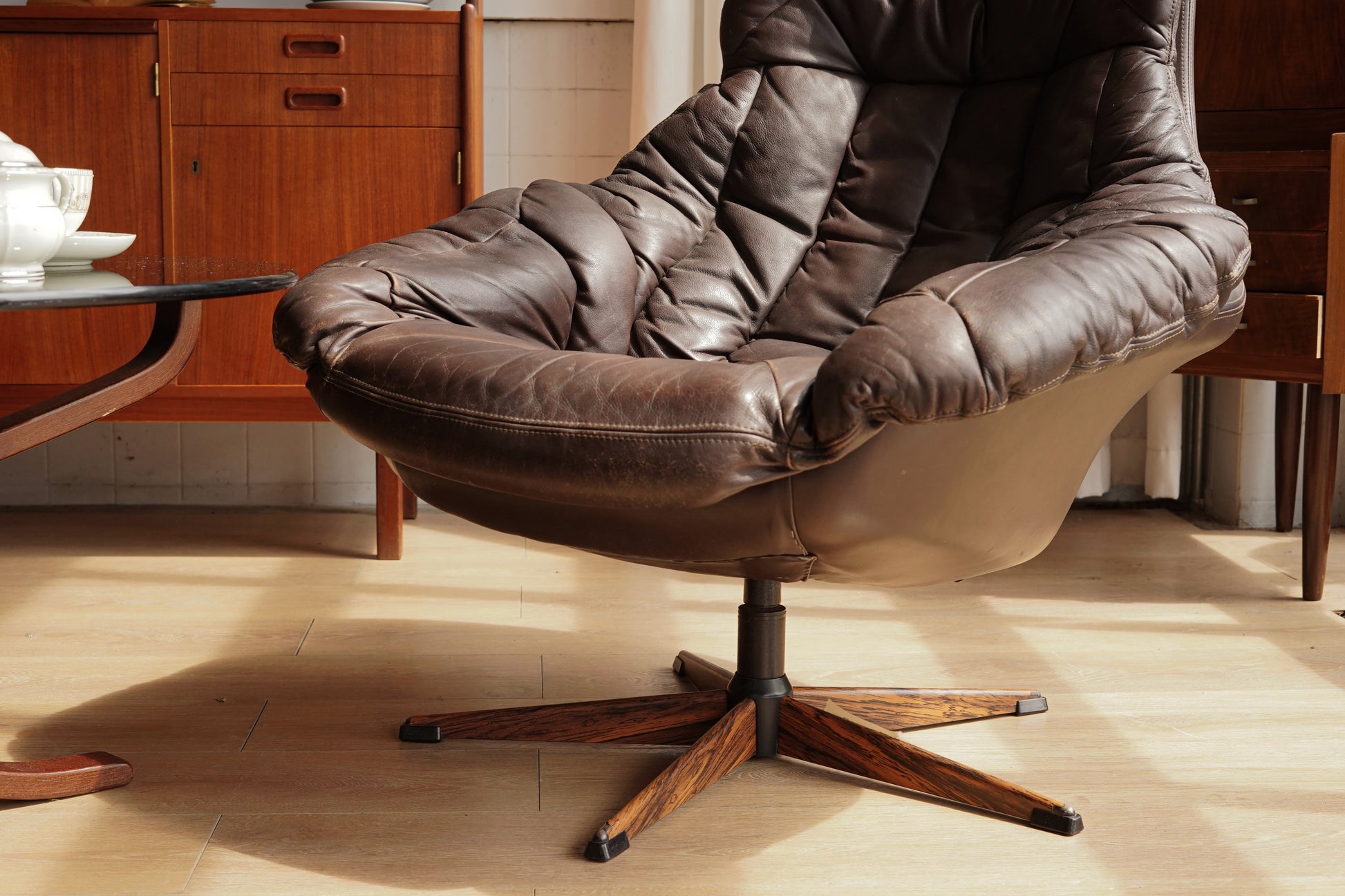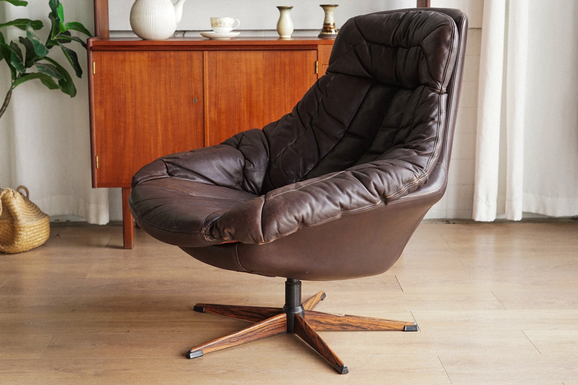 H.W Klein 深棕 真皮 玫瑰木 金屬腳休閒椅