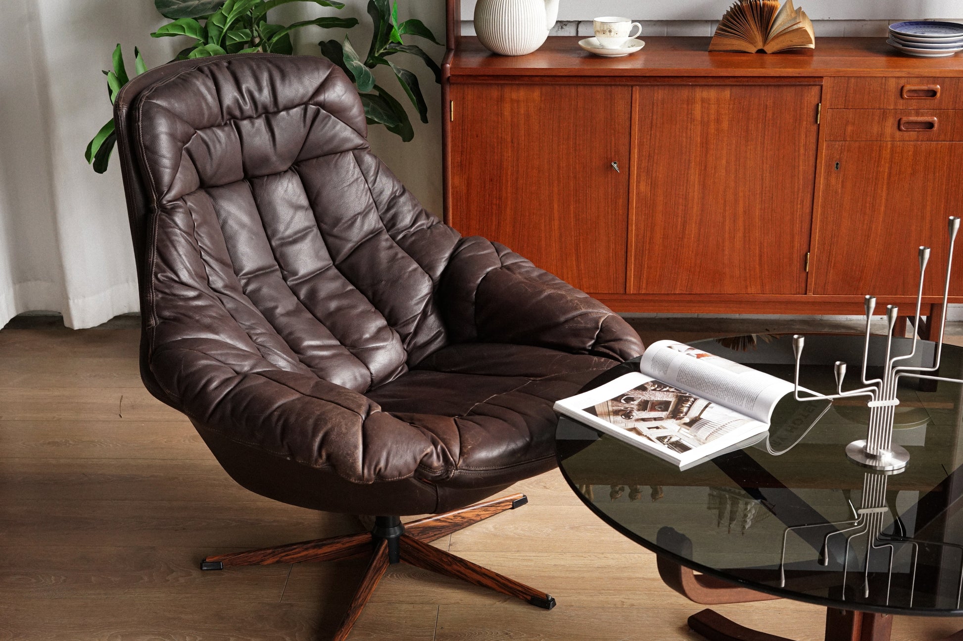由 H.W. Klein 設計的 深棕真皮金屬腳休閒椅,體現了北歐家具設計的極致工藝與現代主義風格的融合。靈感來自 20 世紀中期丹麥現代設計,將優雅的有機線條、舒適的人體工學,以及材質間的對比巧妙結合,打造出一款既具有經典美學,又滿足現代舒適需求的休閒椅。