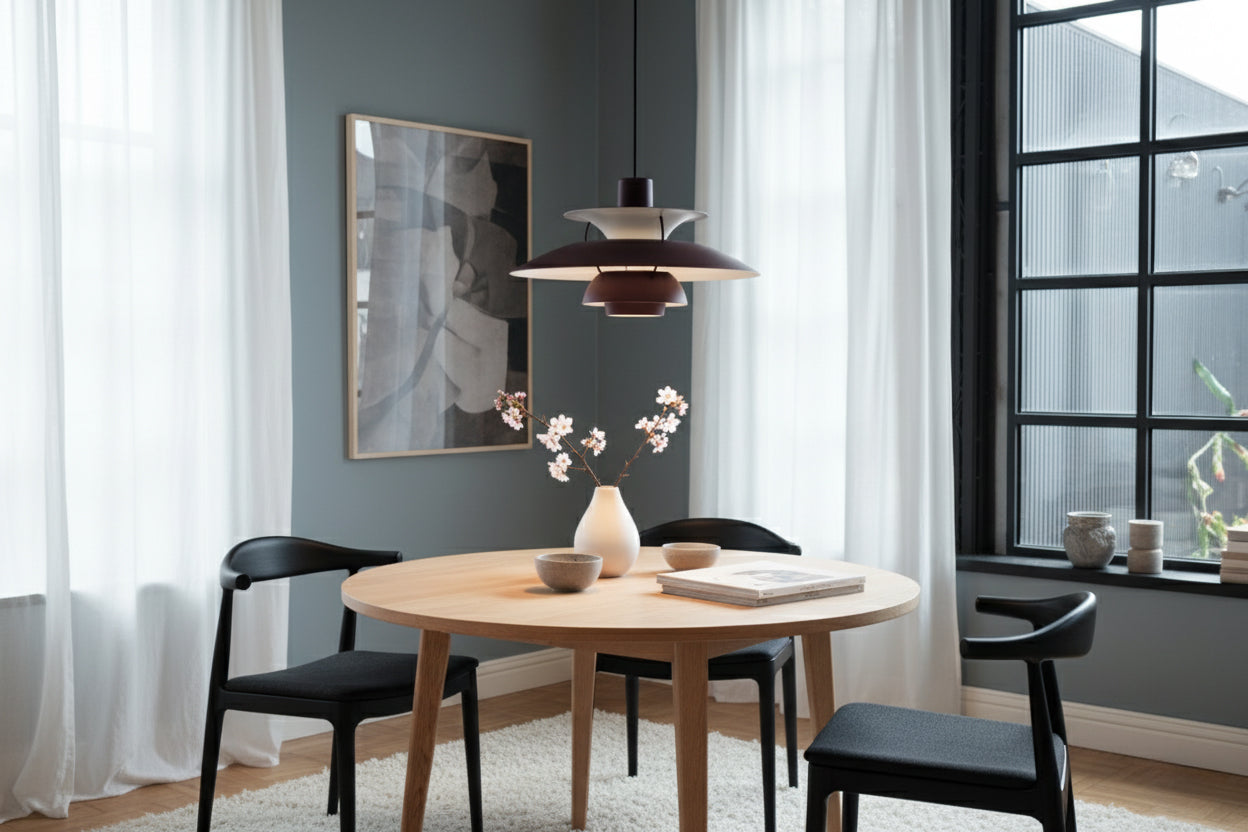 由 Poul Henningsen 於 1958 年為 Louis Poulsen 設計的經典之作 PH 5,是北歐現代照明最絕絕的作品之一。高度反射結構能均勻散射,避免眩光,賦予舒適的居家姿勢。
