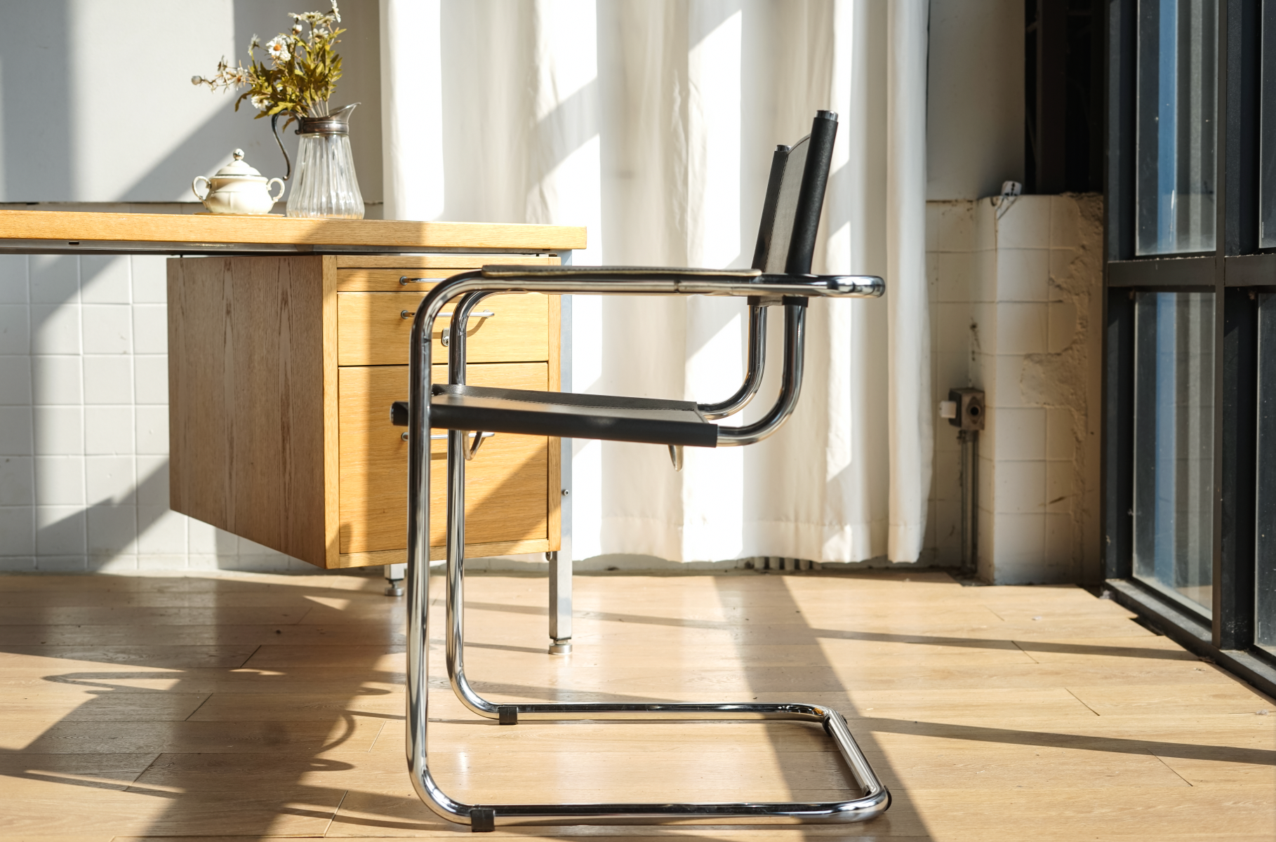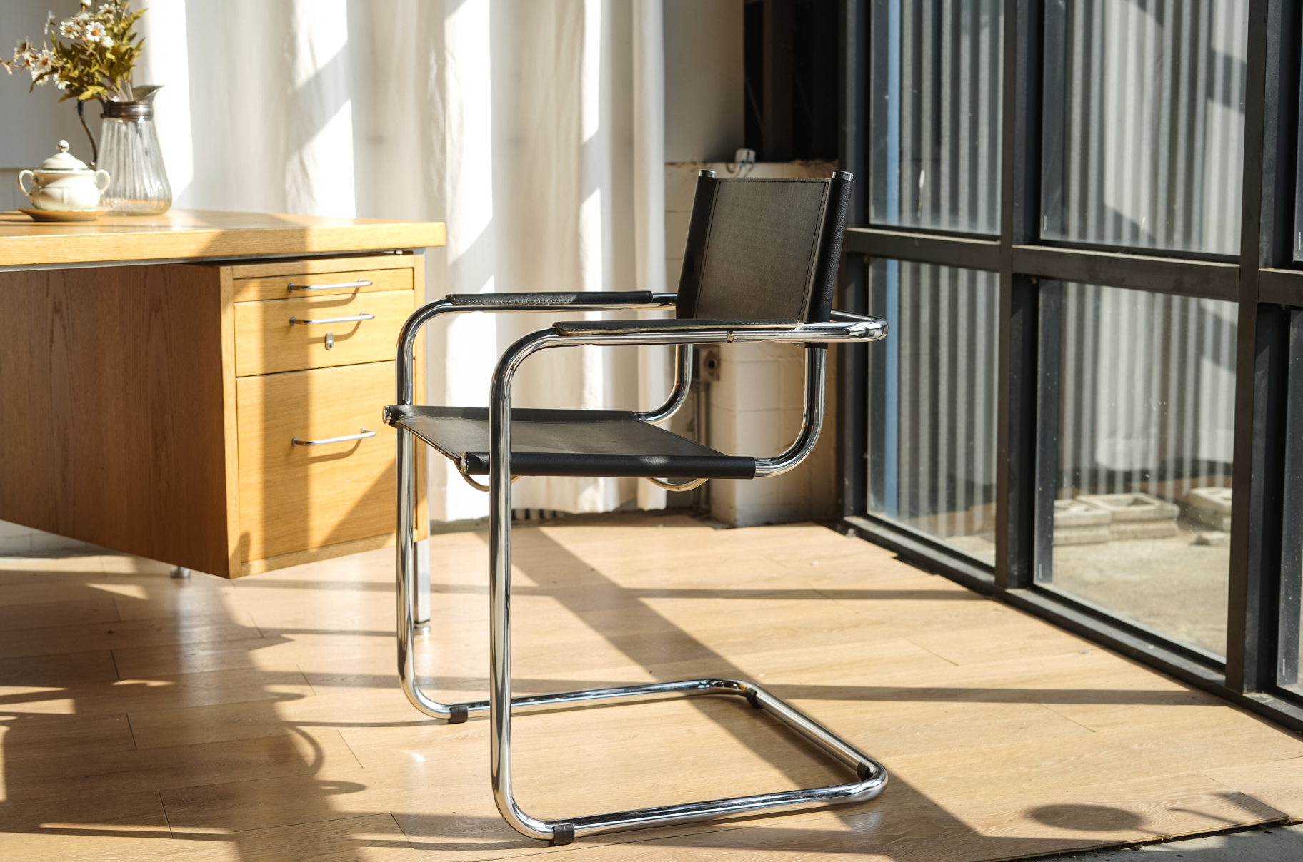 1926年荷蘭建築師Mart Stam首次設計出懸臂形式的椅腳,其C型的椅腳結構可說是在眾多Bauhaus風格的經典名椅設計中,成為了最具代表性的元素。
