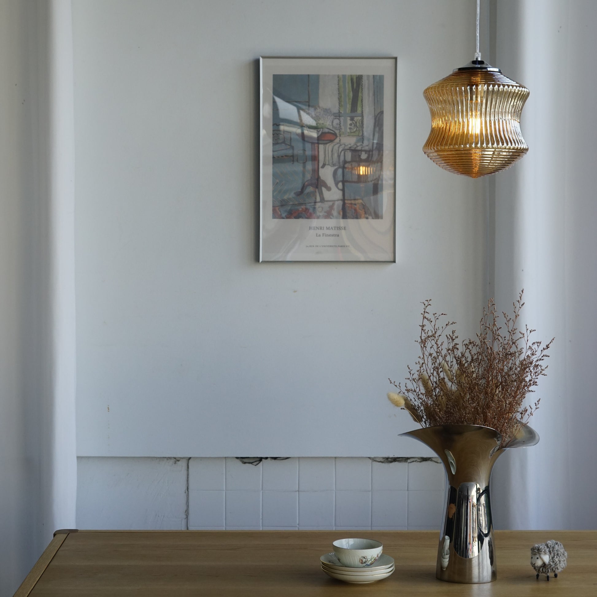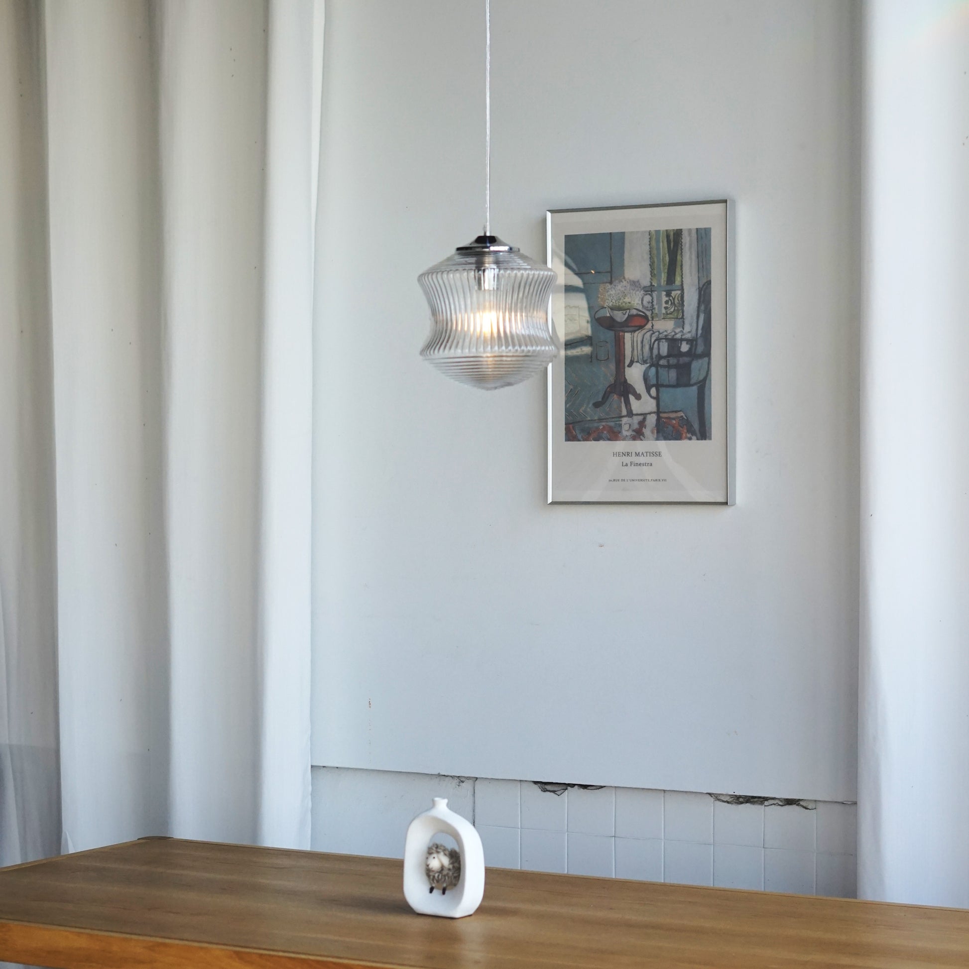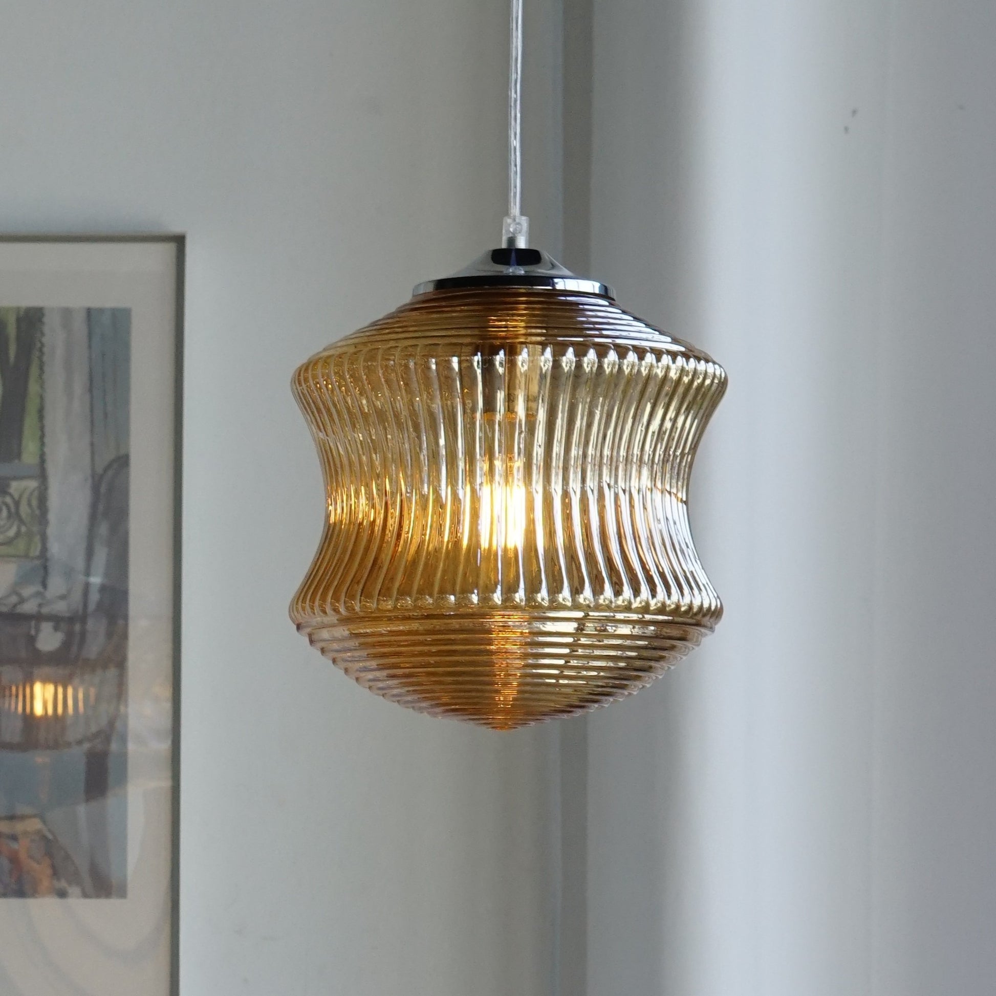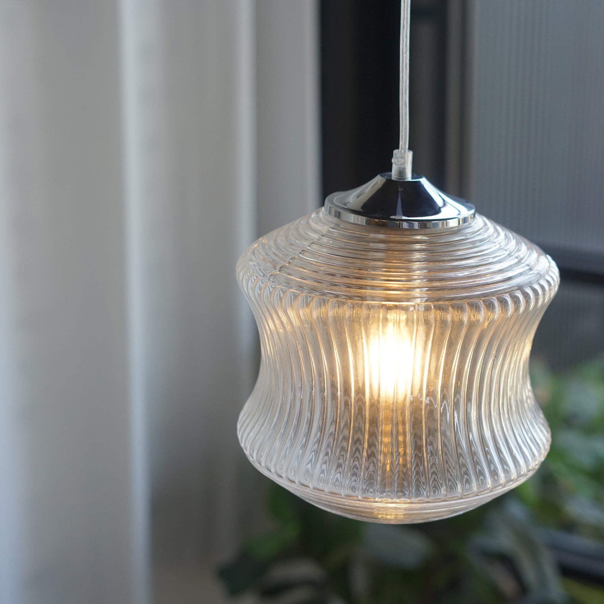 以精緻的玻璃製作,本款吊燈將中間的內凹弧形設計與上下的錐形完美結合。中部的內凹弧形設計與直條紋理營造出古典的雅致感,而上下的同心圓紋理使其富有藝術感的層次。