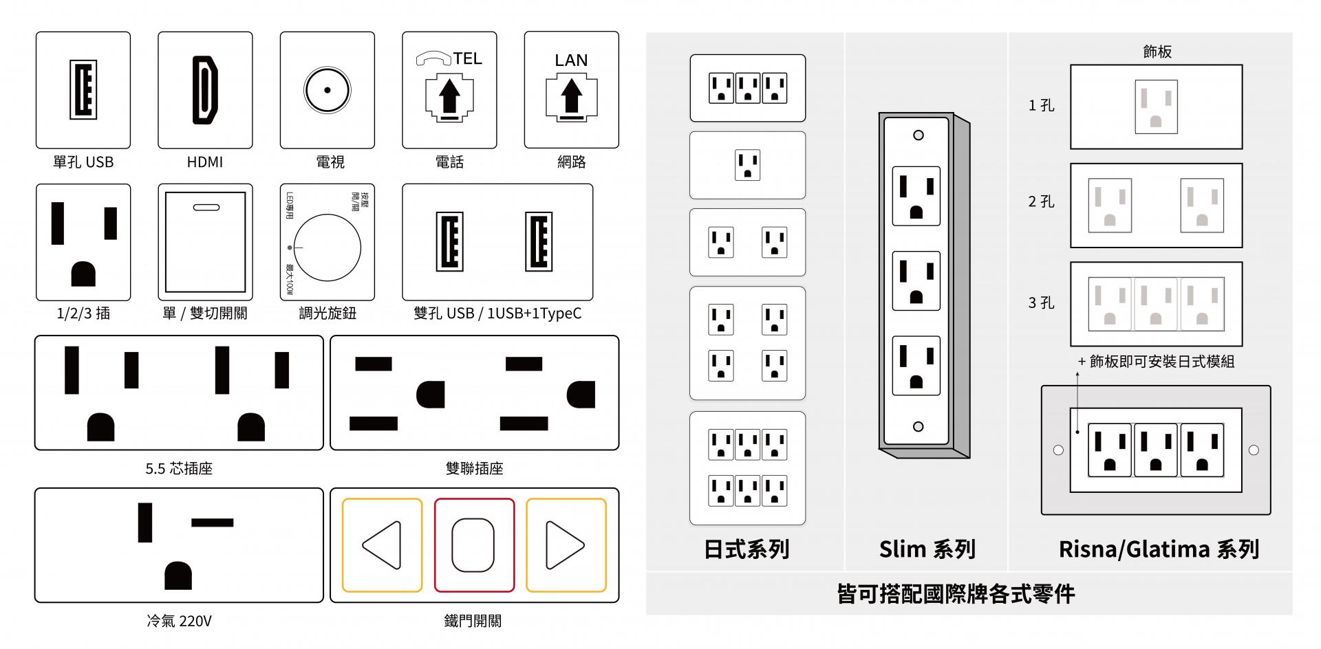 - Panasonic accessories can be used for TV, Internet, phone, USB, HDMI, switches and sockets, and can also be used with levers.
