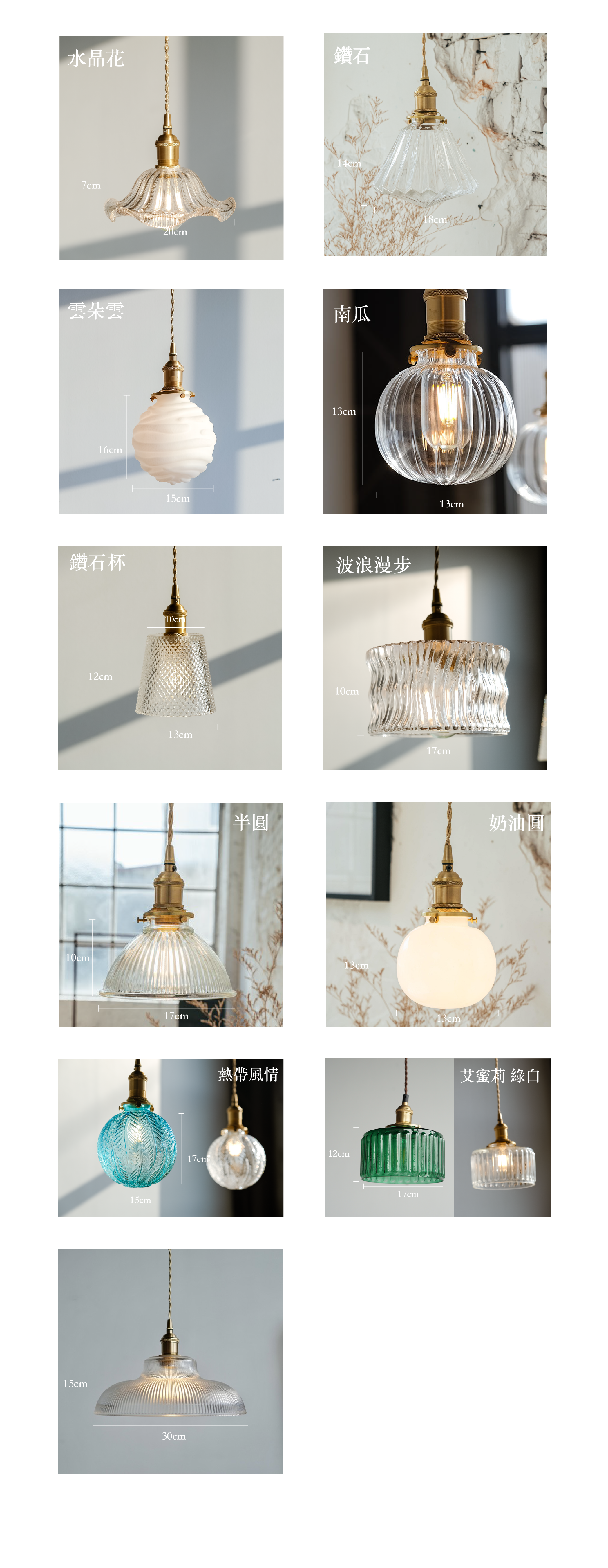 A diverse series of lampshades, made of glass, iron, brass and other materials, combined with brass lamp holders of different colors, can be combined to create simple, retro, industrial, Japanese and other styles.