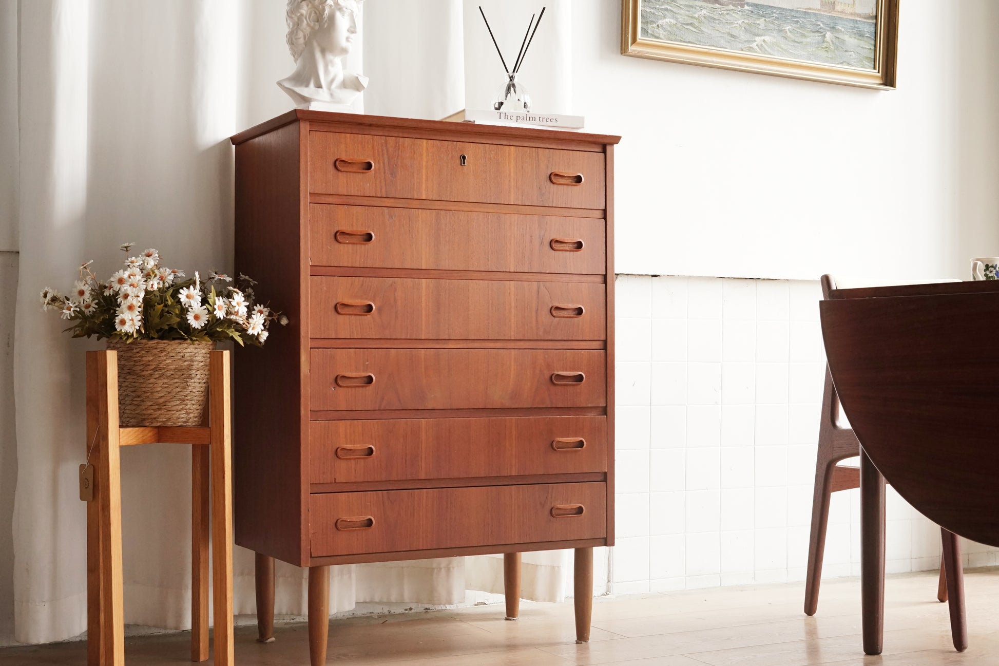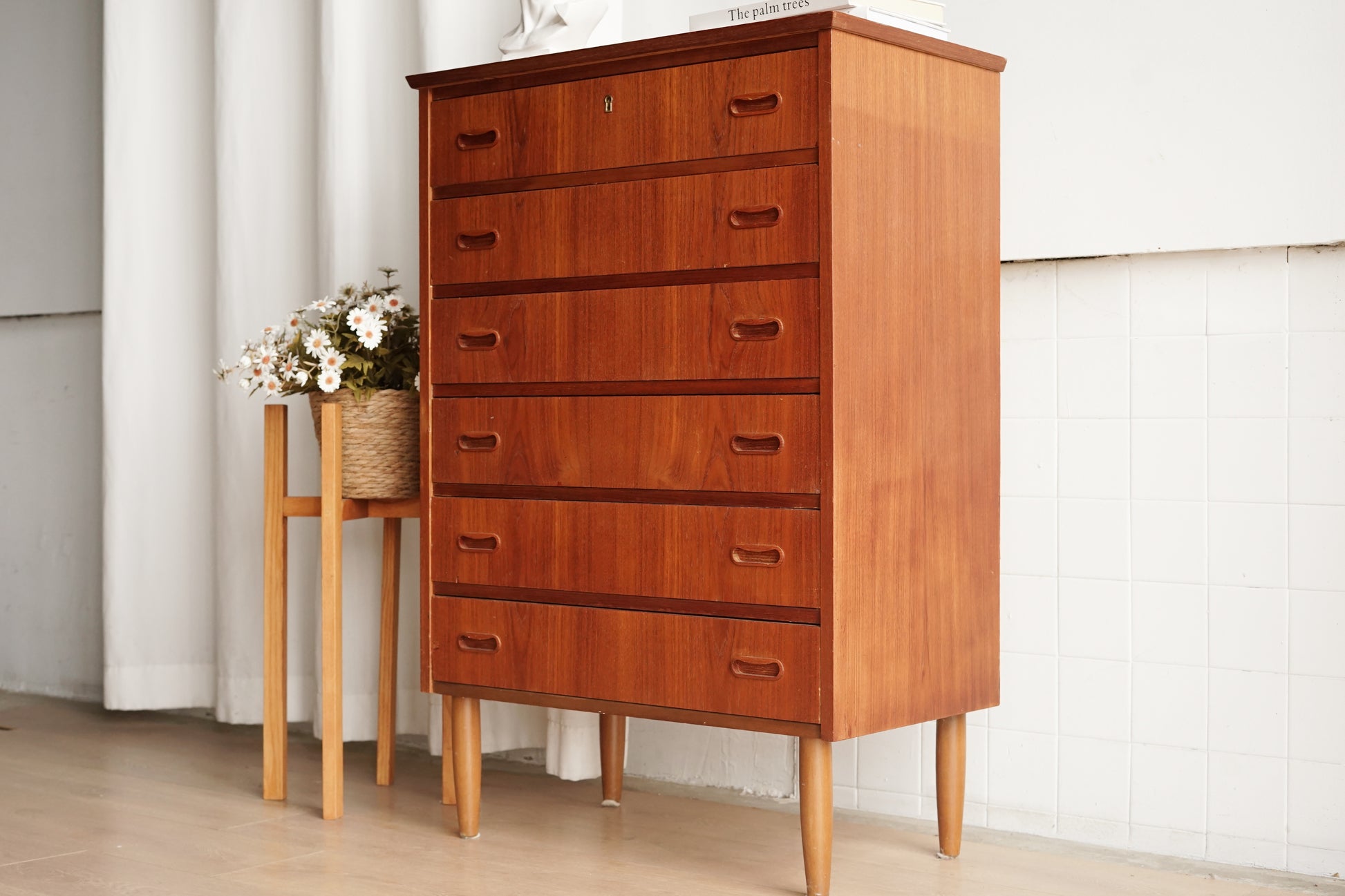 【丹麥 柚木 中型 六抽屜 高櫃】