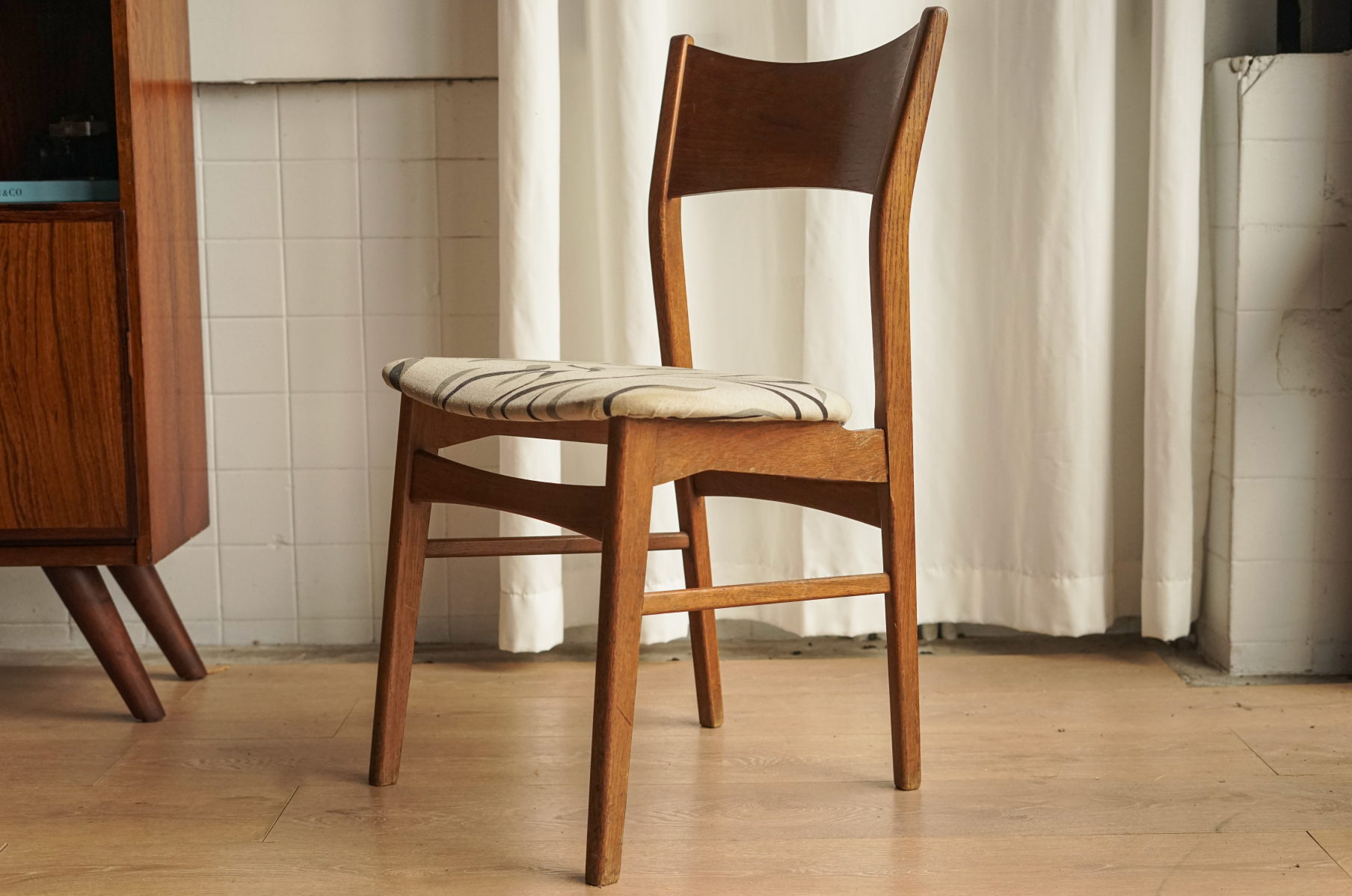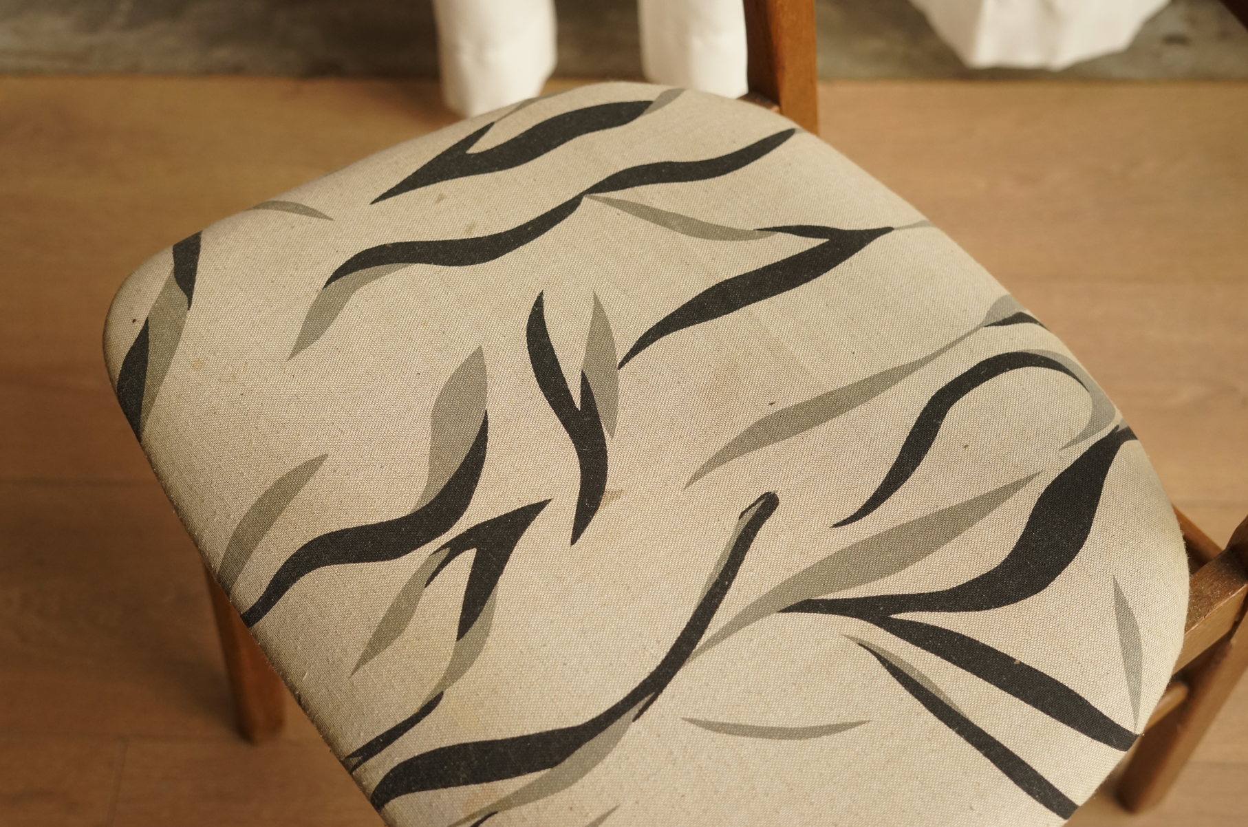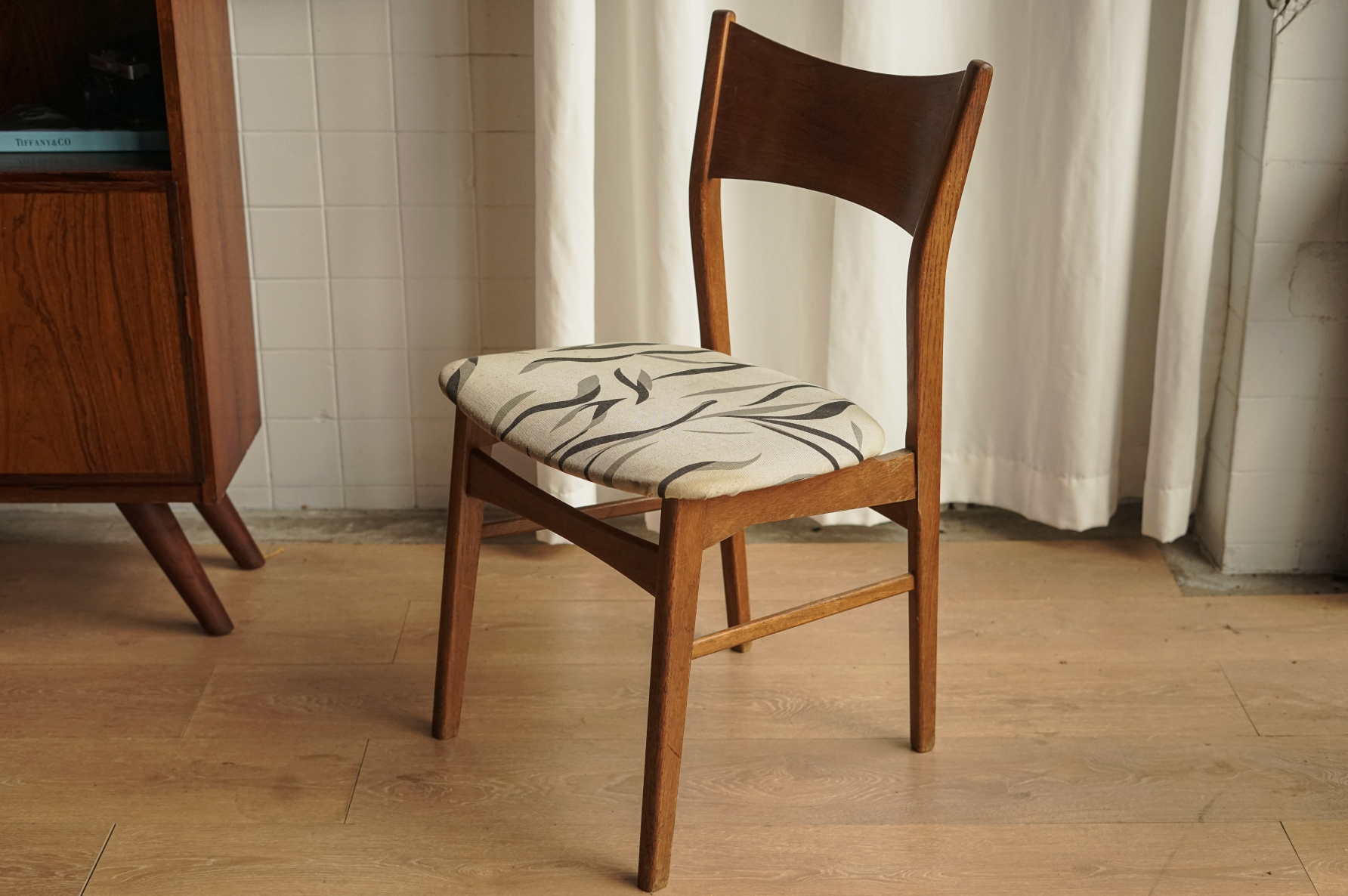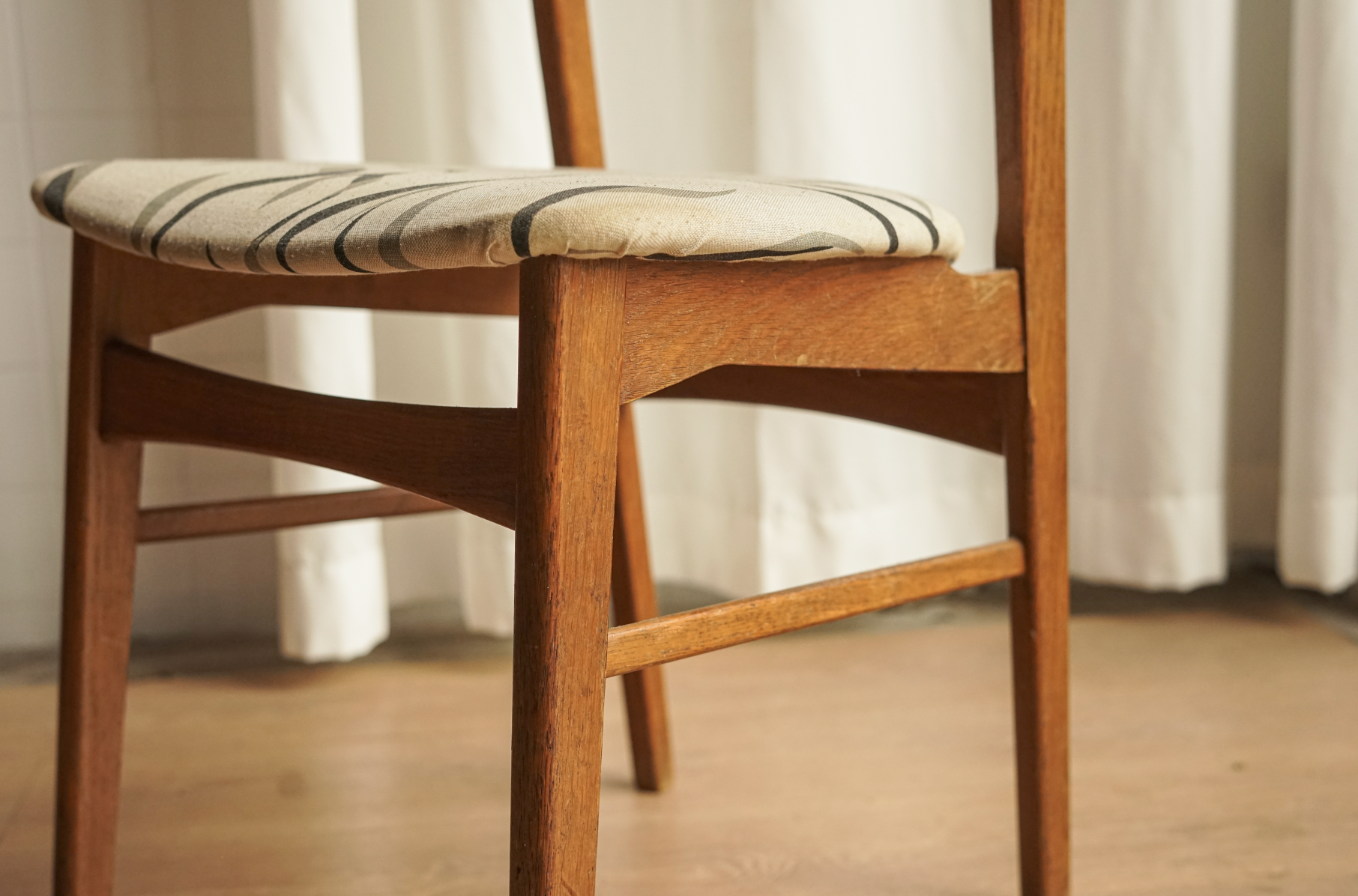 【丹麥 柚木 典雅花紋 布面餐椅 】