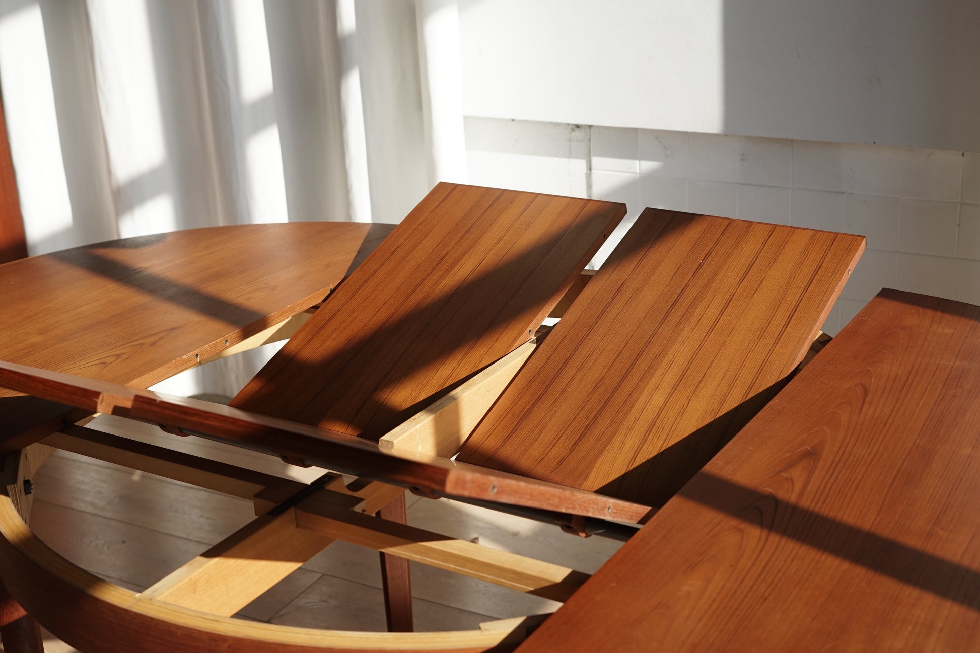 【丹麥 柚木 典雅 圓形 蝴蝶延伸餐桌】
