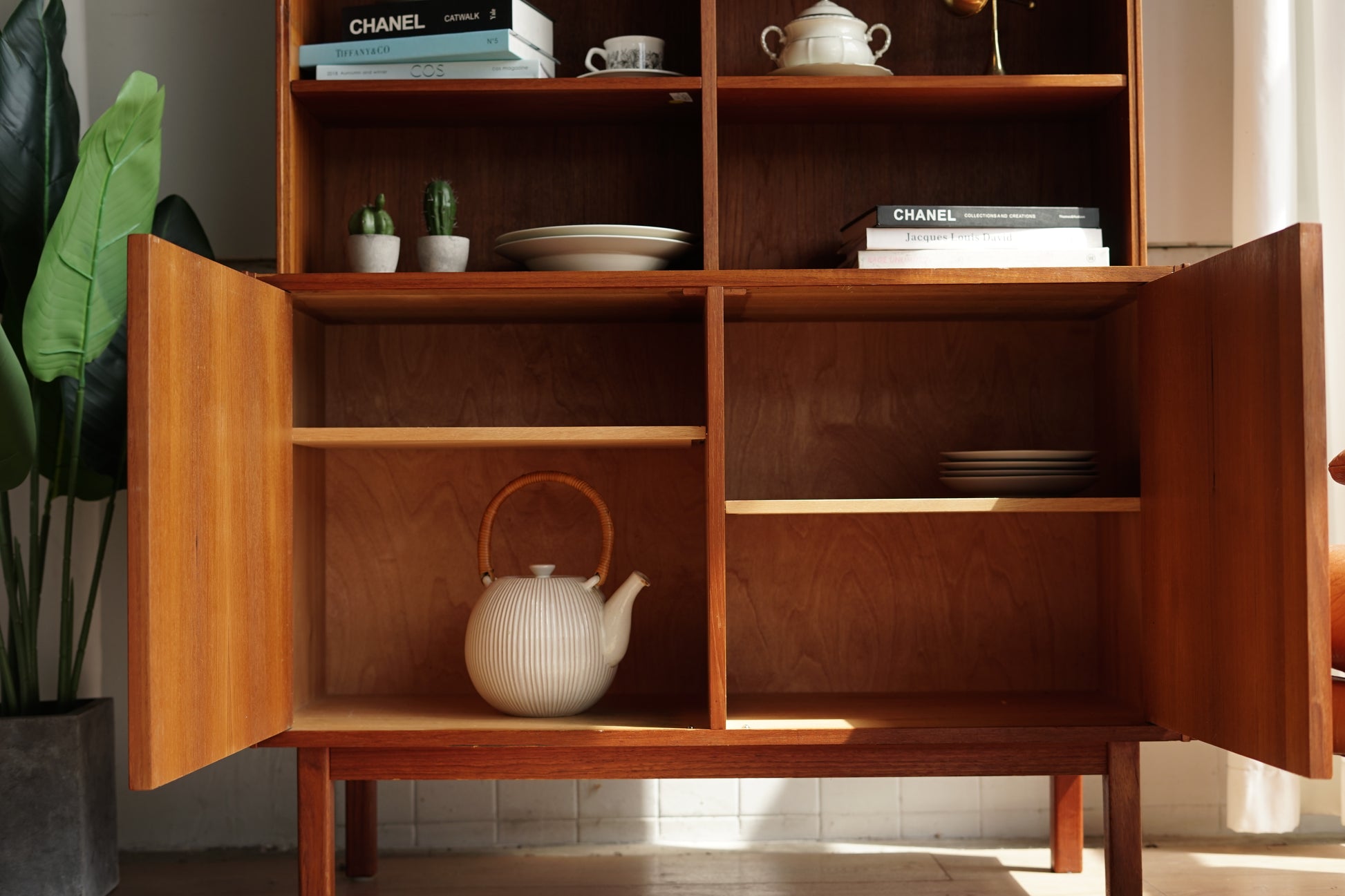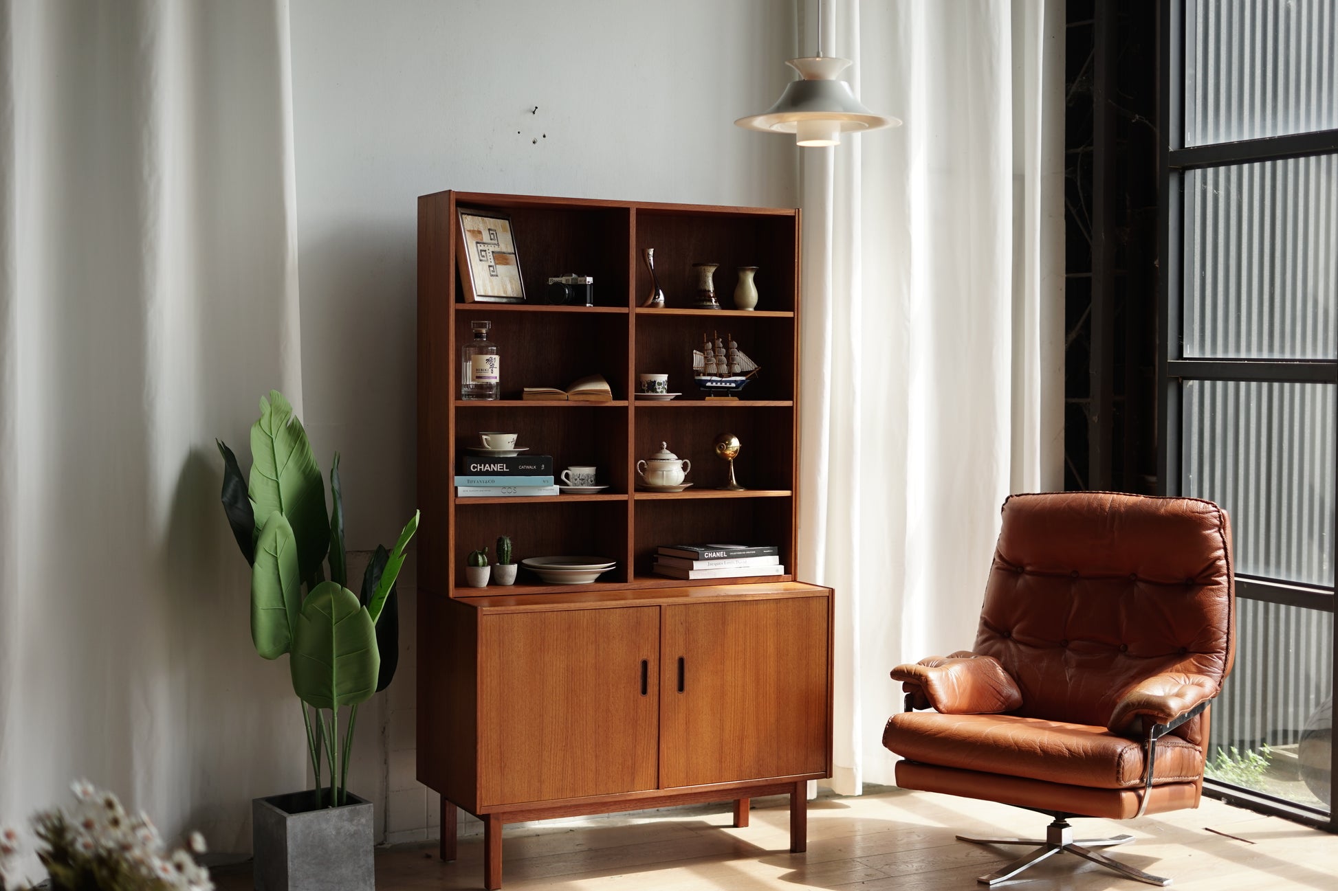 【丹麥 柚木 拉門 收納 邊櫃/書櫃】