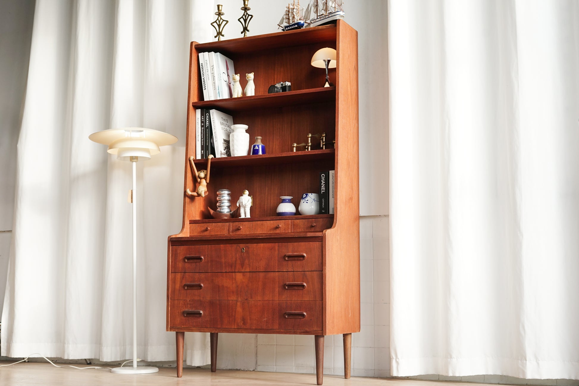 丹麥 柚木 經典 抽屜 高腳 高書櫃