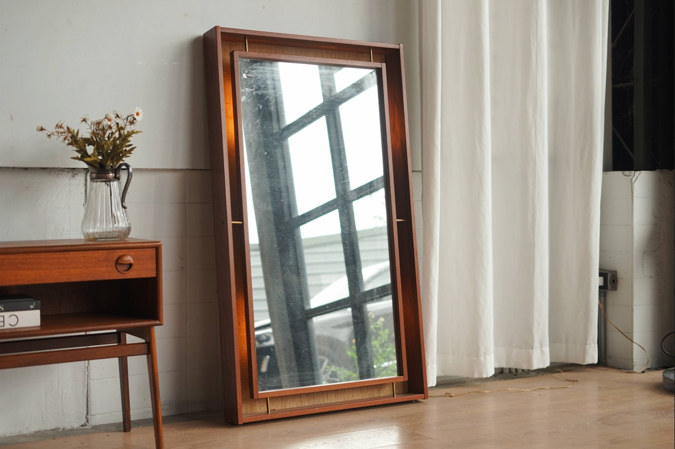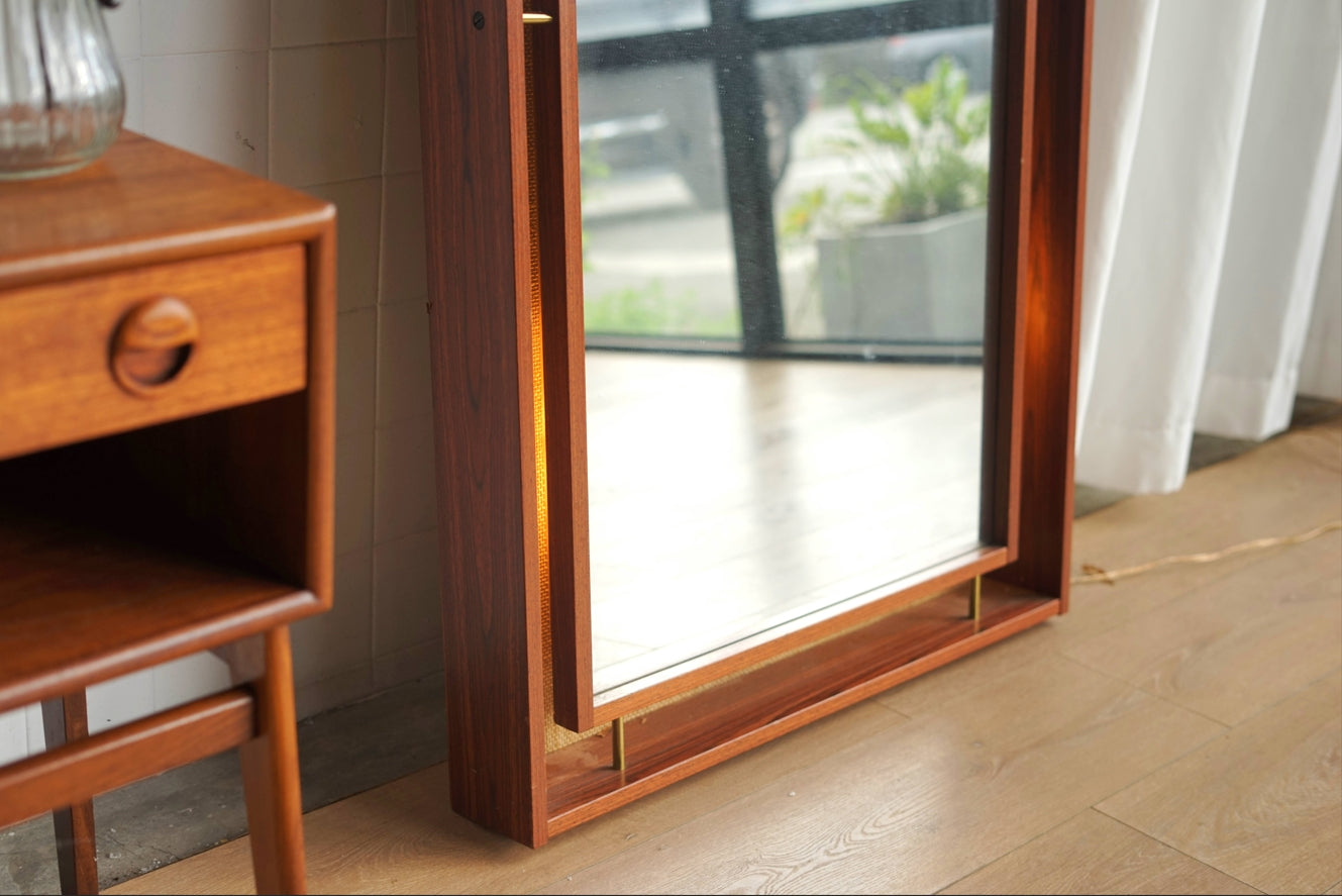 這款丹麥柚木落地燈鏡,結合了全身鏡與柔和照明的功能,無論是作為日常穿搭檢視還是化妝打理都很適合,可擺放至沙發旁增添氛圍,還是放置於衣帽間作為實用鏡子,都能完美契合各種裝潢風格。柚木自然的木紋與燈光結合,更為空間增添了溫暖的層次感。