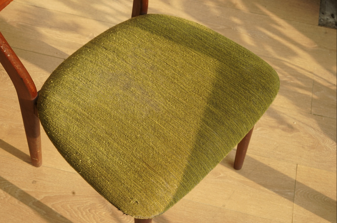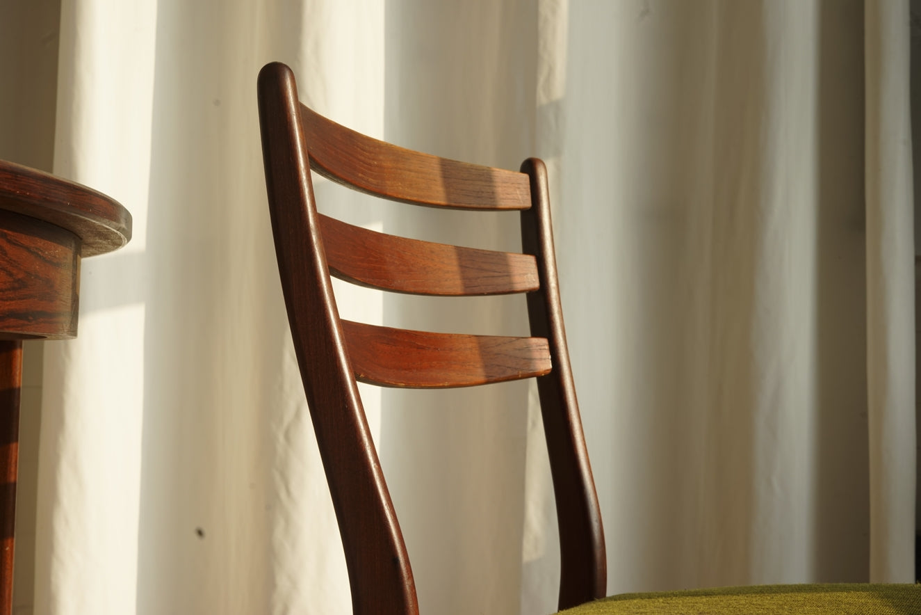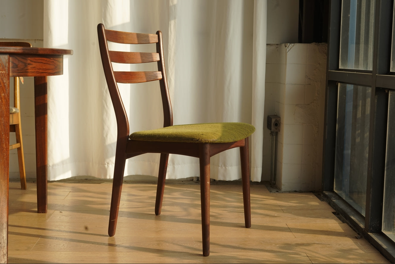這款丹麥 典雅 芥綠 布面餐椅,椅腳與框架表面經過細緻打磨,展現出自然的紋理與溫潤的手感木質與布面的結合,完美平衡了結構穩固與視覺美感,將北歐設計的優雅與實用融為一體,為用餐空間注入溫暖且高雅的氛圍。