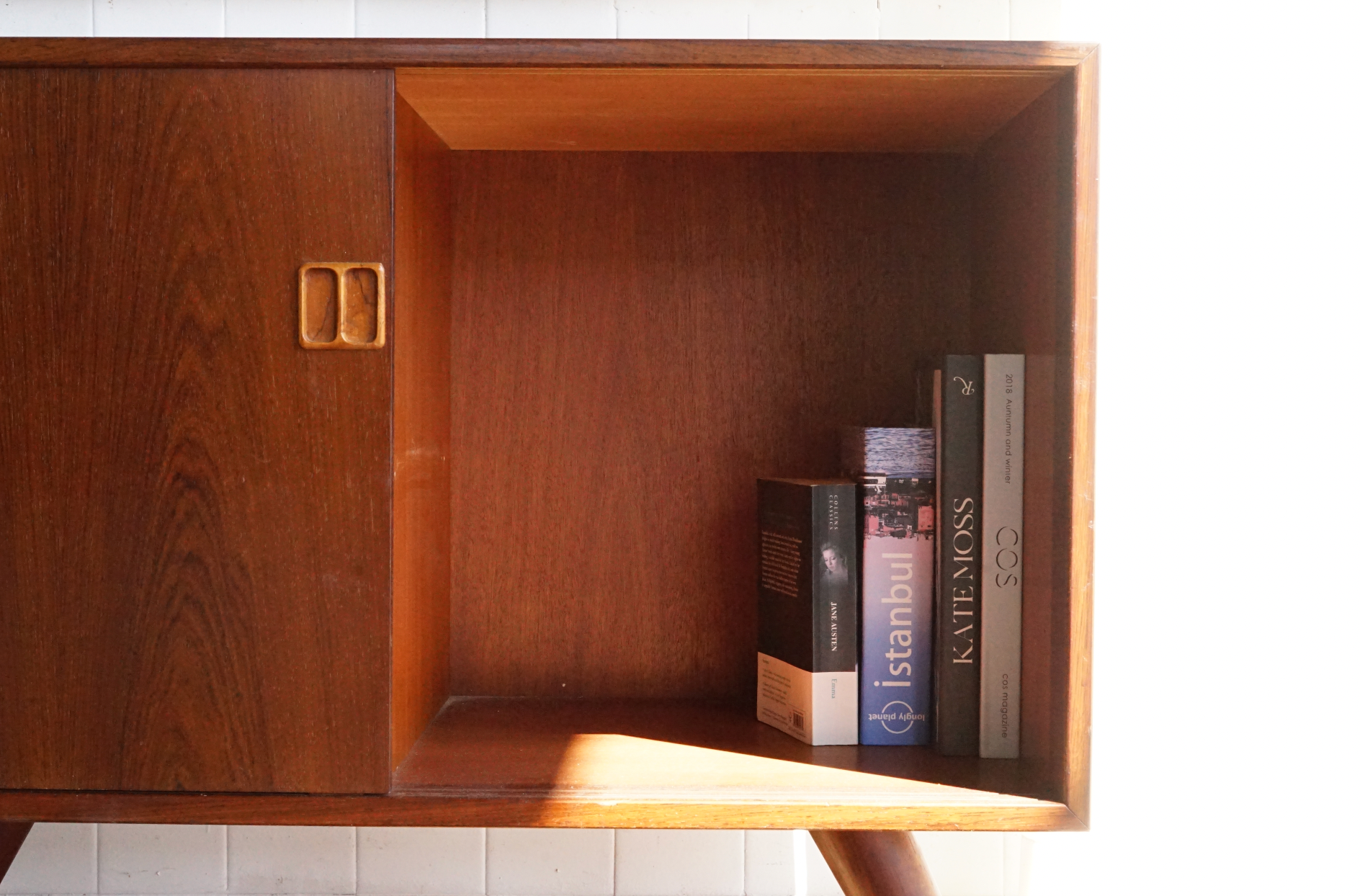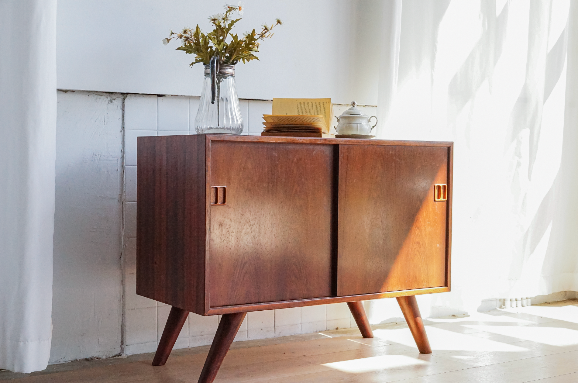 優雅而低調的氣質,丹麥經典工藝,選用紋理溫潤的玫瑰木,搭配幾何手把雕刻細節,整體呈現內斂沉穩的古典氛圍。內部收納力十足,簡約分隔設計,提供自由擺放大空間,能完美收納書籍或日常用品,既能作為邊櫃放在玄關或沙發旁,也可作為低矮儲物櫃,讓空間更有秩序與層次。