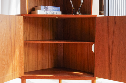 丹麥 柚木 對開玻璃 轉角展示櫃