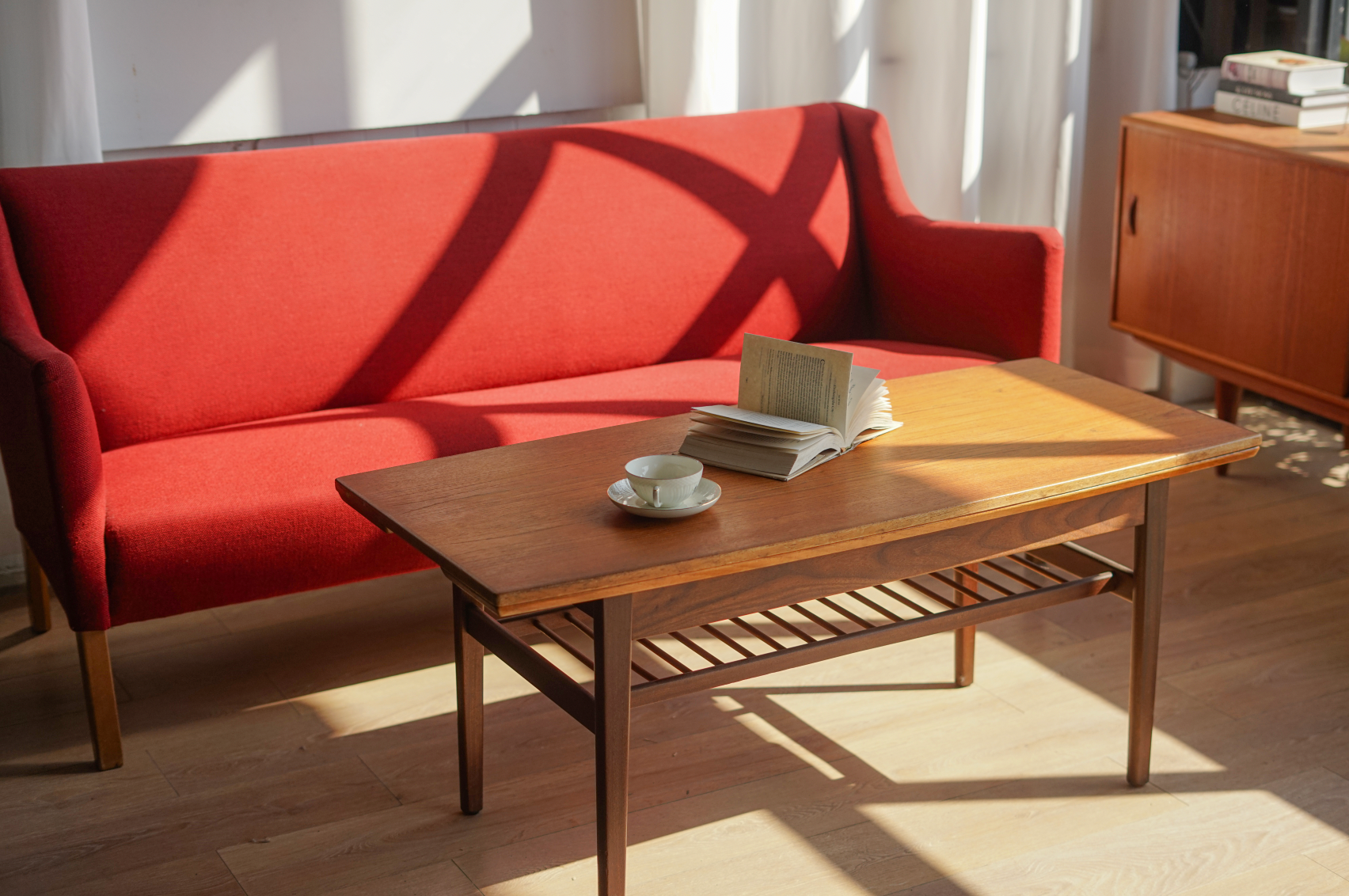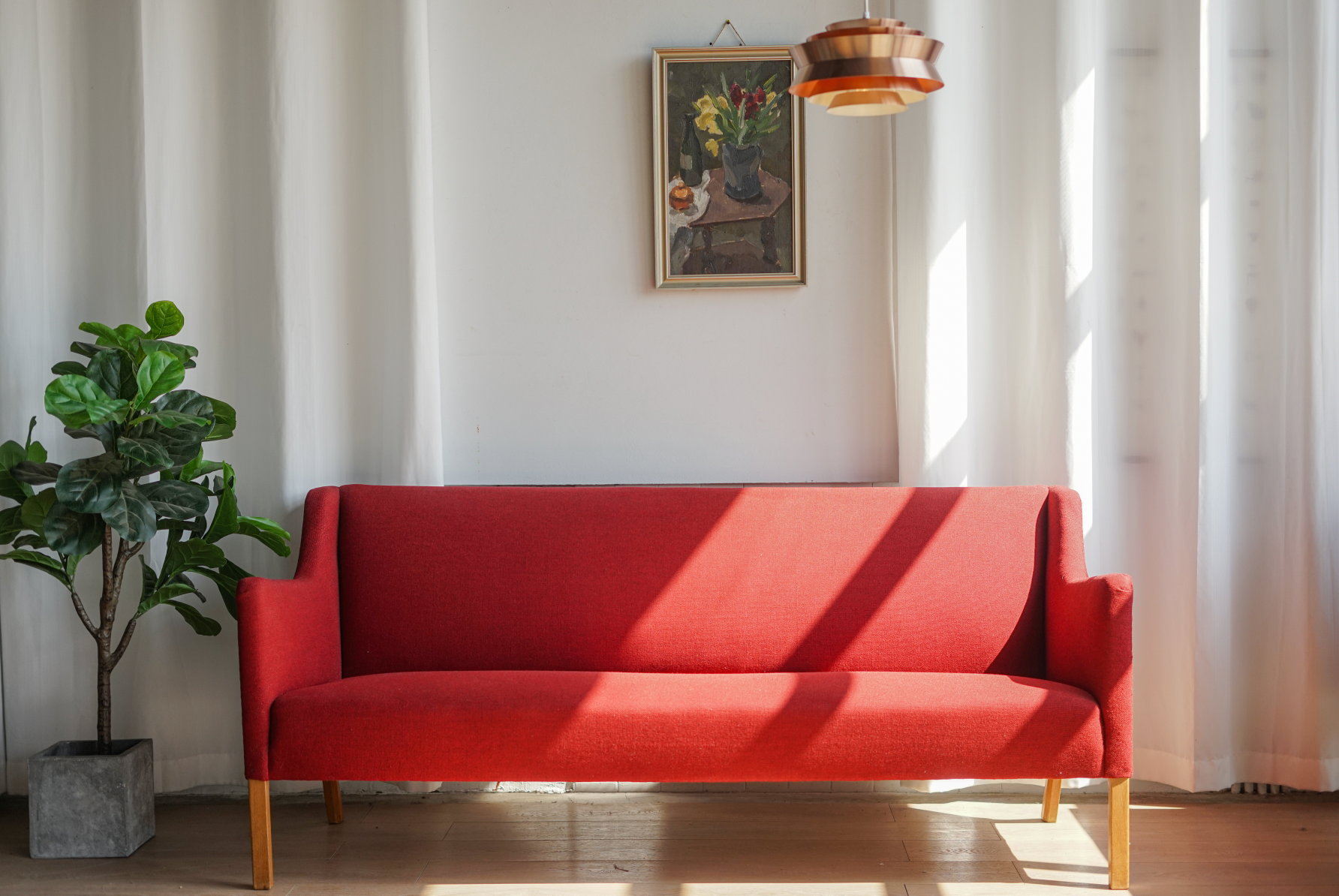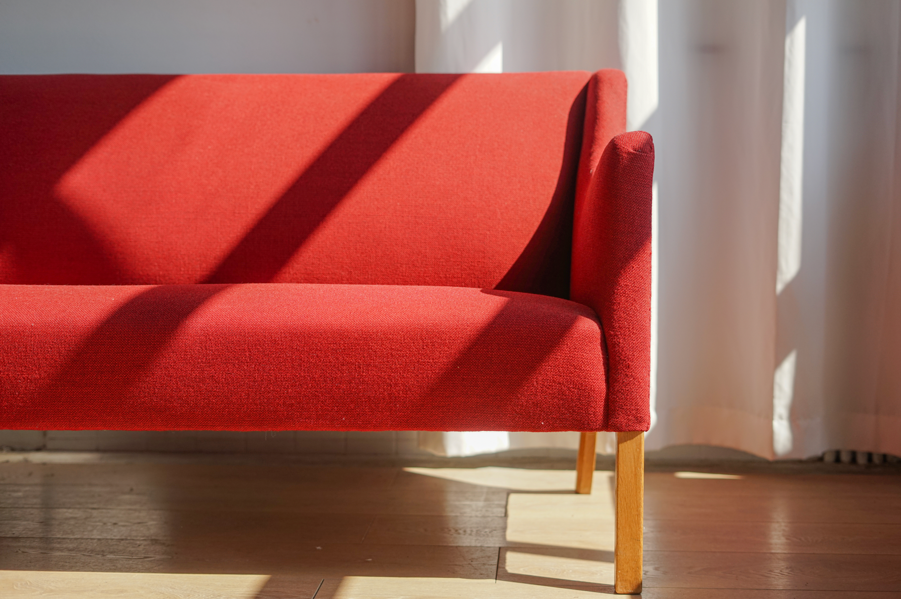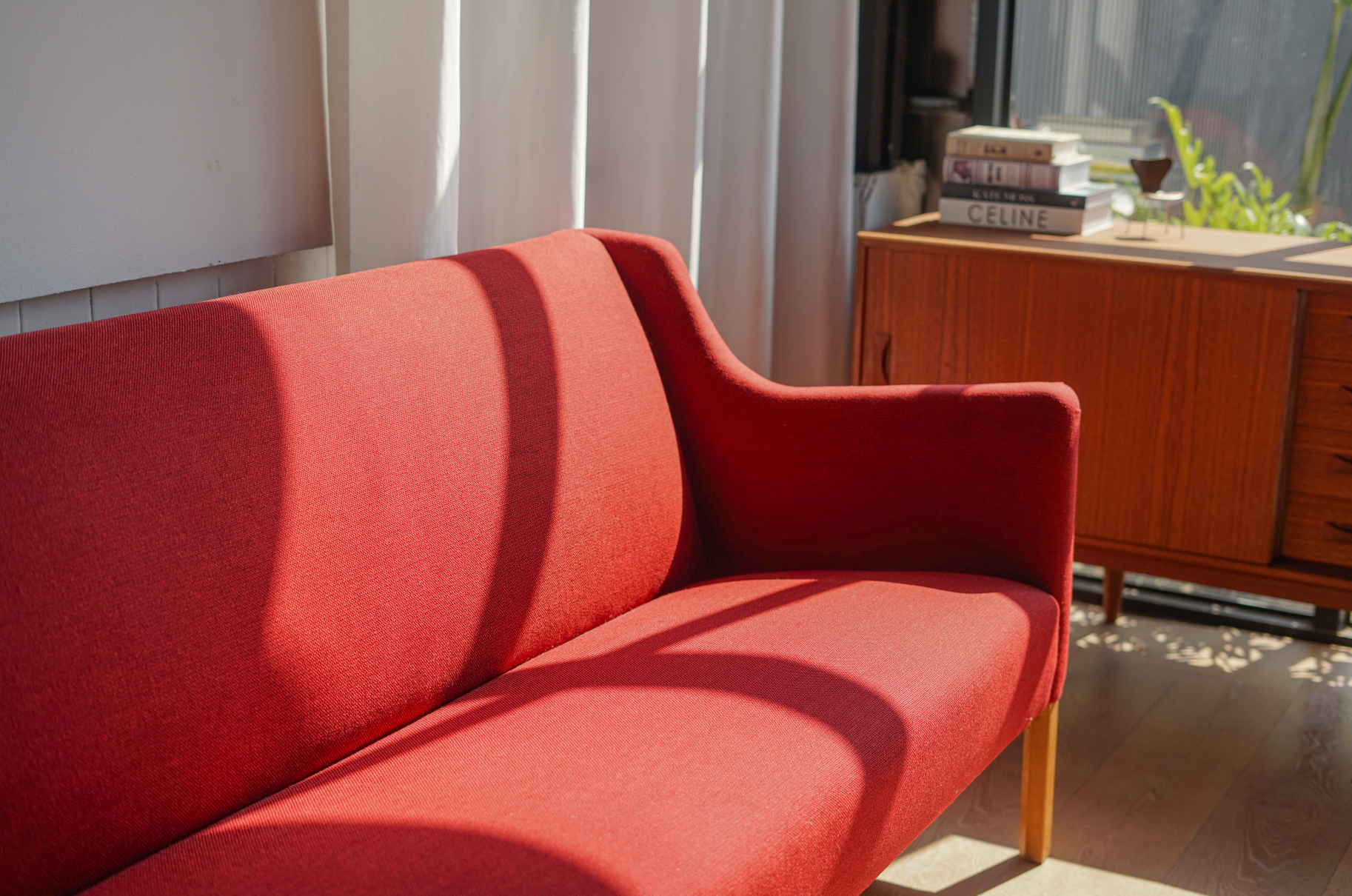 【丹麥 紅色 布面 三人沙發】