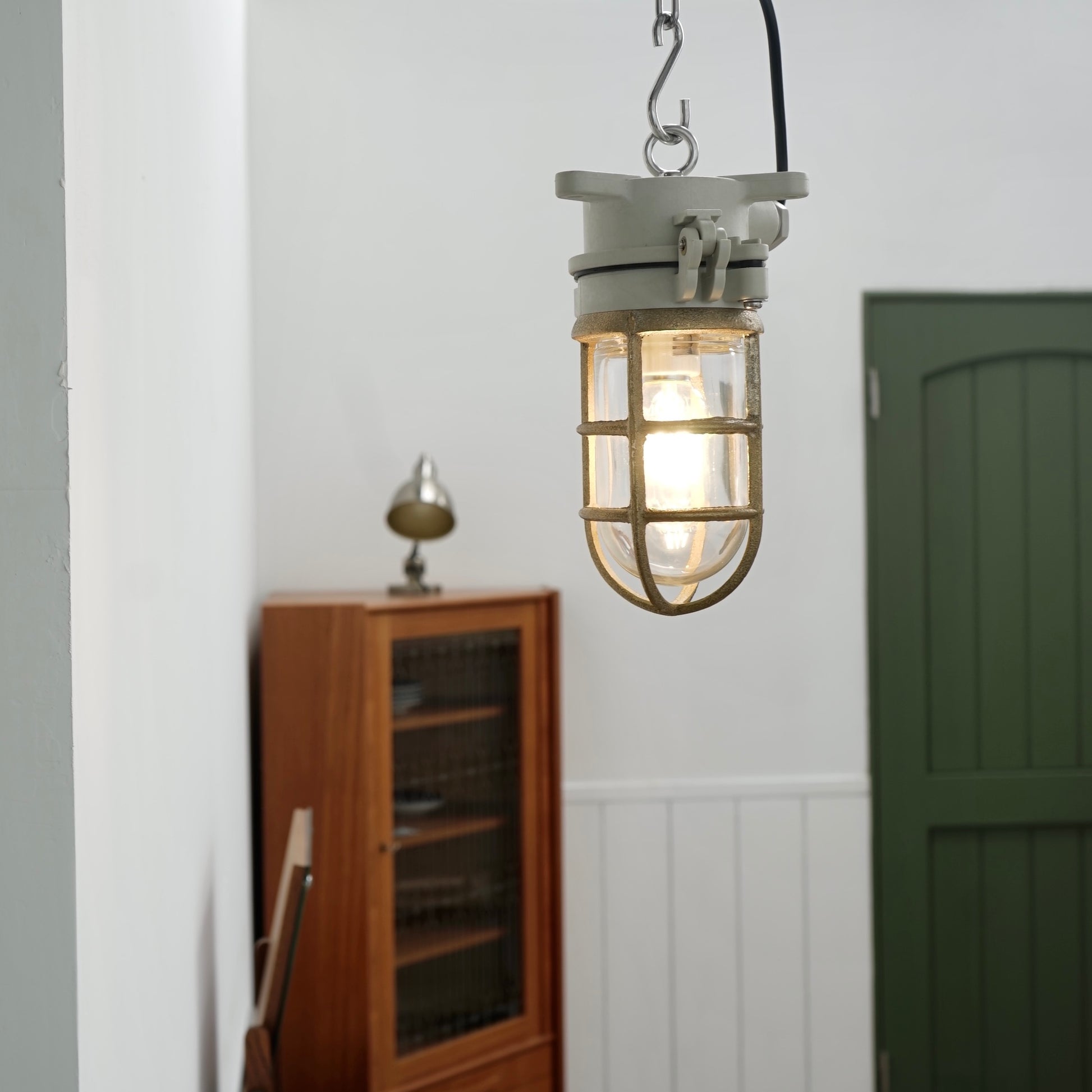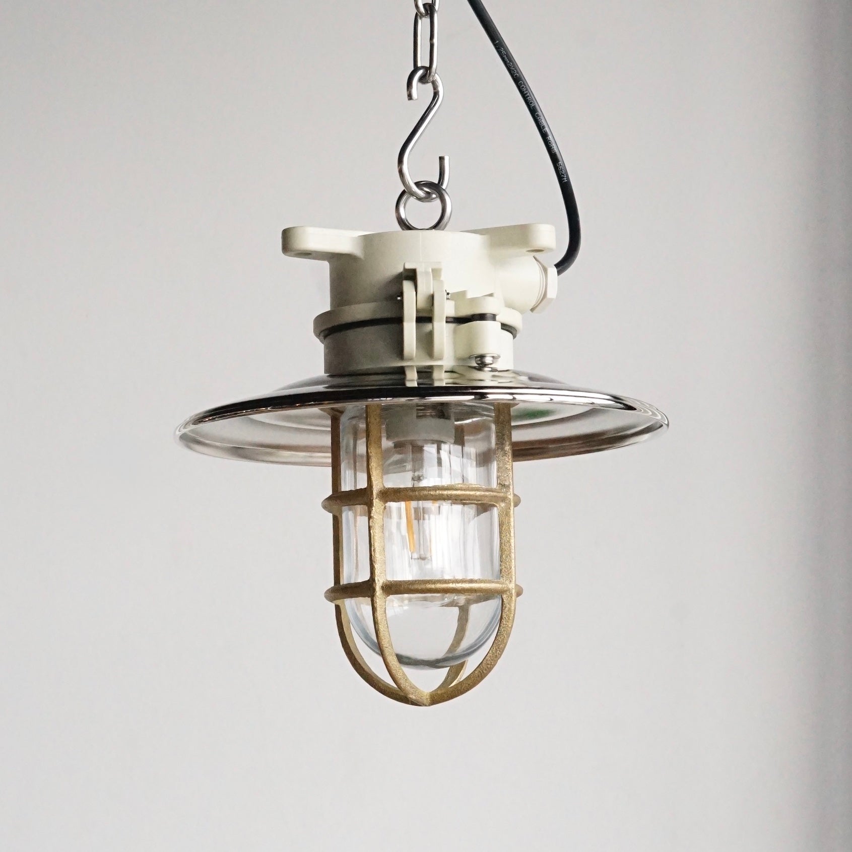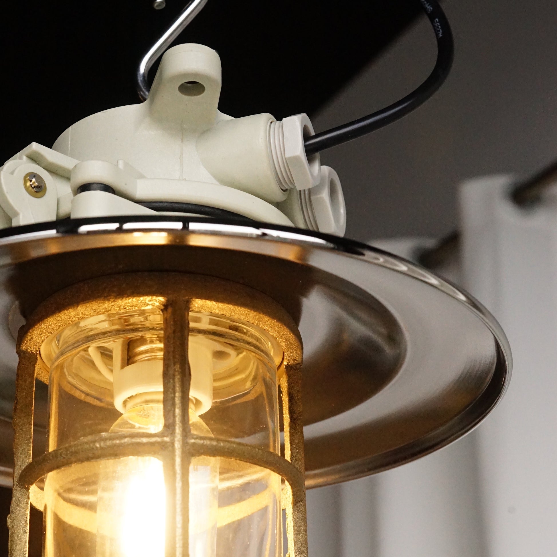 - 材質: 塑鋼本體、玻璃罩、銅燈網、金屬燈罩