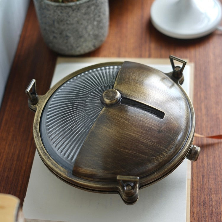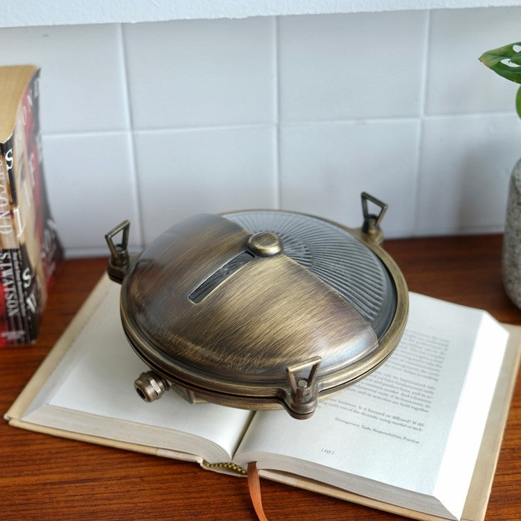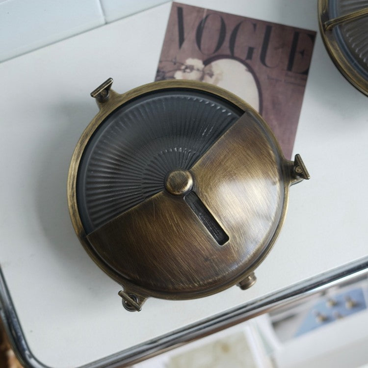 主體為黃銅壓鑄製成,搭配玻璃燈罩,展現復古實用質感,黃銅表面仿舊處理,適合工業風、北歐風、古典風搭配裝飾使用。