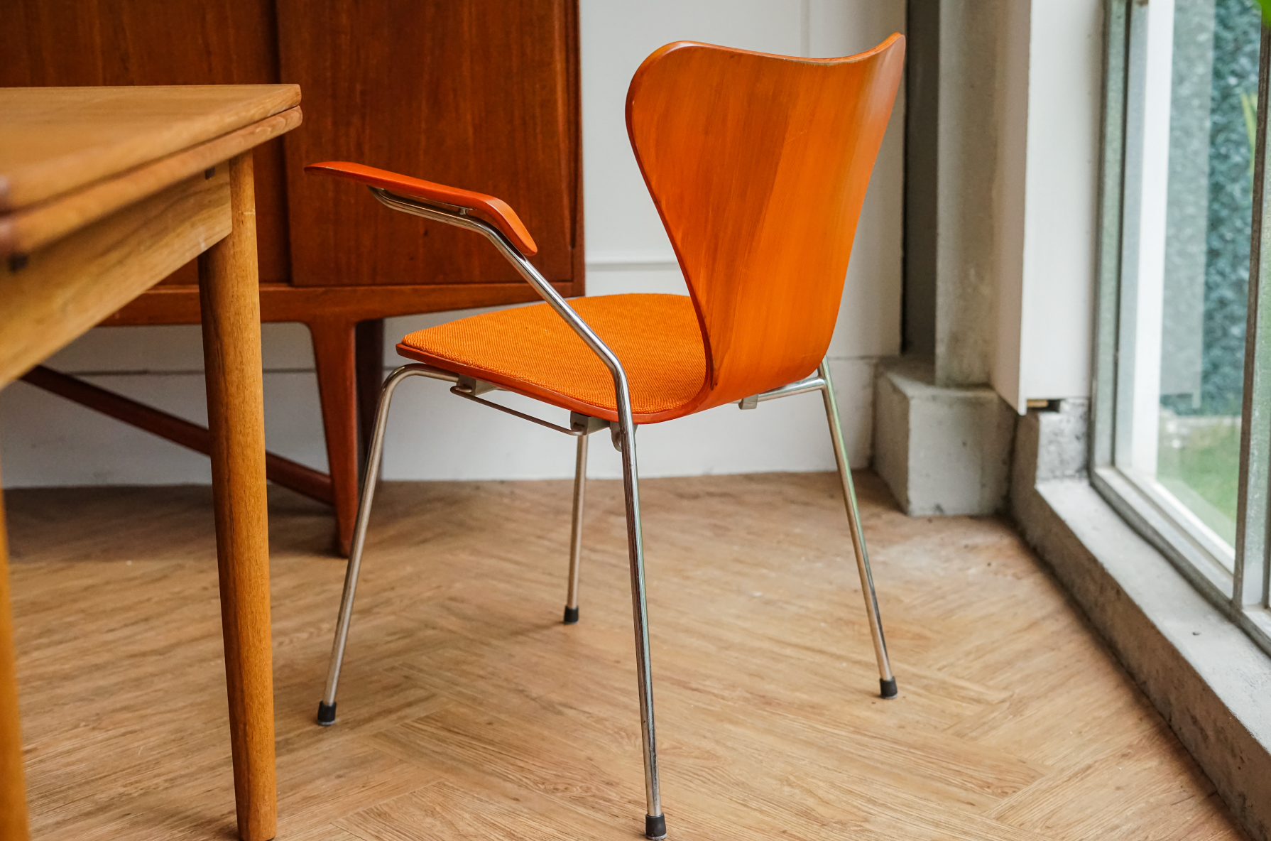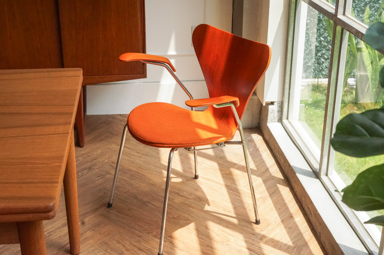 Arne Jacobsen Model 3207 橙色坐墊 扶手椅