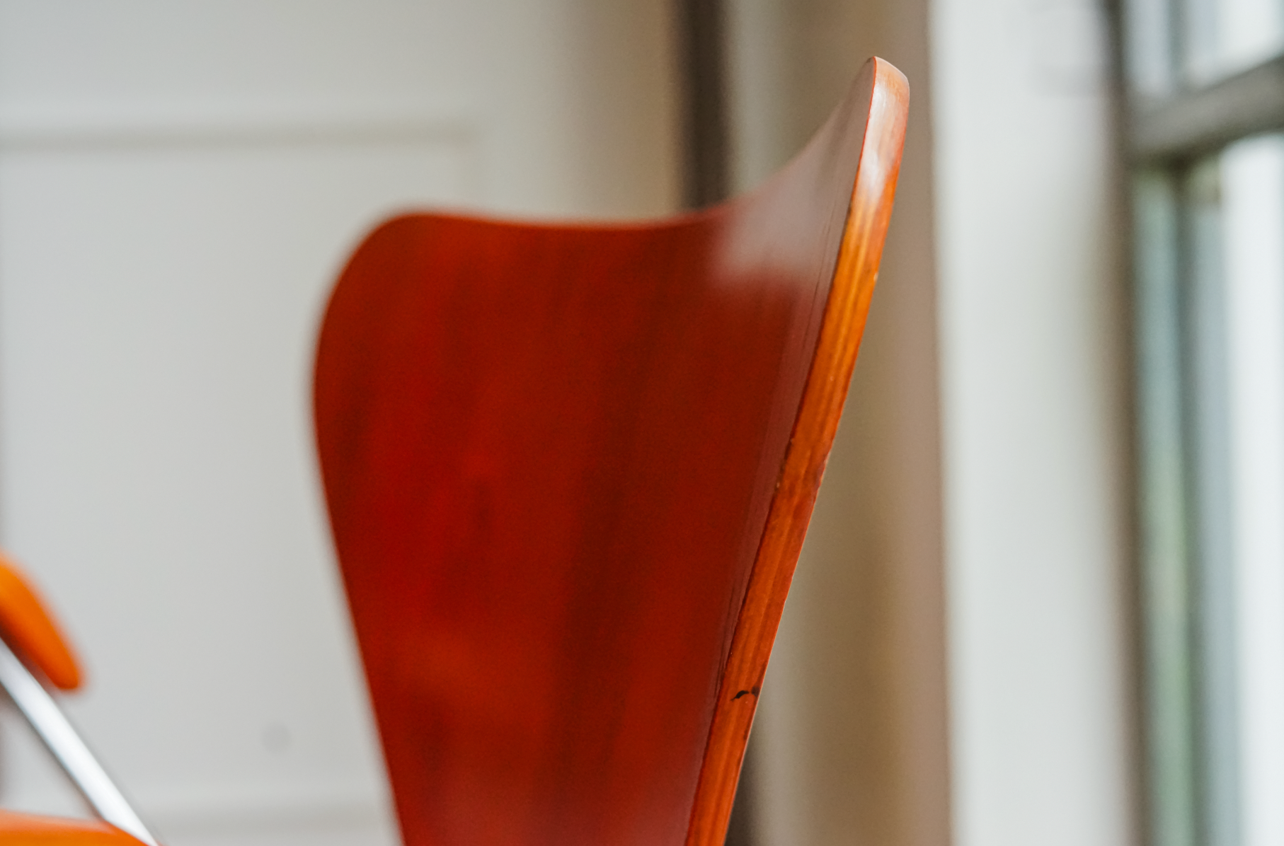 身為丹麥設計黃金年代的四大設計師之一,Arne Jacobsen的作品各個都是經典之作。Arne Jacobsen受Eames夫婦在曲木夾板技術上的啟發,將他在1952年所設計的三腳Ant Chair 加以改良,材質上單純只使用曲木夾板搭配細長金屬椅腳,簡潔且恰到好處的弧線外型,絲毫沒有多餘的元素,整體平衡且協調,也因此能更好地與各種室內風格搭配。即使過了半個世紀仍受現代丹麥迷們的喜愛。至今,Series 7 Chair仍持續由Fritz Hansen量產製造,暢銷全球。