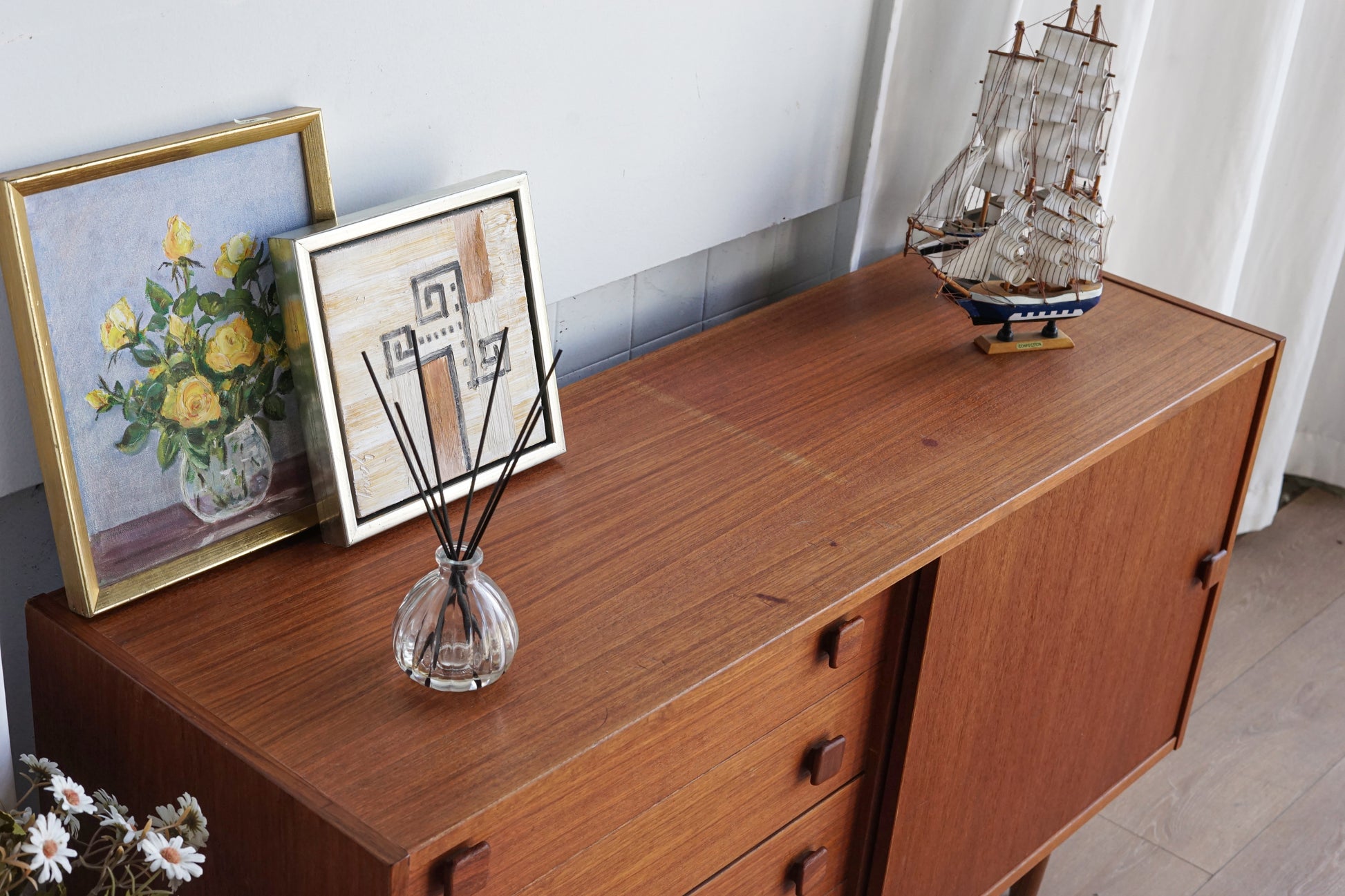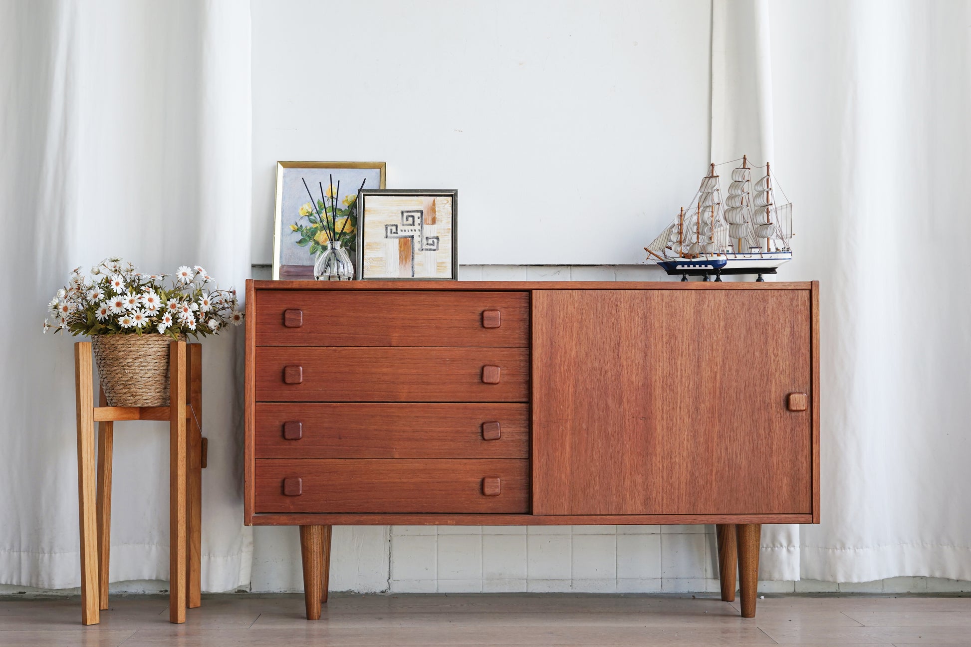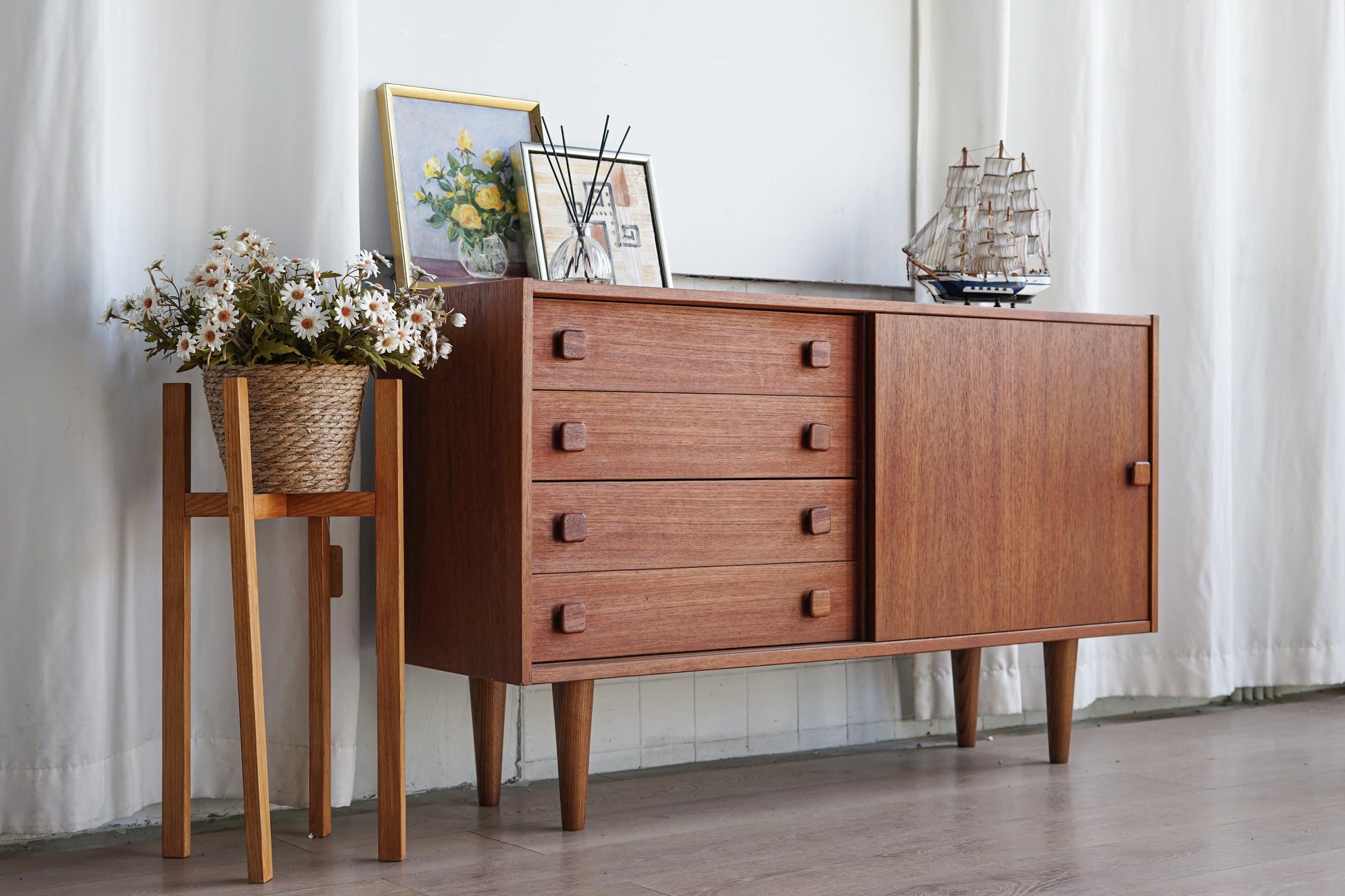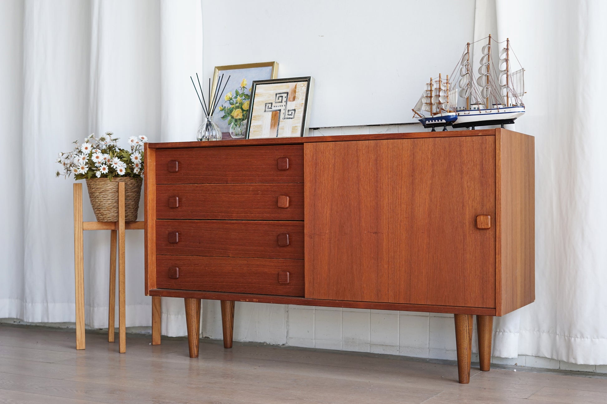 以簡約且具有北歐風格的設計而備受喜愛,結合了抽屜與推拉門的雙重收納功能,更使得這款收納櫃兼具美觀與實用性,其幾何雕刻的把手細節增添了設計的趣味性,而柚木自然的紋理和溫潤的光澤,使每一件櫥櫃都如同獨一無二的藝術品,無論是放置在玄關、客廳,還是臥室,都能輕鬆融入各種室內風格,不只是家具,更是能與家庭時光共同成長的經典之作,這款中型櫃不僅滿足日常收納需求,更為空間帶來溫馨和優雅。