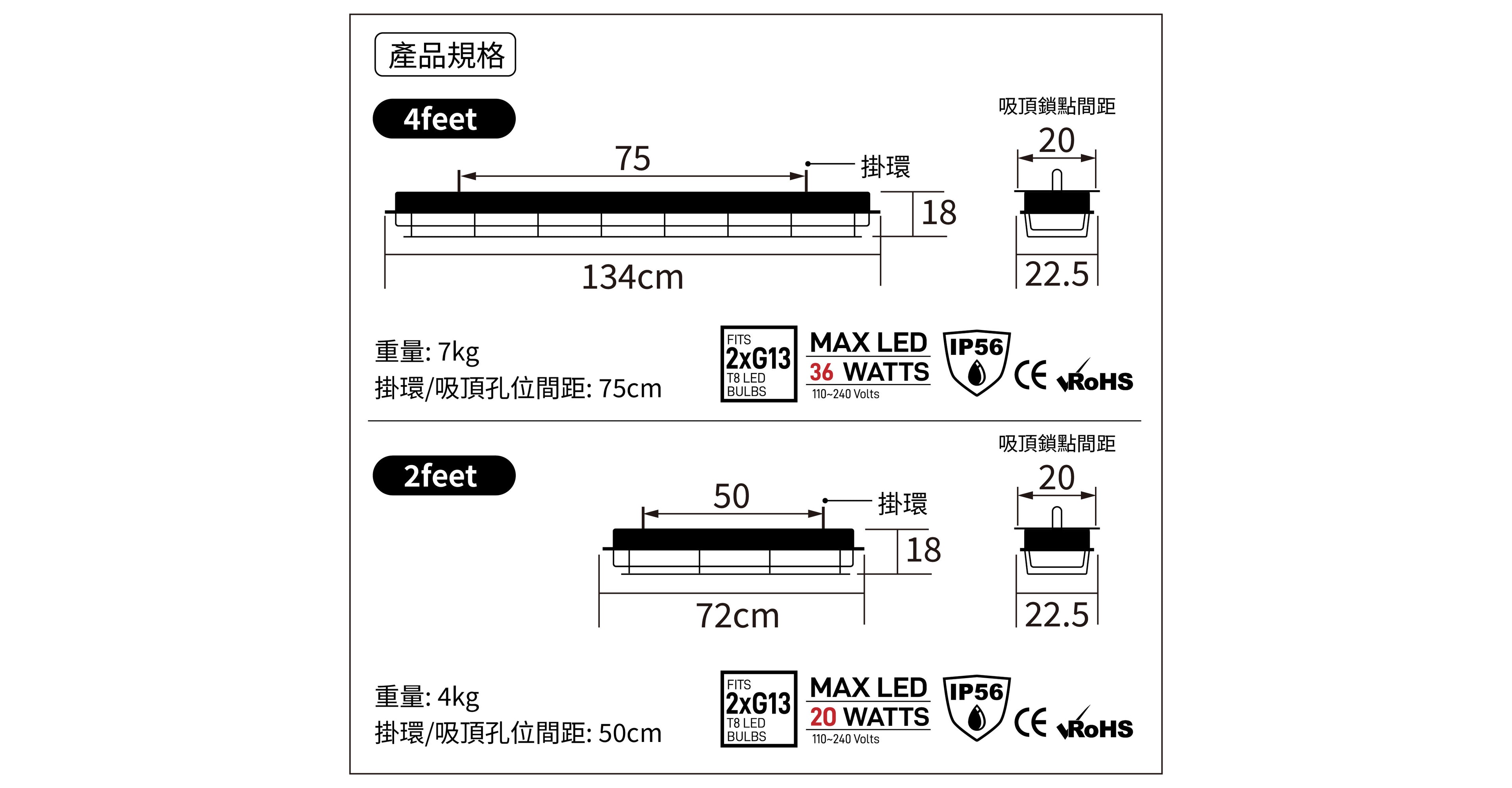 台灣製造、CE認證、IP56防水功能、德國Bayer壓克力、外銷歐美日。
