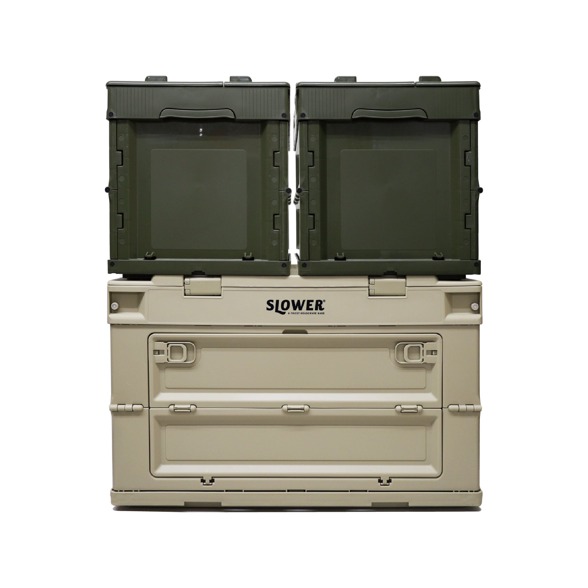 ● 層疊組合式設計:可與系列其他尺寸收納箱混搭排放,輕巧不占空間。