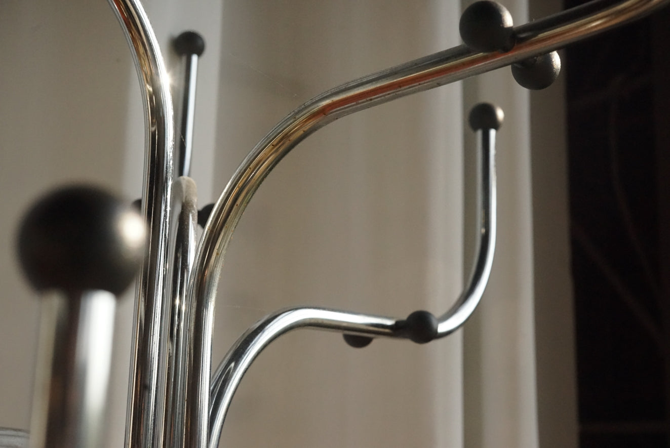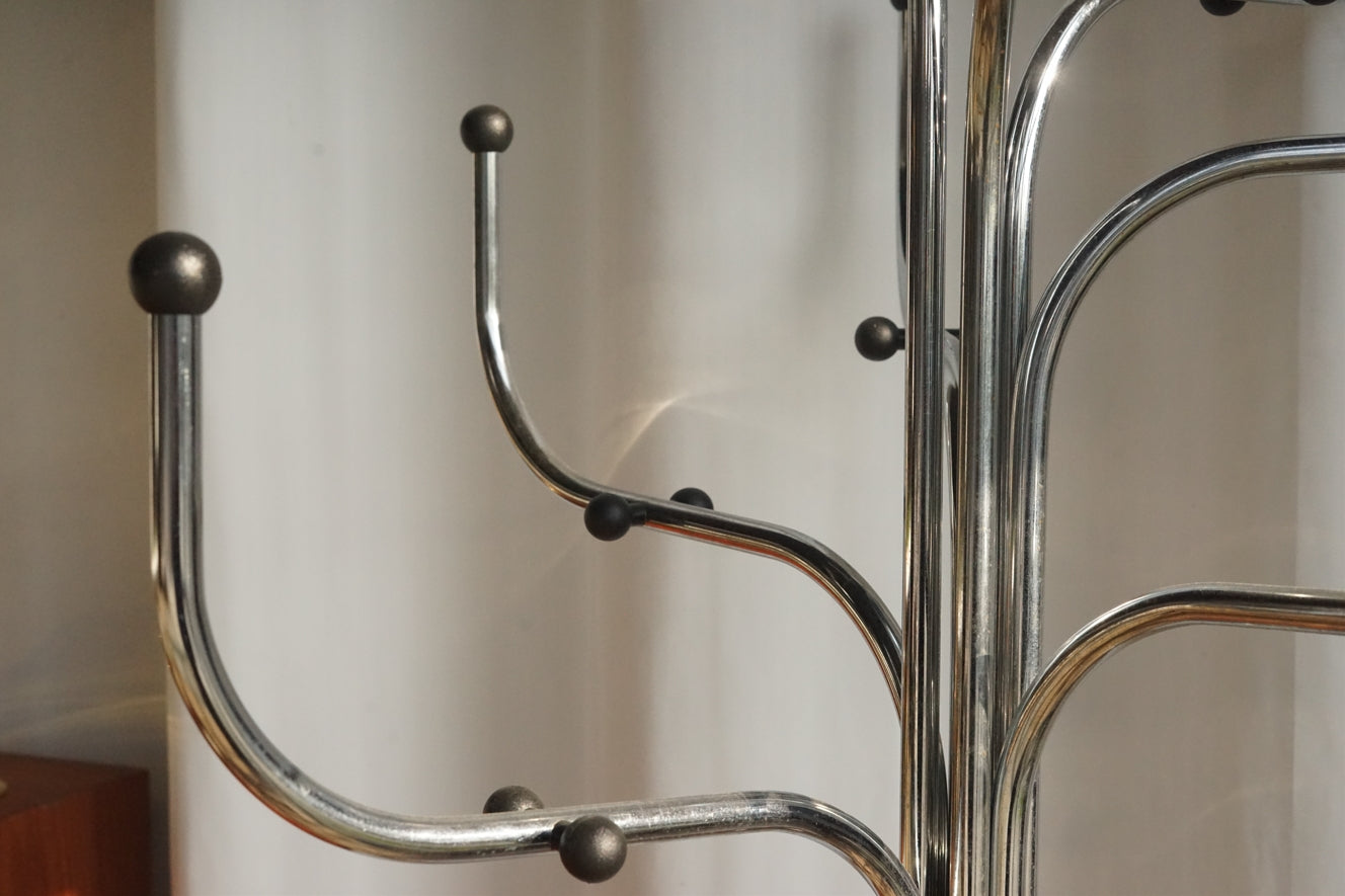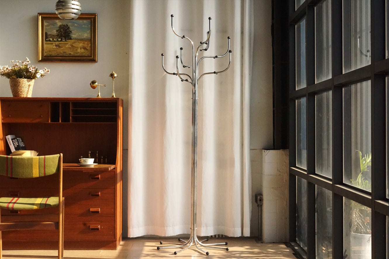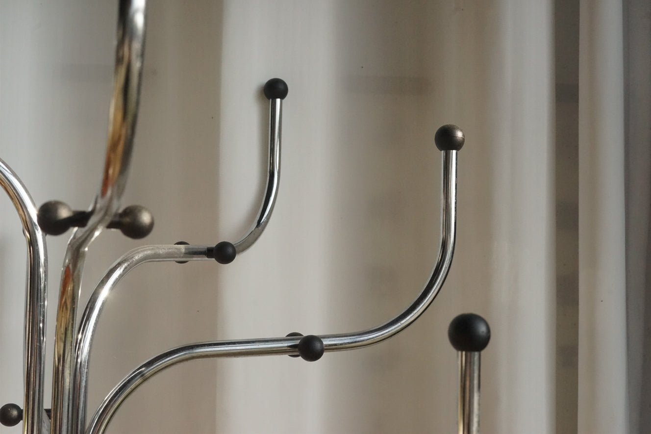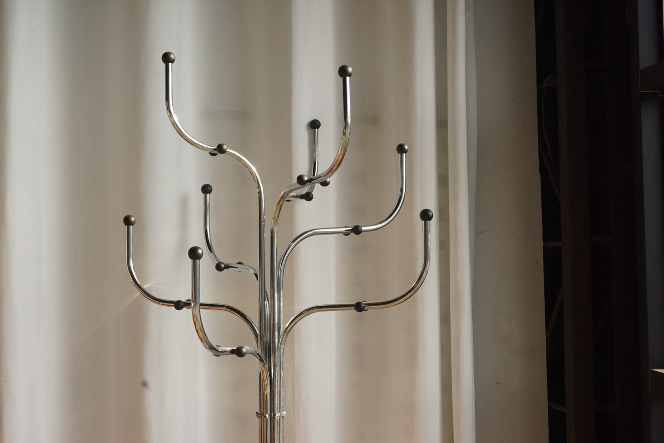 Coat Tree 的流線型結構由鋼製成,表面處理細膩光滑,簡潔卻極富雕塑感。多個對稱排列的分叉設計,不僅提供豐富的掛鉤位置,也展現了優雅的幾何美感。 -