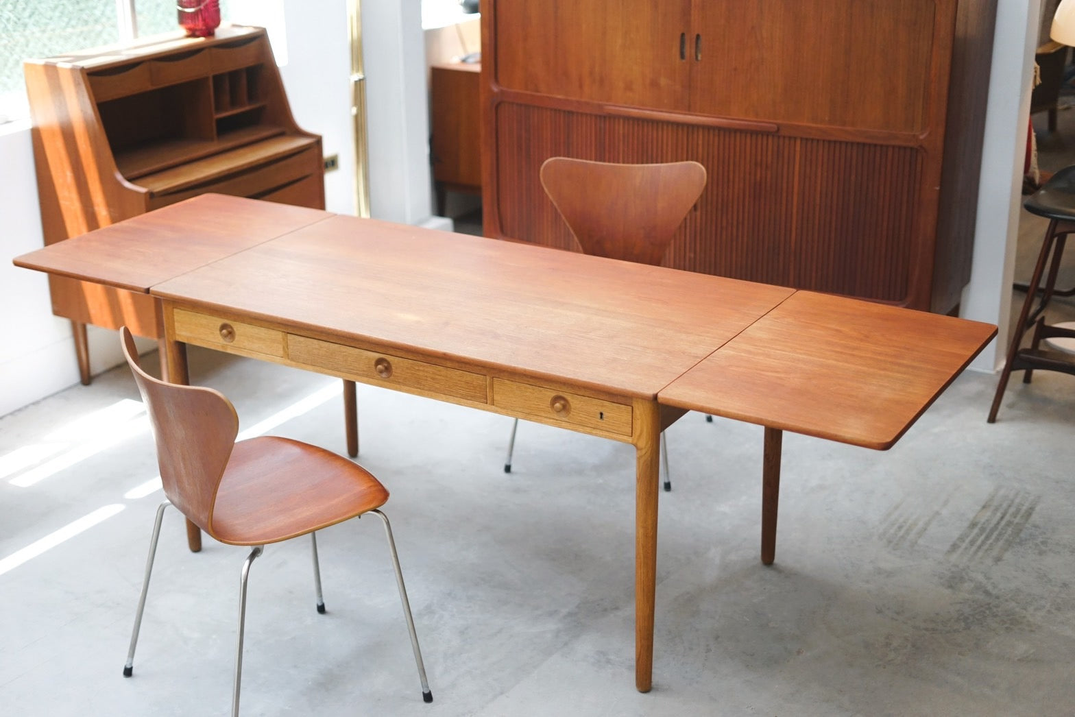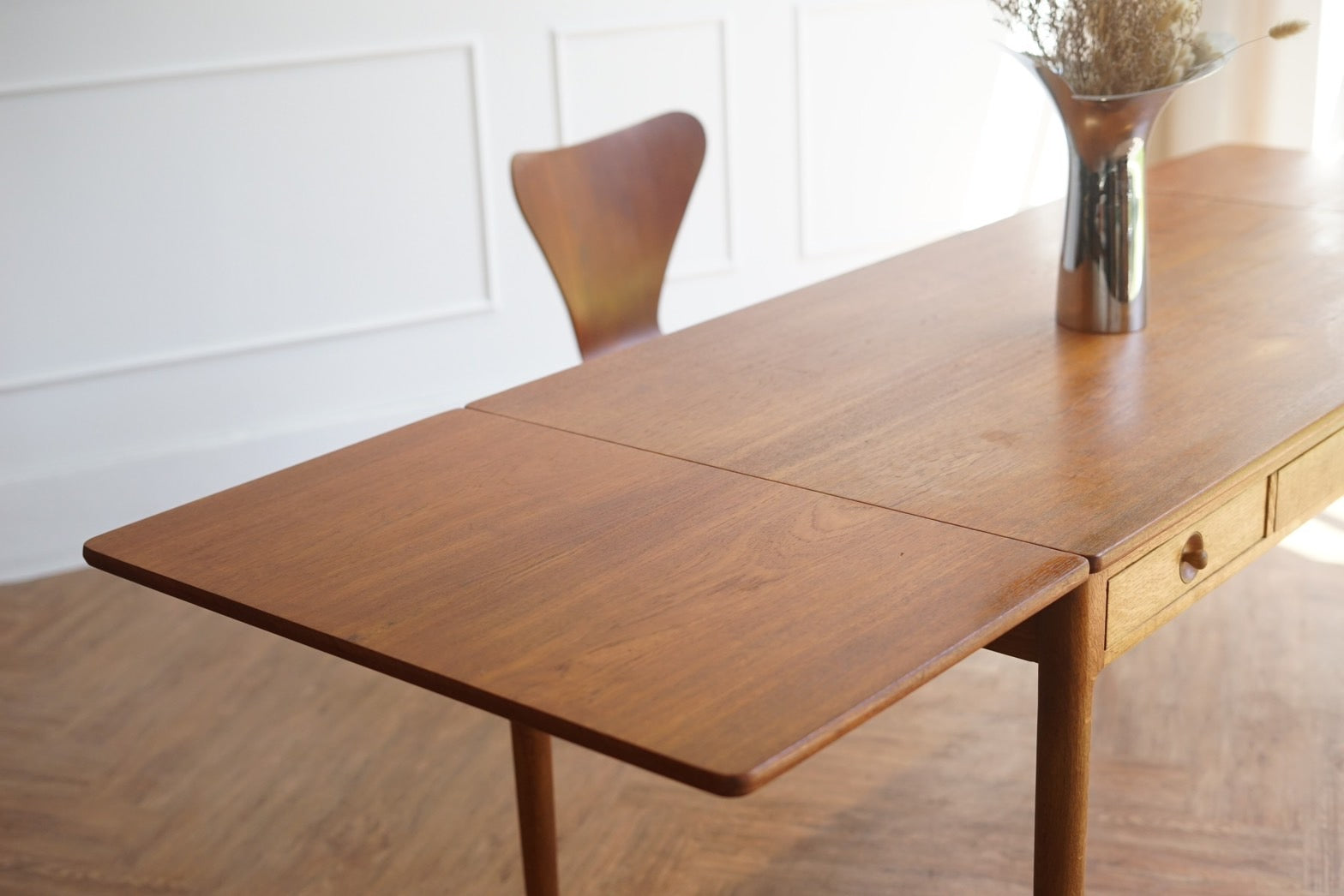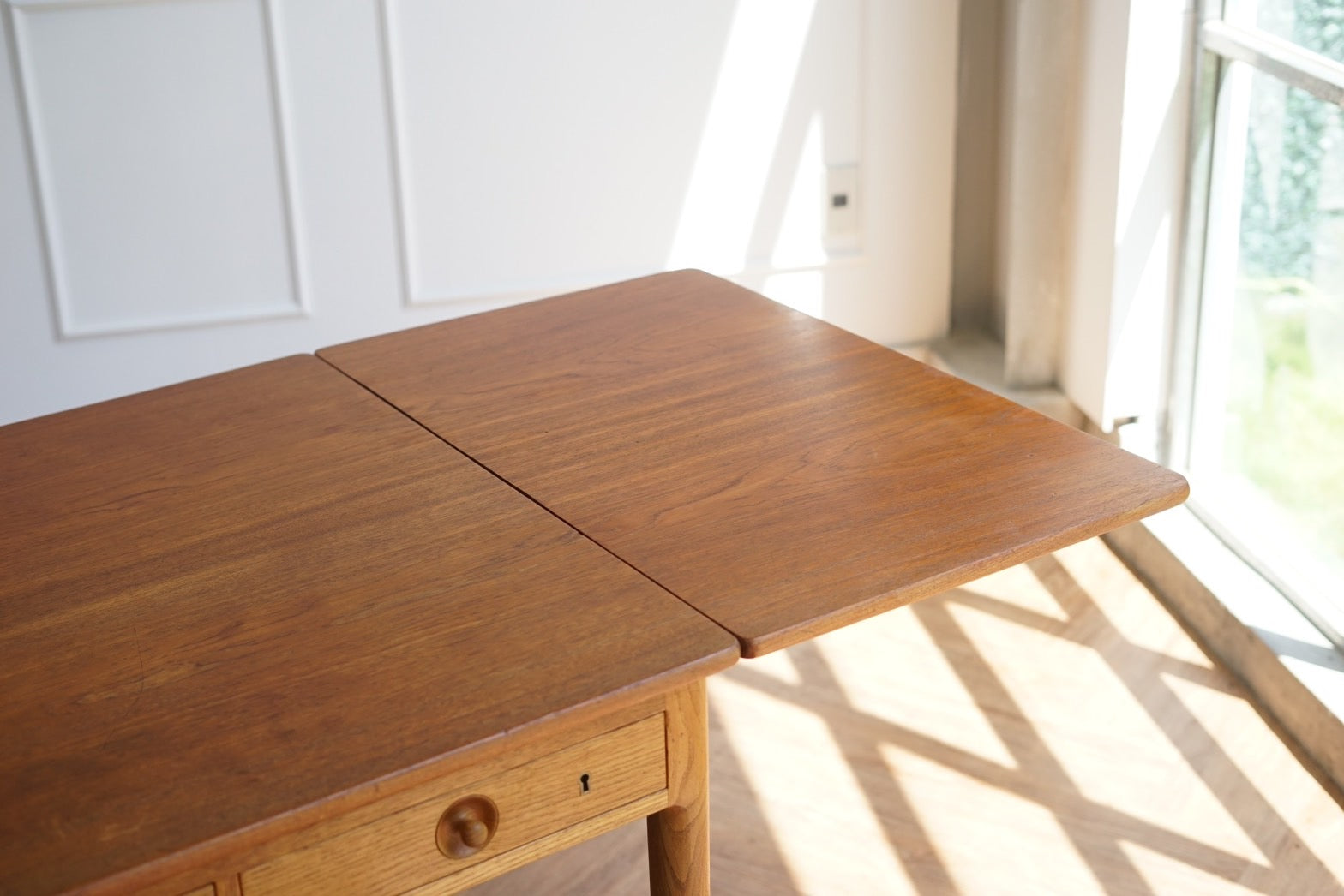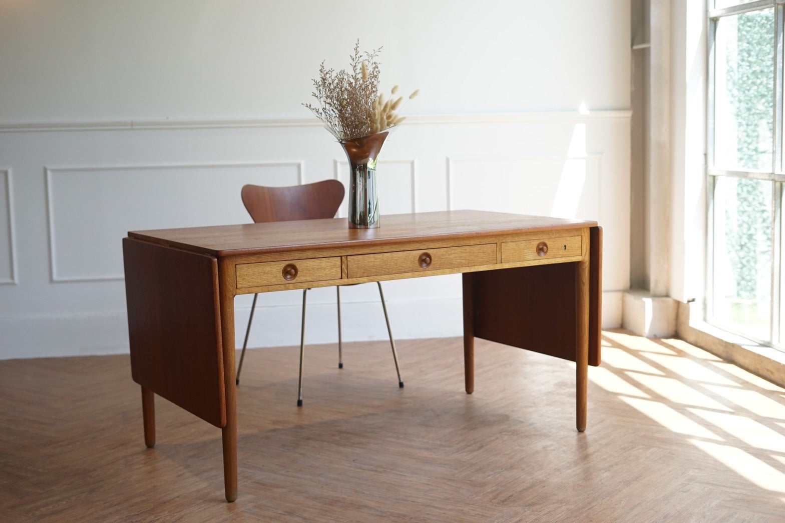 AT-305從結構乃至外觀都是使用堅硬的橡木,且抽屜完全以實木製作,非常地兼顧耐用。桌面狀況完整,兩側延伸桌板與延伸機構也功能正常。抽屜的把手是AT-305的最大亮點,在現代化械尚未出現的50年代,能製作出如此精細的把手非常需要工匠的耐心與技巧,更是這張書桌的精髓所在。