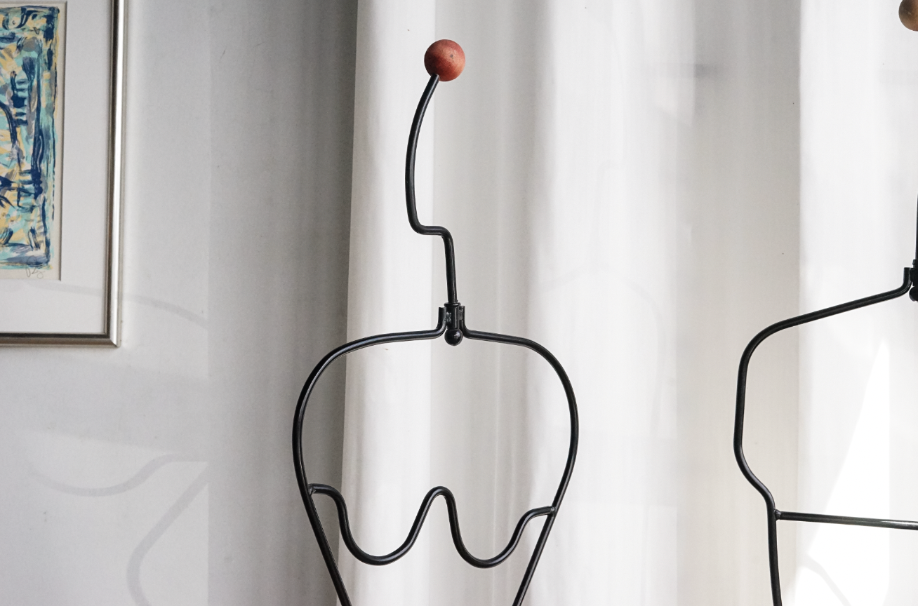 由瑞典設計師 Ehlén Johansson 為 IKEA 設計,這對來自 1980–1989 年間的經典作品,以簡約線條勾勒出男女性身形,充滿 80 年代幽默與功能兼具的北歐美學,結構輕盈卻穩固,除了可作為吊掛外套、帽子、圍巾的實用傢俱外,也是一件極具裝飾性的空間裝置,每一筆彎曲的輪廓都充滿設計感,無需多餘點綴,就能為空間增添個性與趣味。