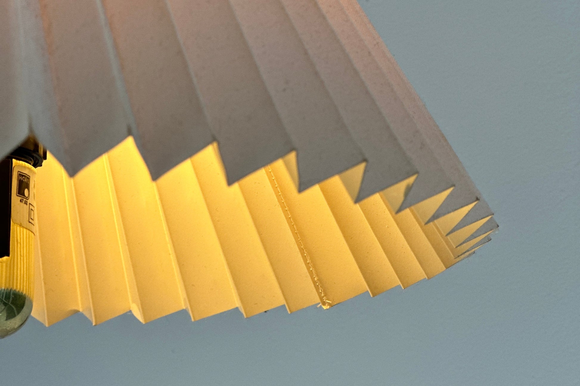 由黃銅材質形塑的簡潔弧型線條相當具有當代感,高雅的光澤質地柔美的身段,搭上手工百褶燈罩透出的柔和光感,本尊真是美到令人讚歎!