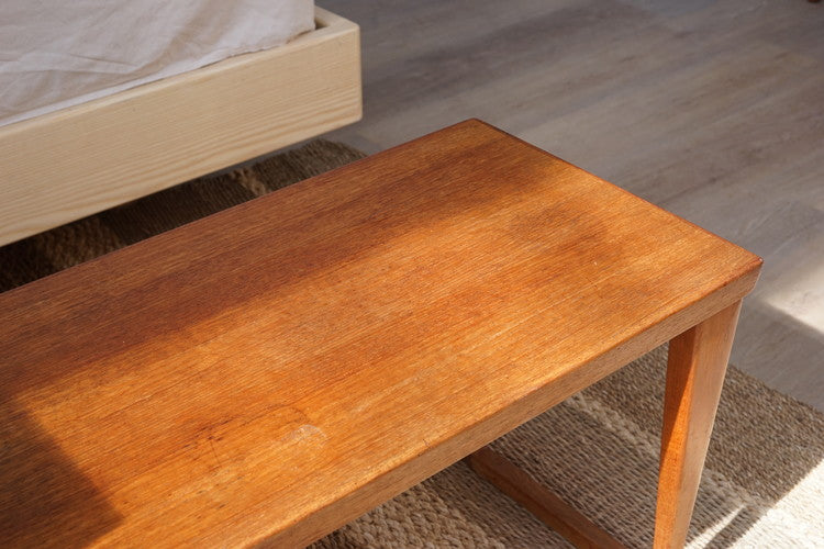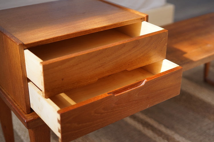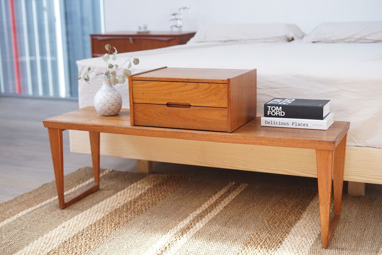 高挑的腳是Kai Kristiansen 的特色,打破世俗的標籤,設計出線條簡單、外觀輕盈的長凳,上面的櫃體可依照使用習慣調整位置,下方的空間亦可收納物品,可說是兼具美觀及實用性。稀有單品,狀況良好,錯過後悔!