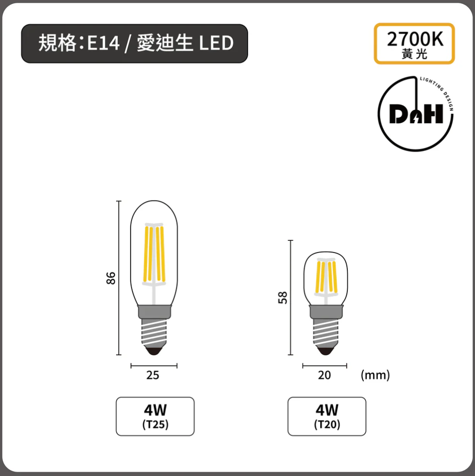 備註:照片使用 E14/玉米燈泡 LED 9W 黃光燈泡