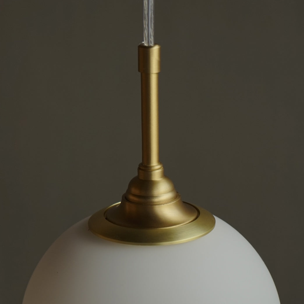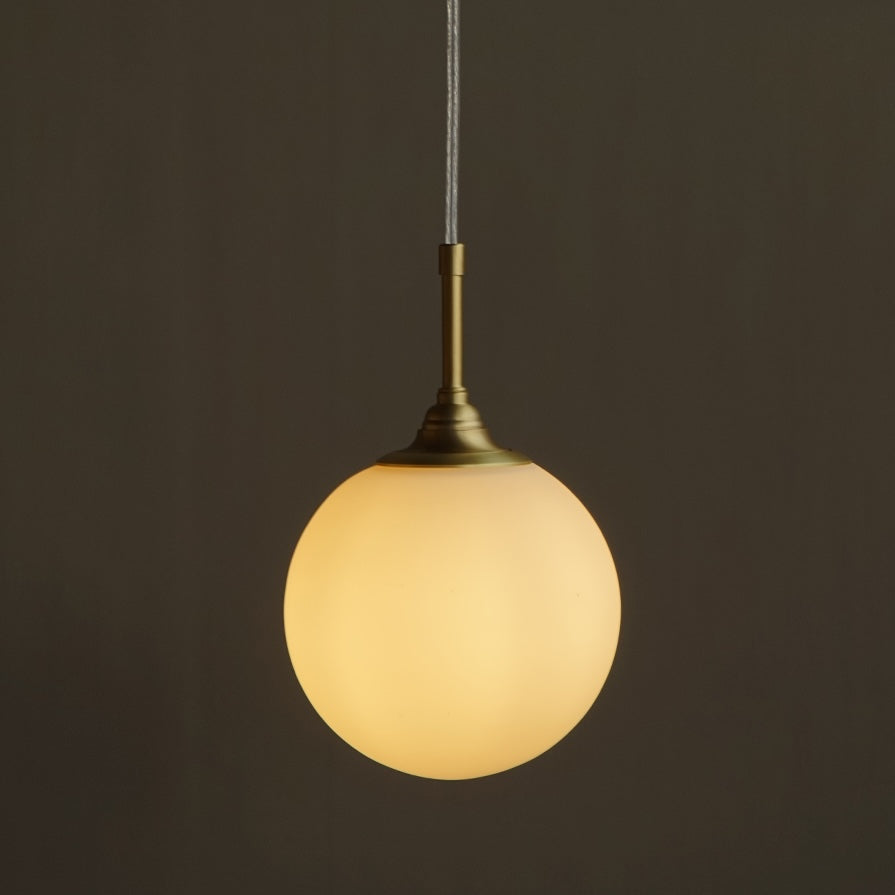 PURE 吊燈以小巧球體造型呈現簡潔線條,完美結合北歐極簡與復古雅緻風格,讓光線回歸最純粹的樣貌。黃銅燈頭搭配霧面玻璃燈罩,散發柔和溫潤的光線,讓閱讀角落、床頭或玄關空間都能充滿安定與舒適感。