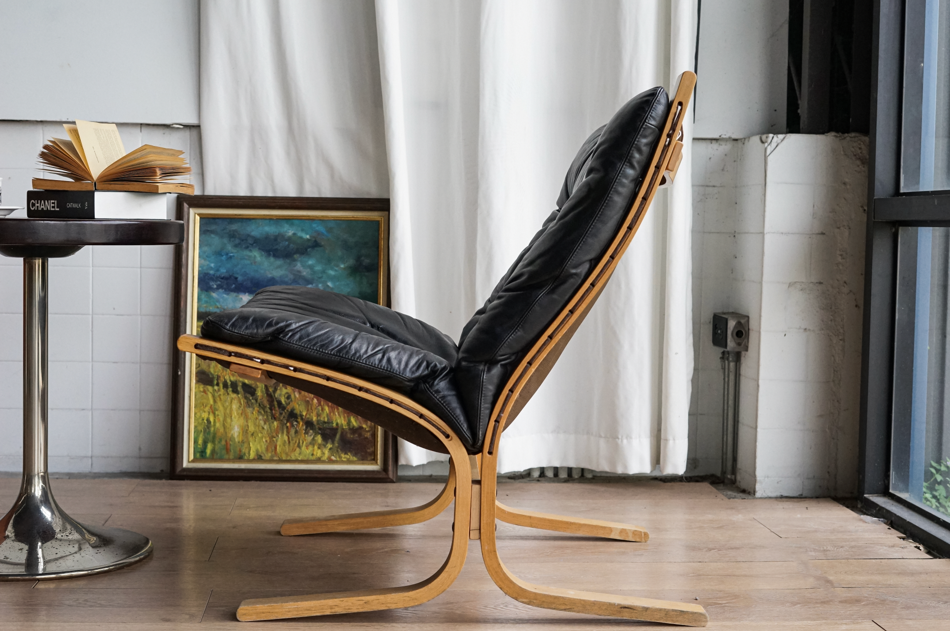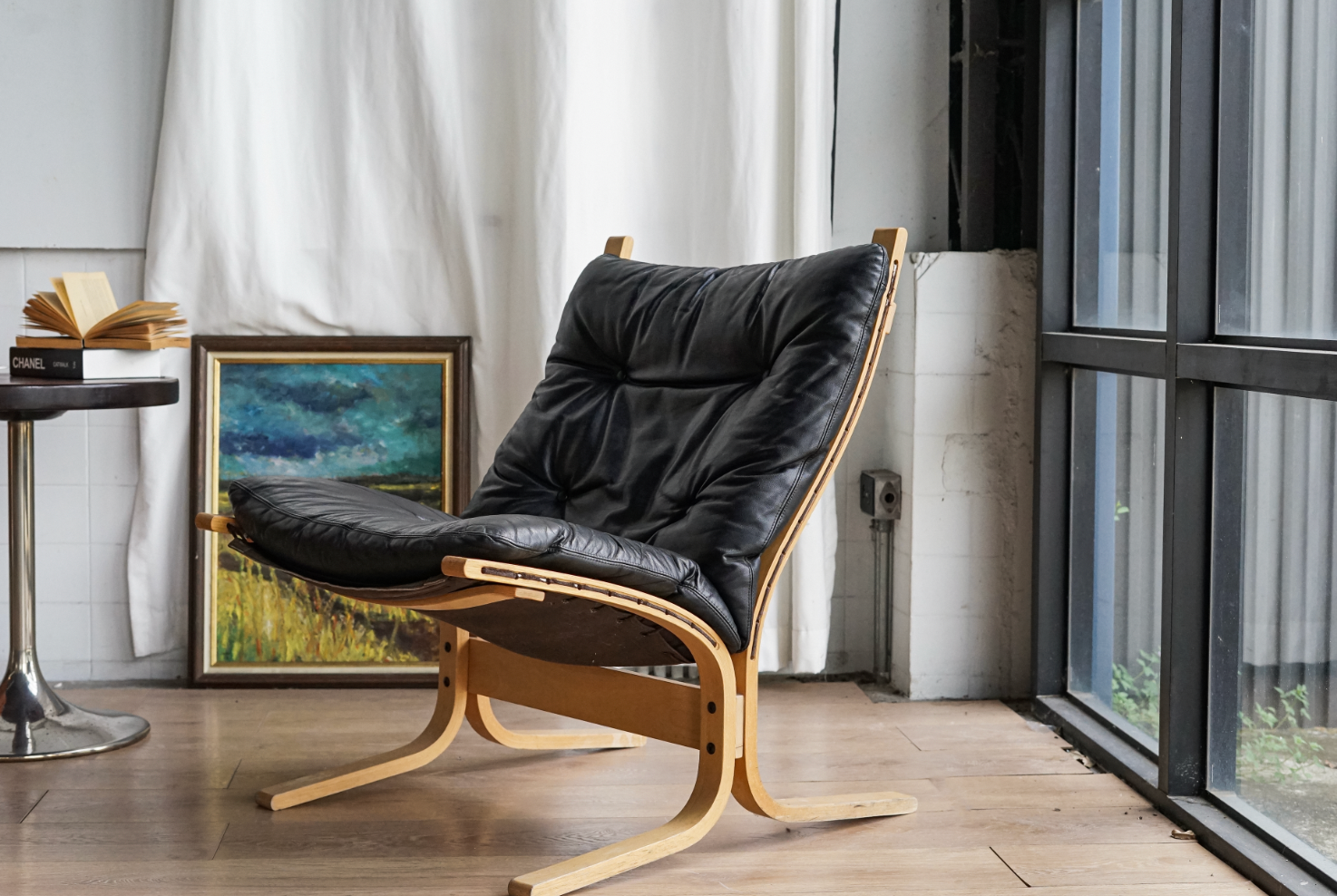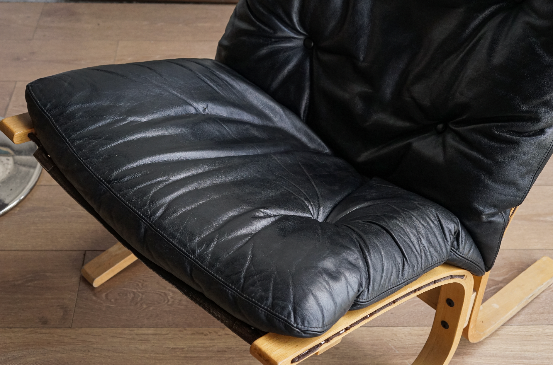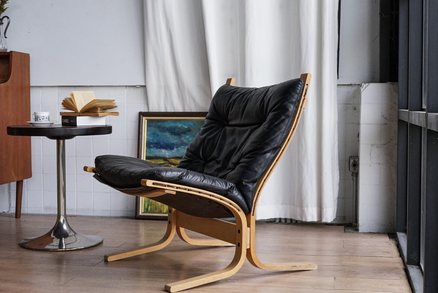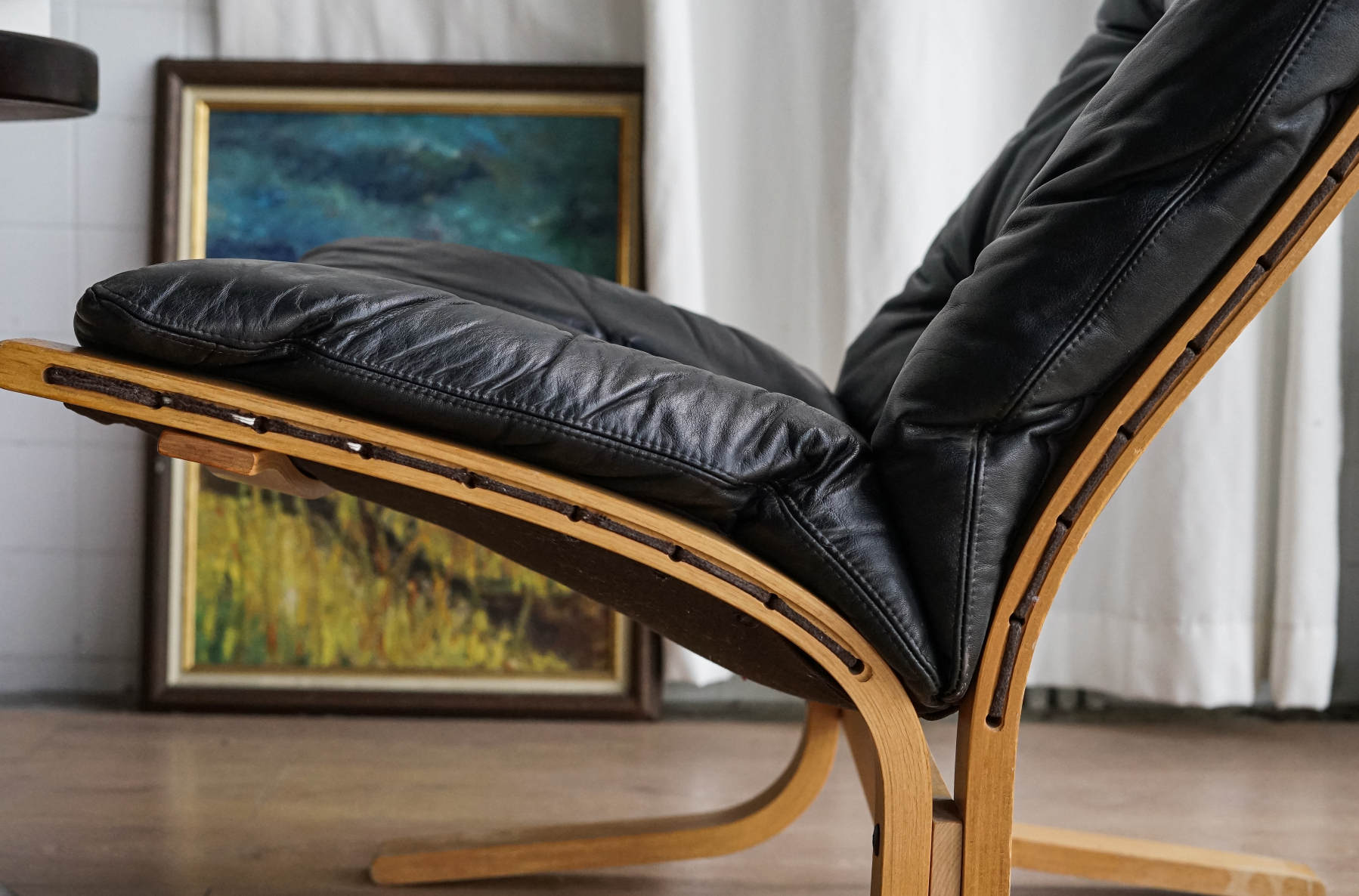 挪威設計代表作之一,擁有流暢優雅的椅架線條與極具彈性的曲木結構,搭配純黑皮革椅墊,柔軟包覆且支撐性佳。無論是閱讀、休憩或靜坐冥想,皆能提供良好承托與舒適體驗。