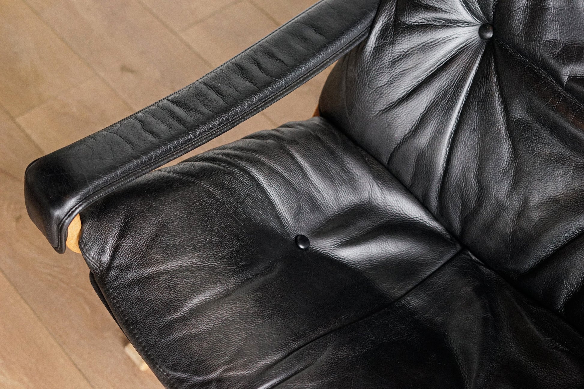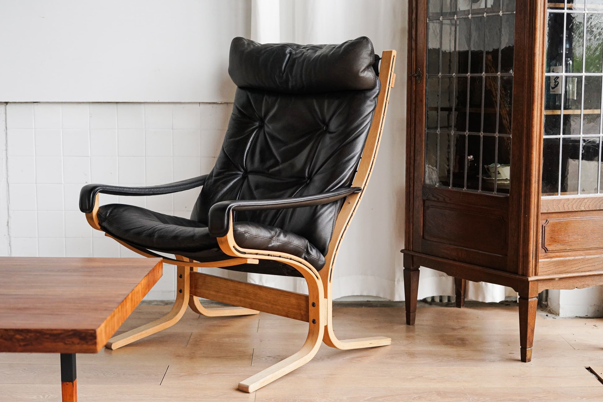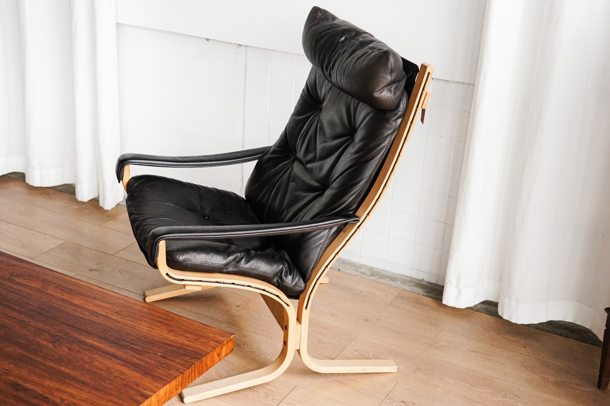 Siesta 黑色皮革 高背扶手休閒椅-2