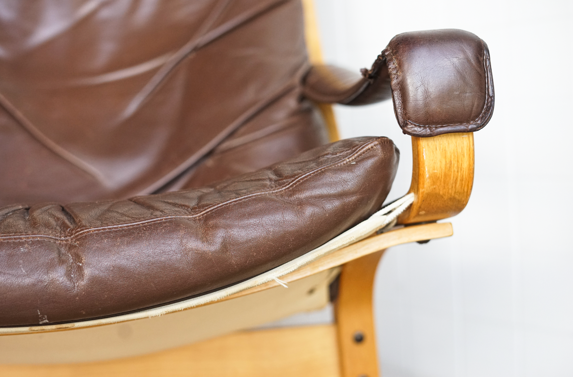 【 Siesta 棕色皮革 高背扶手休閒椅 】