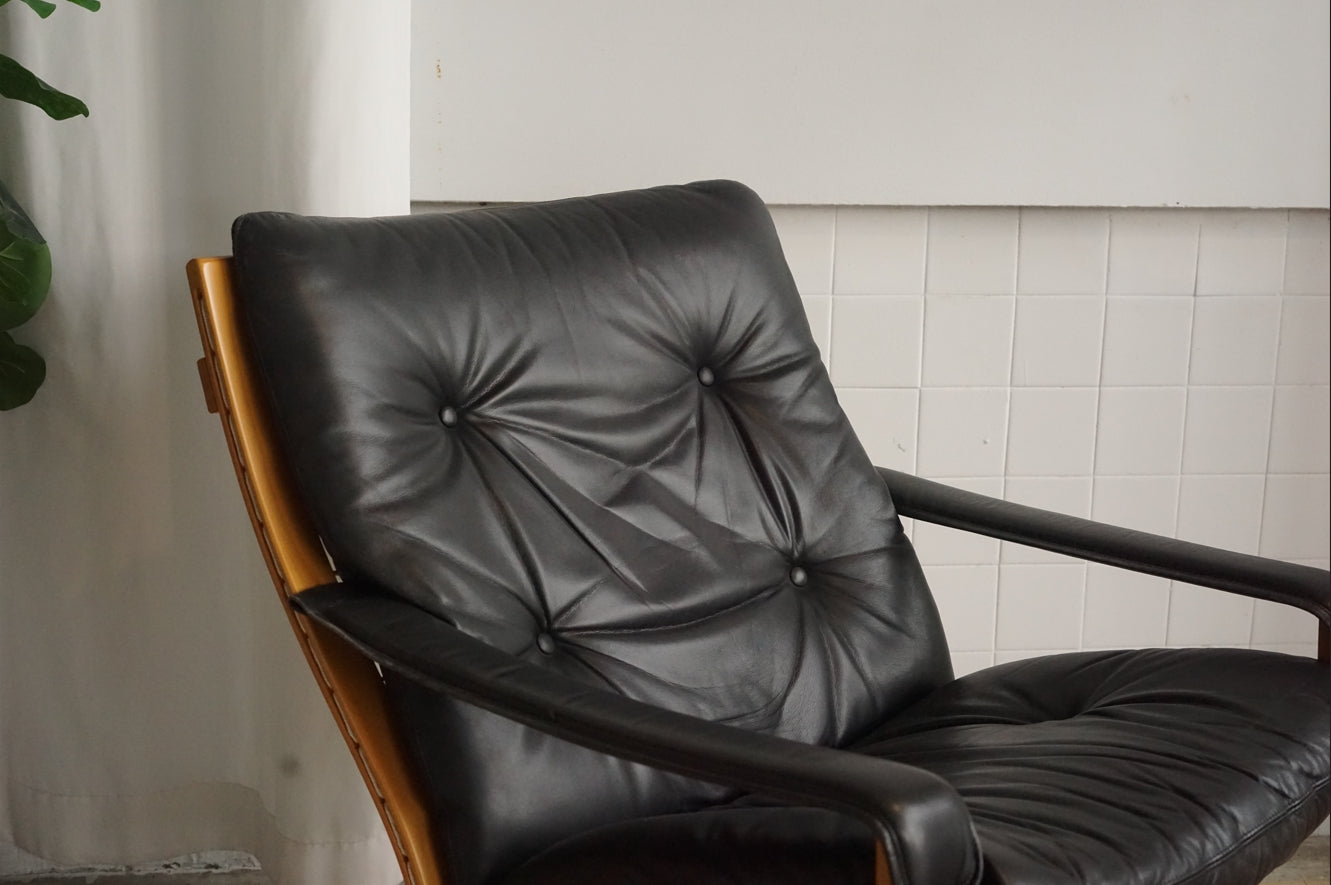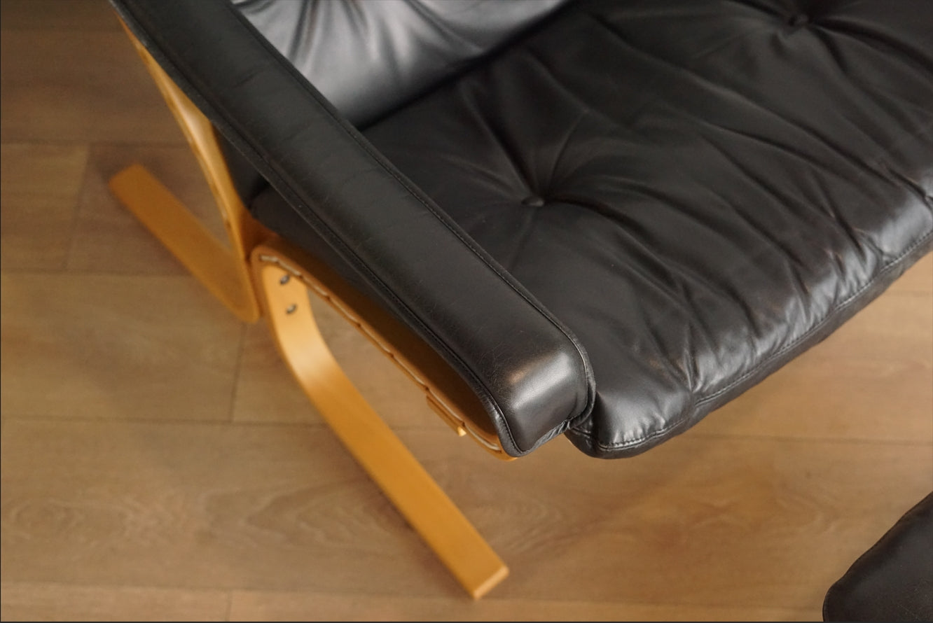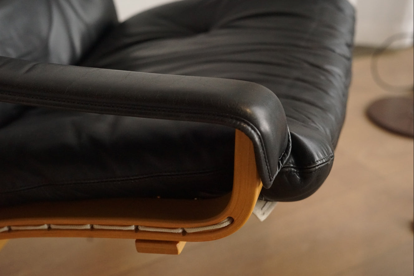 Siesta 黑色 真皮 低背扶手椅 (附腳凳)
