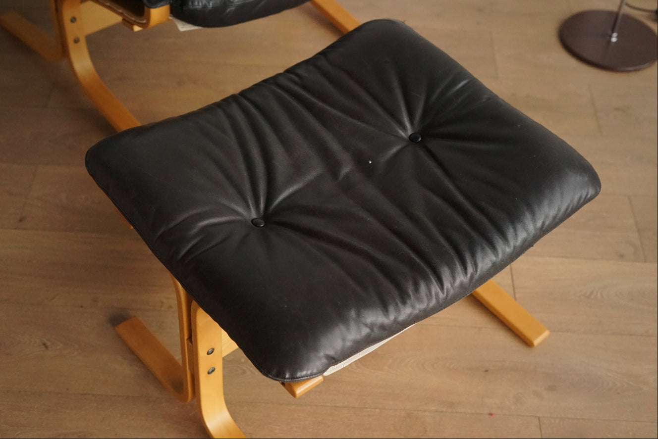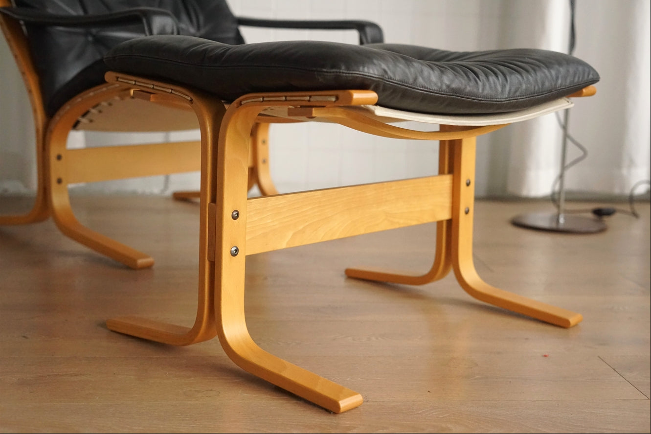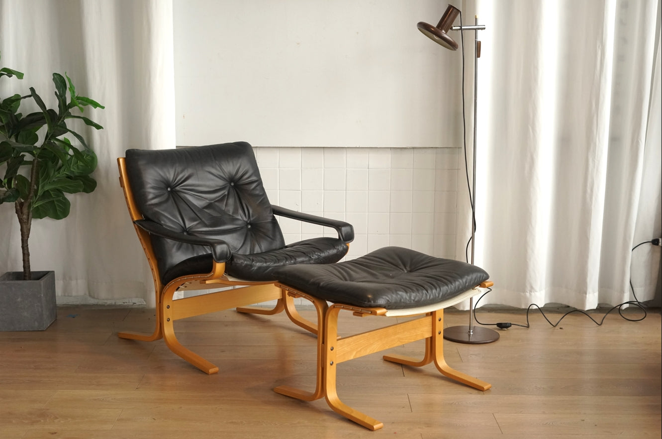 Siesta 黑色 真皮 低背扶手椅 (附腳凳)
